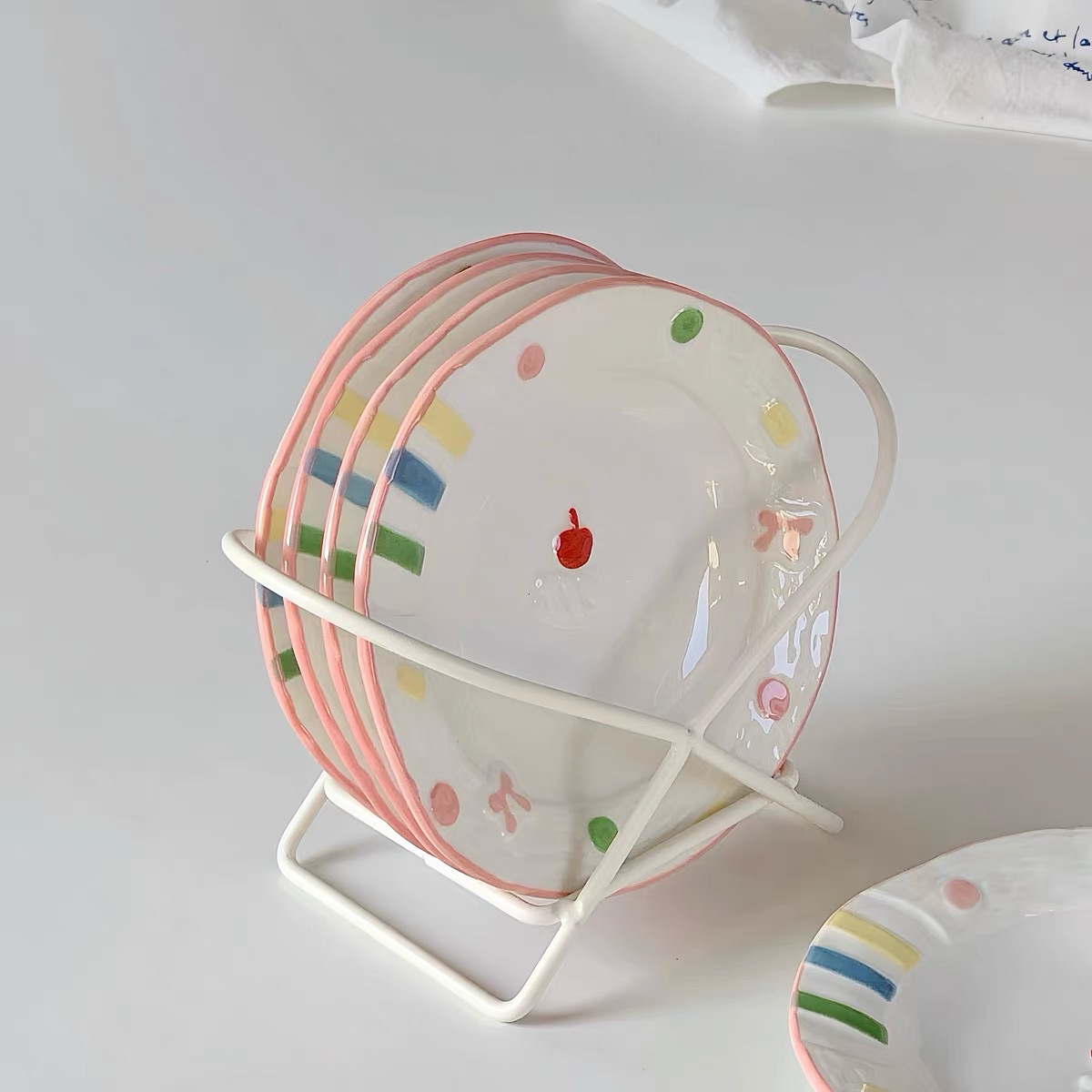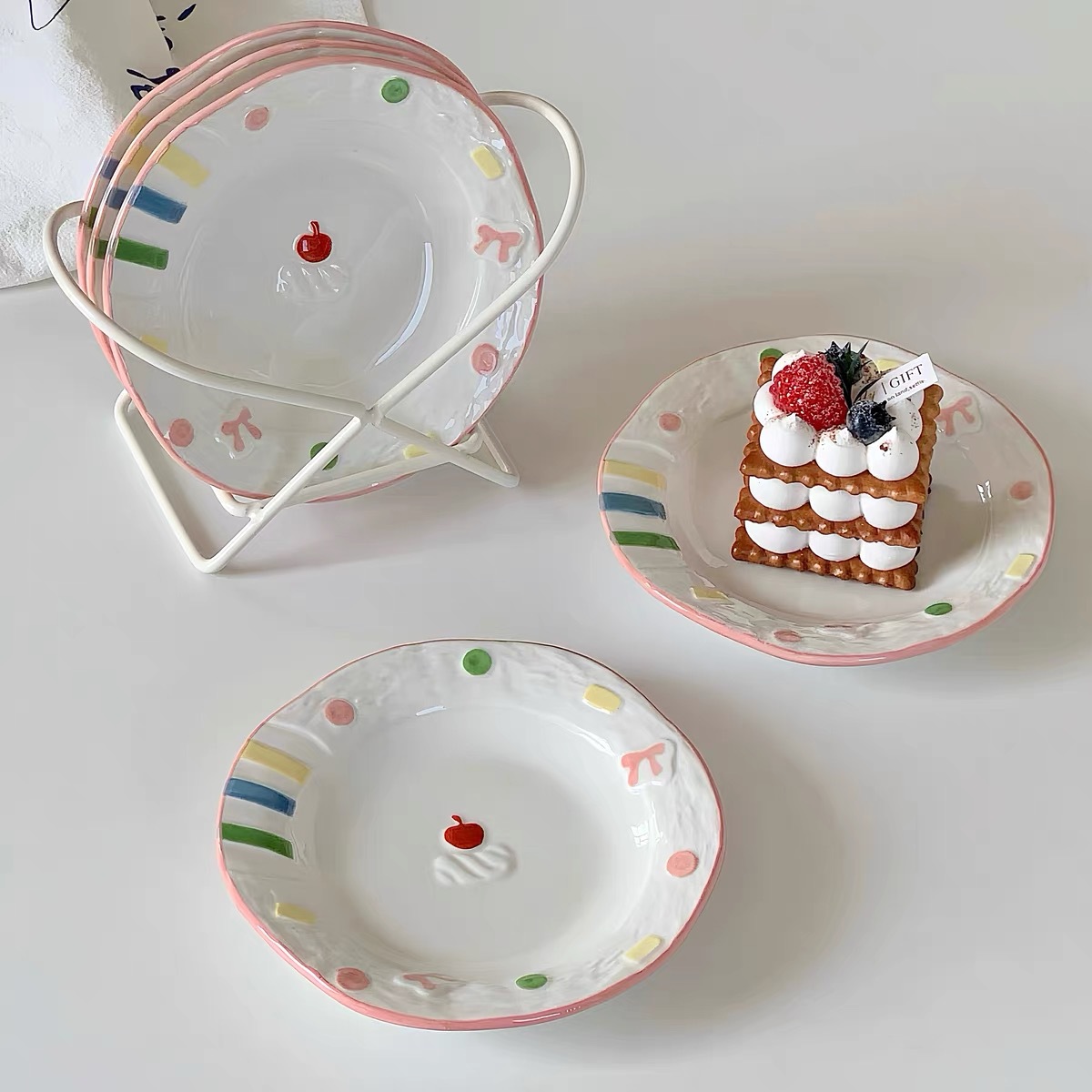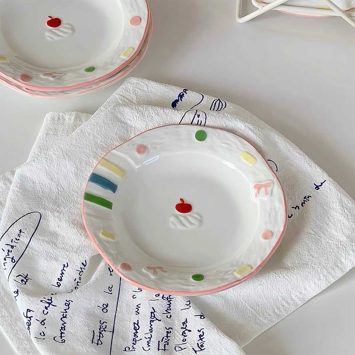 손으로 그린 언더 글래즈 컬러 플레이트 세라믹 케이크 플레이트 엠보싱 스타일 스낵 플레이트 아침 식사 플레이트 디저트 플레이트 6 인치 플레이트