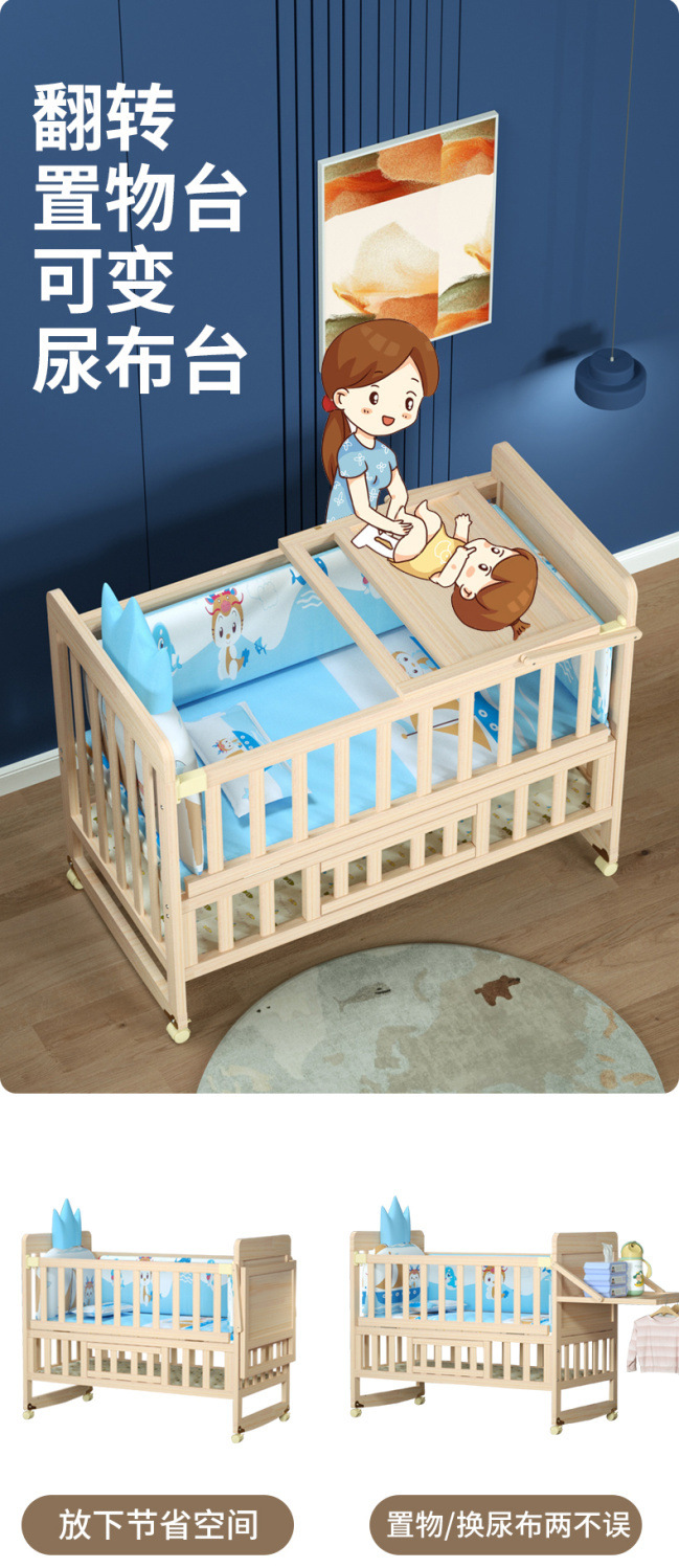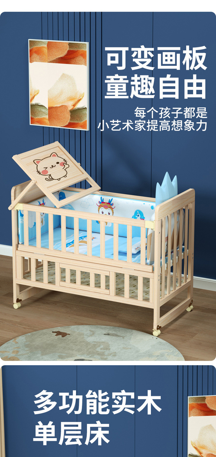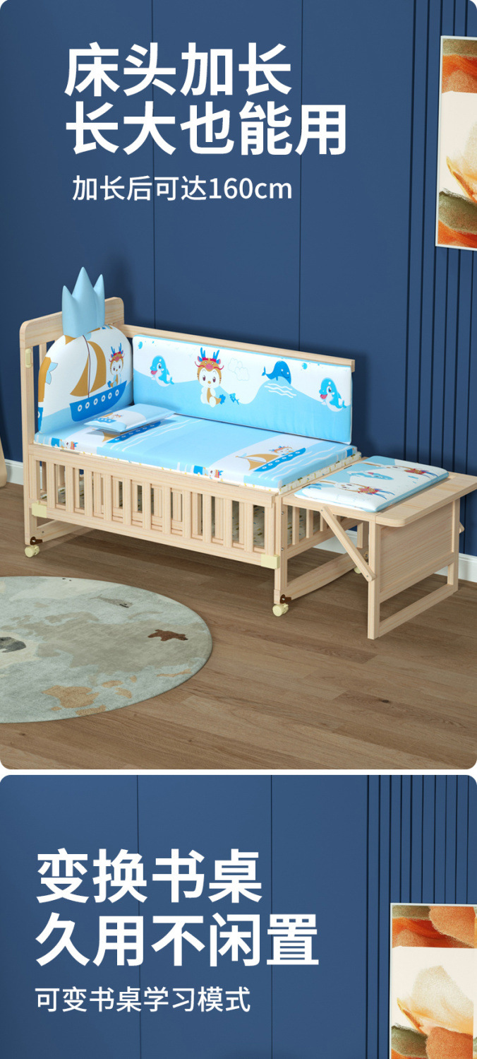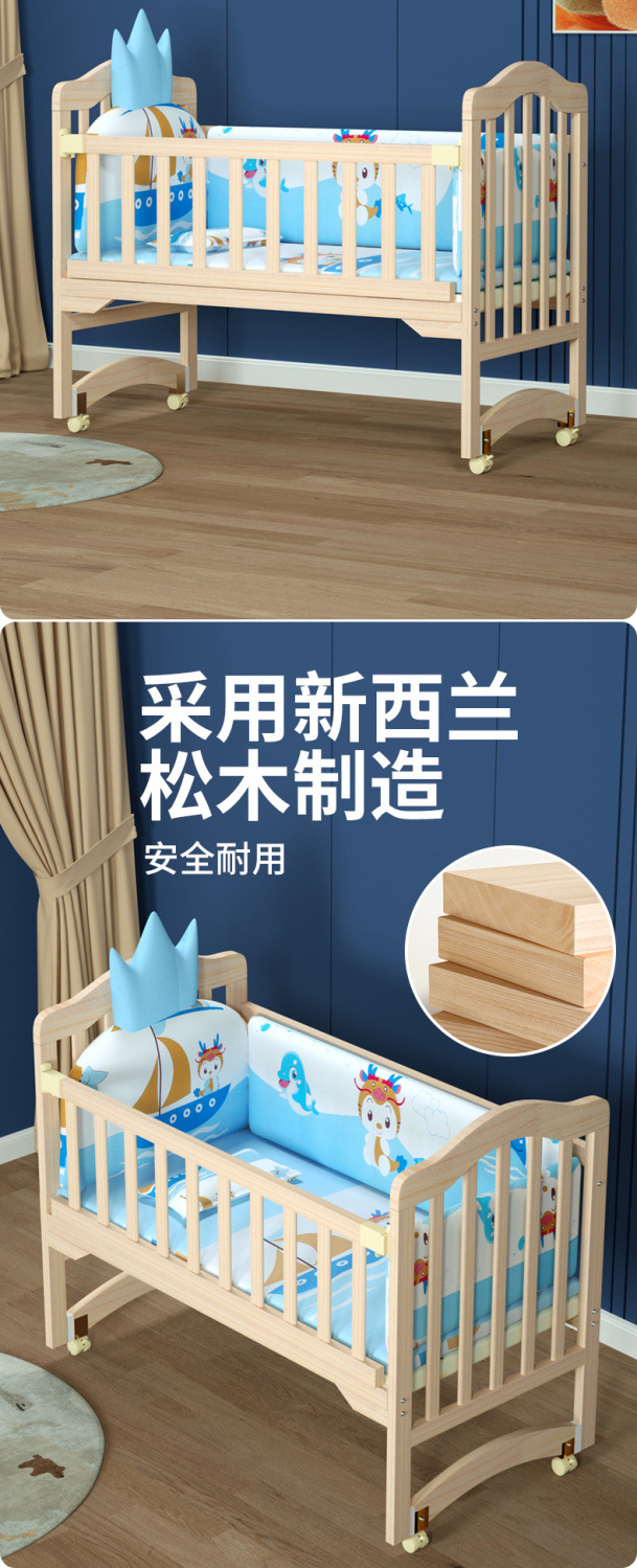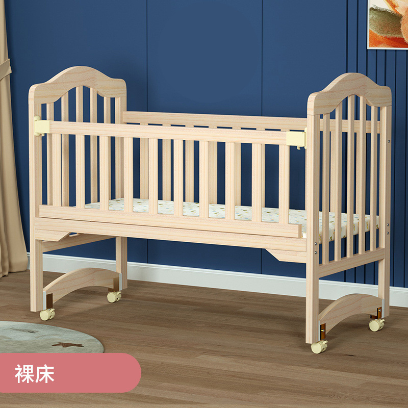 유아용 침대 다기능 유아용 침대 솔리드 우드 페인트가없는 요람 침대 이동식 어린이 제품 어린이 접합 큰 침대스토어 가기