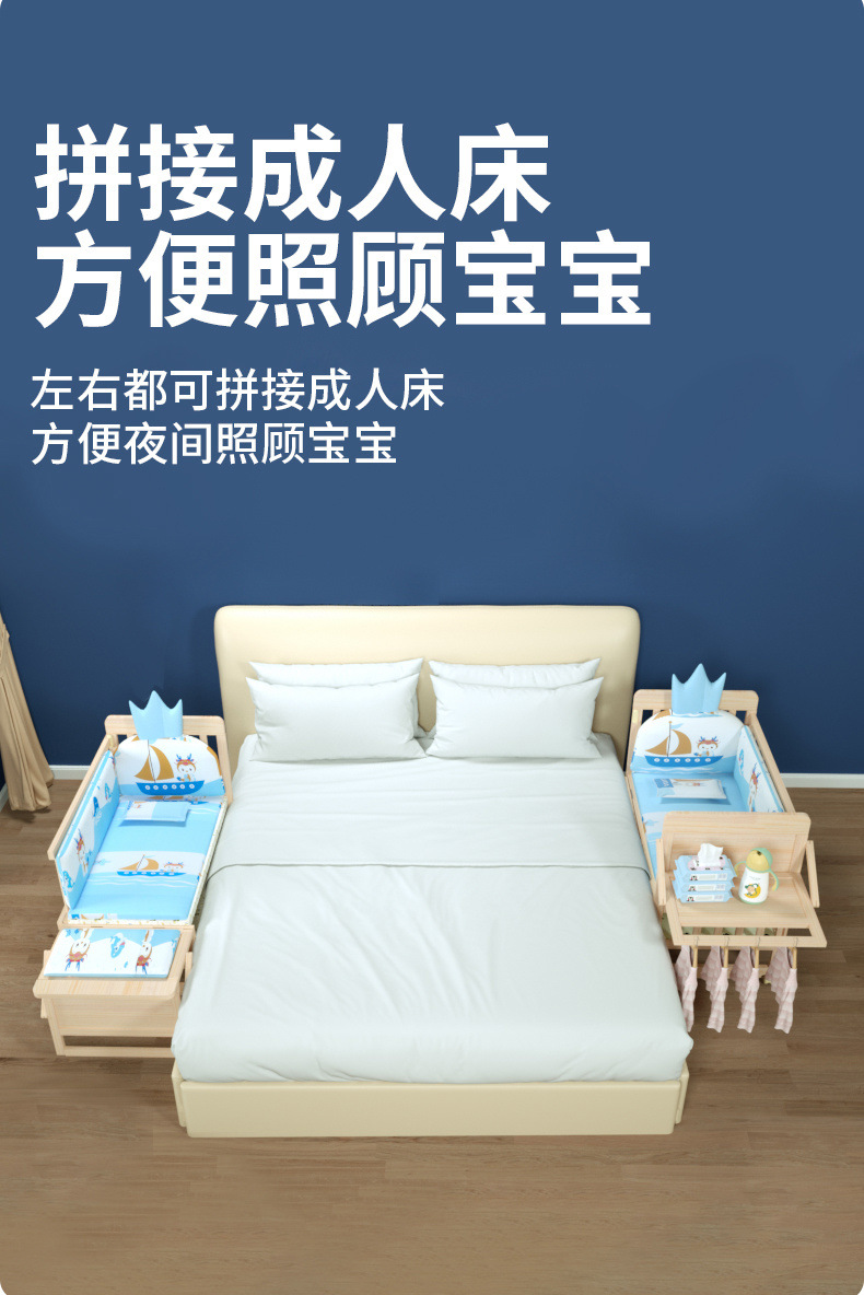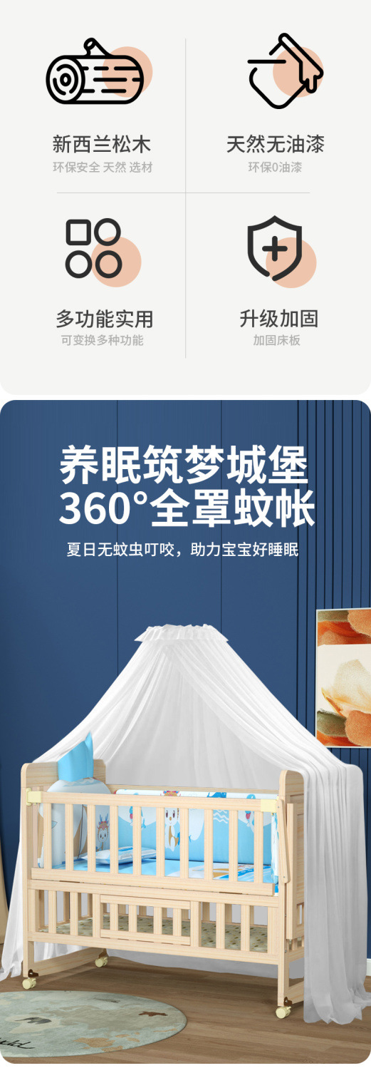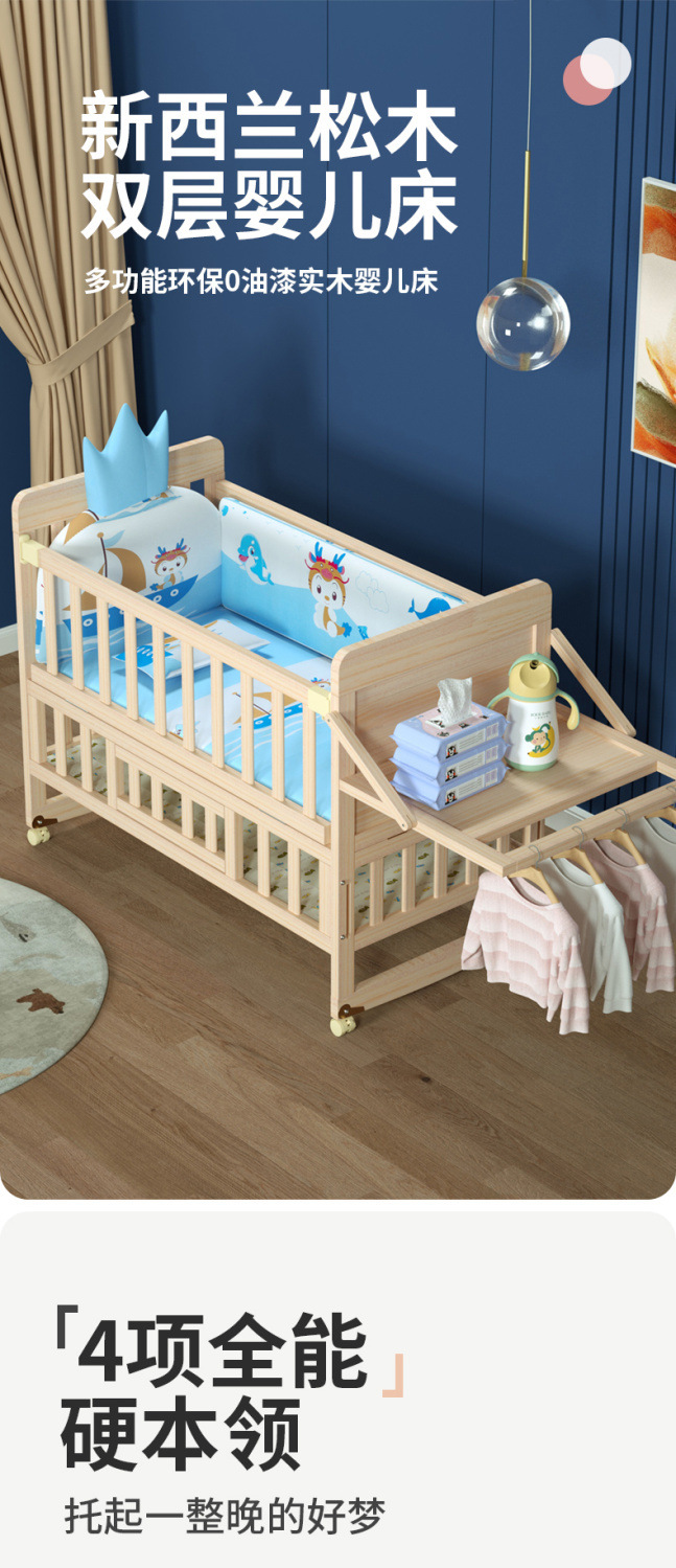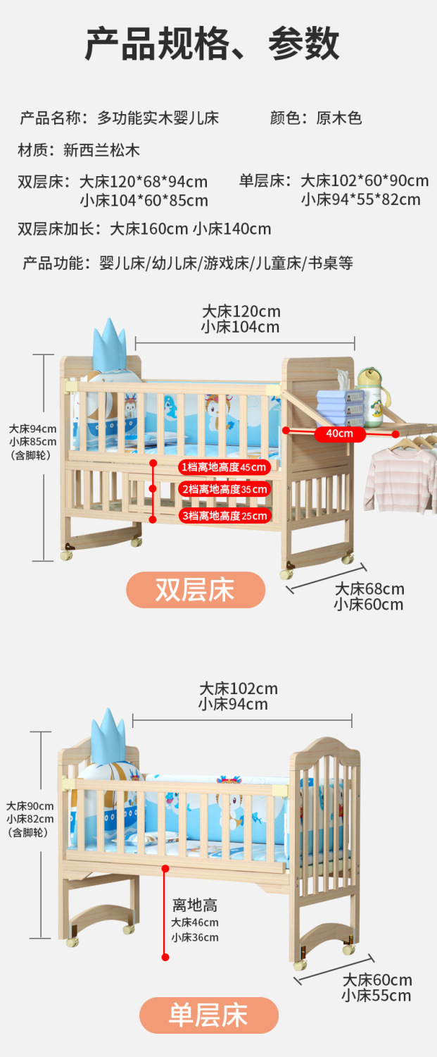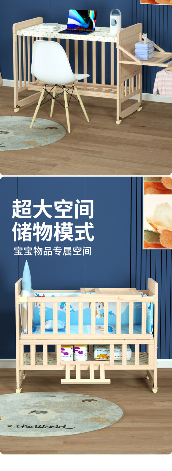 유아용 침대 다기능 유아용 침대 솔리드 우드 페인트가없는 요람 침대 이동식 어린이 제품 어린이 접합 큰 침대스토어 가기