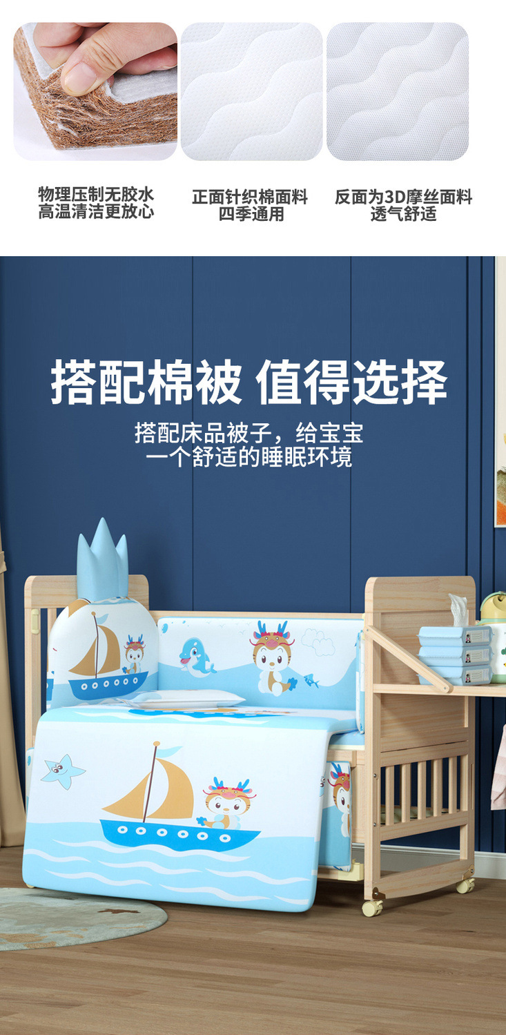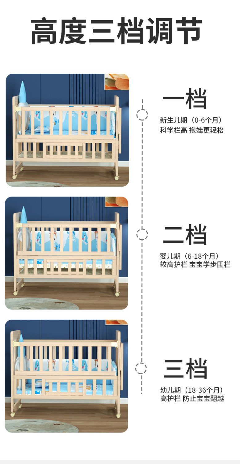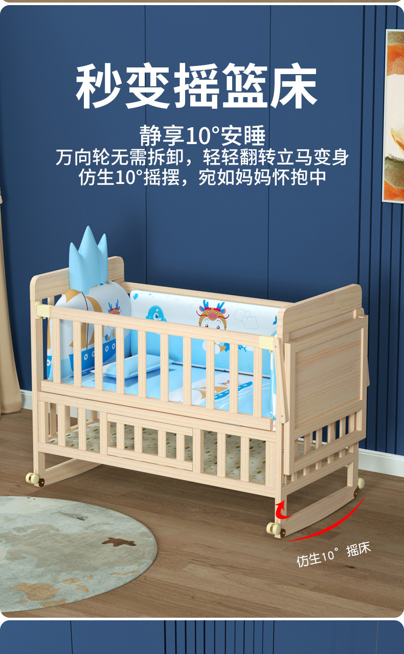 유아용 침대 다기능 유아용 침대 솔리드 우드 페인트가없는 요람 침대 이동식 어린이 제품 어린이 접합 큰 침대