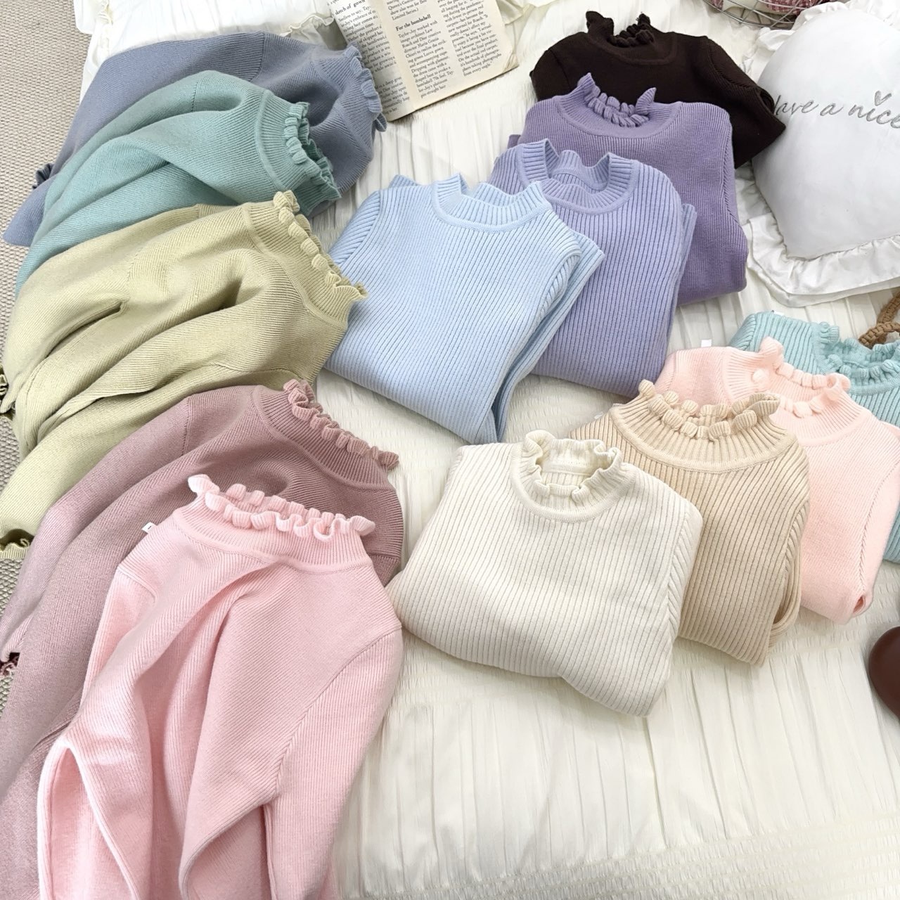 2025년 가격이 공개된 스웨터 베이스 탑 니트 가을 겨울 솔리드 컬러 따뜻한 캔디 컬러 스웨터 8401