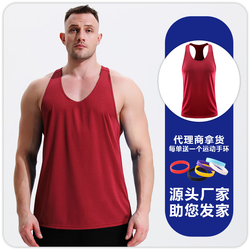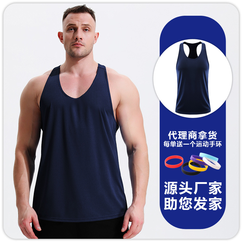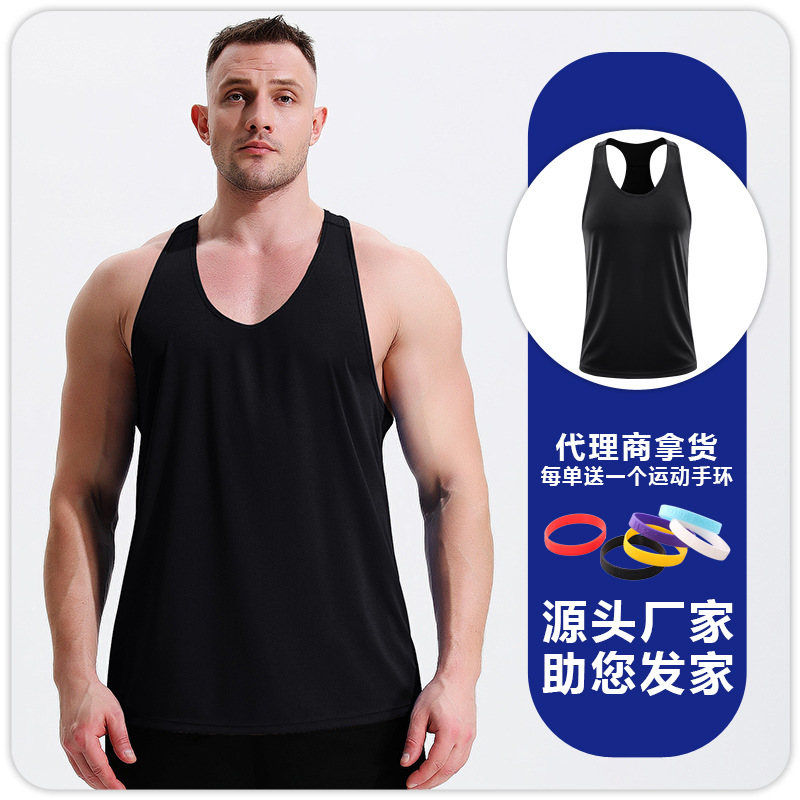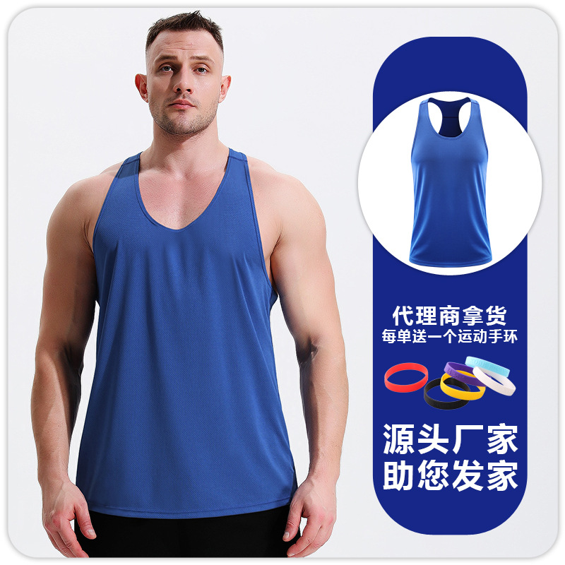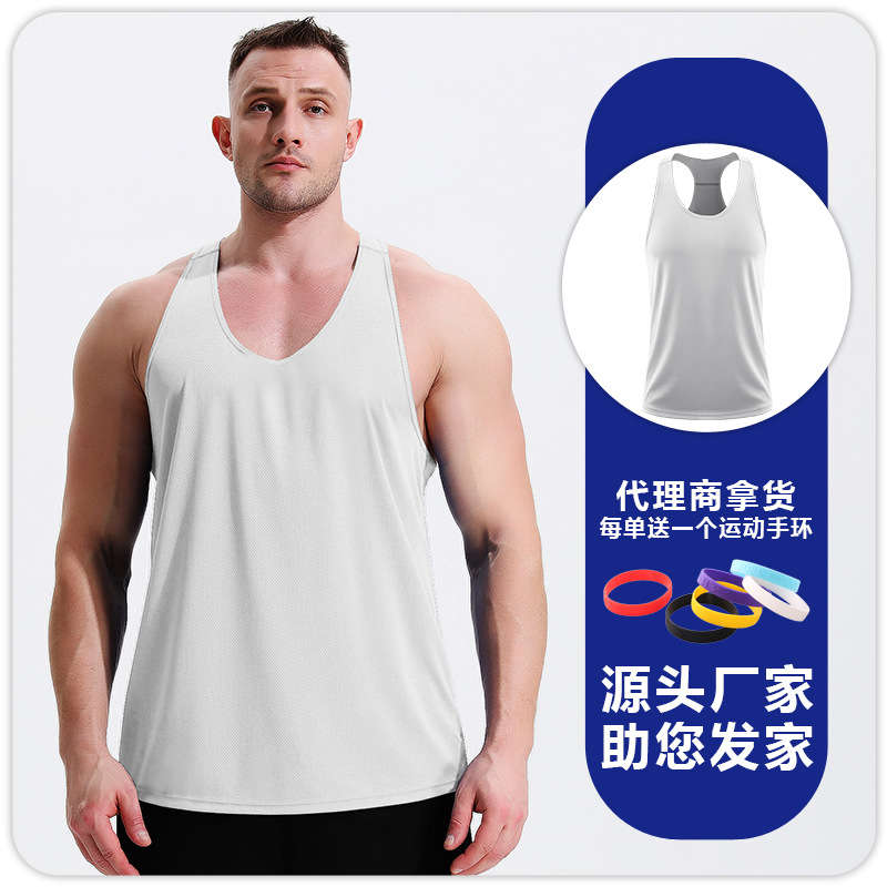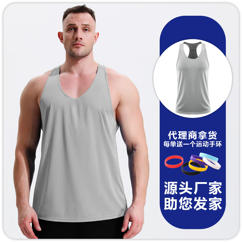 남자 피트니스 레저 빠른 건조 통기성 I 자형 조끼 근육 훈련 달리기 전문 마라톤 피트니스 옷스토어 가기