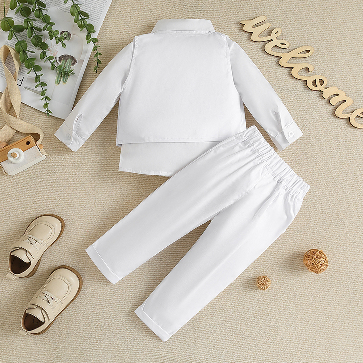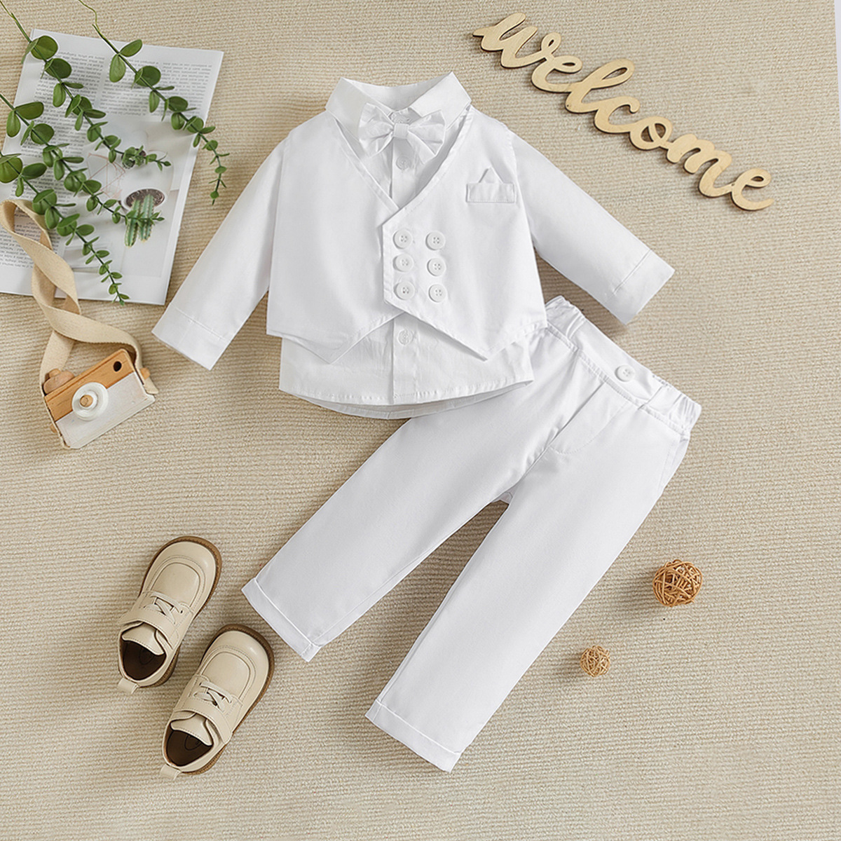Samgamiby British Style Boy's Gentleman's 세트 단색 세트 조끼 셔츠 바지 3 피스 원피스