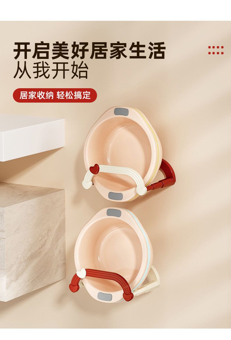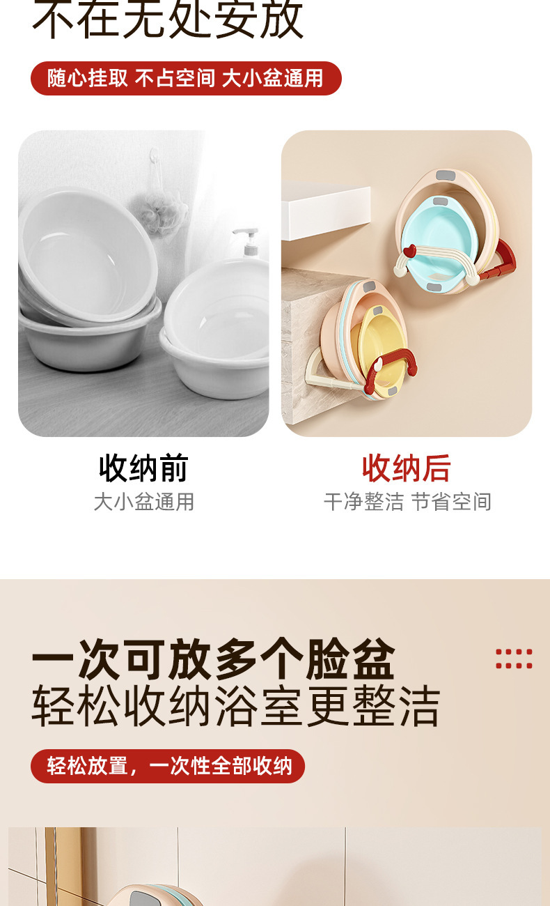 奶油吸盘脸盆架免打孔壁挂式可伸缩脸盆置物架浴室洗手间收纳沥水