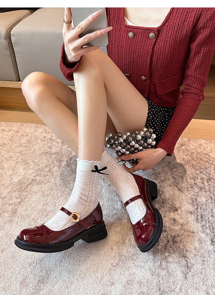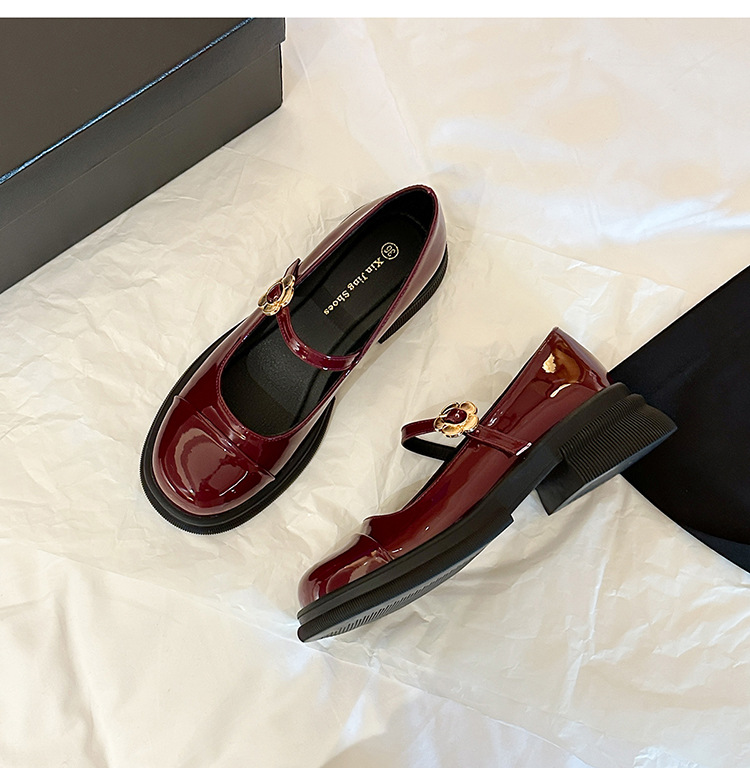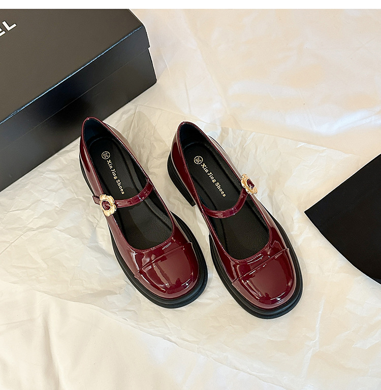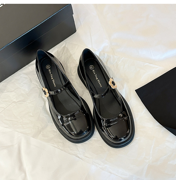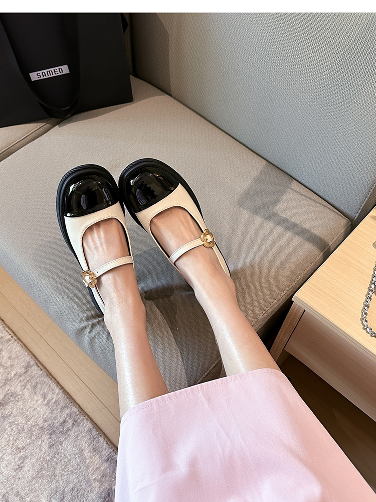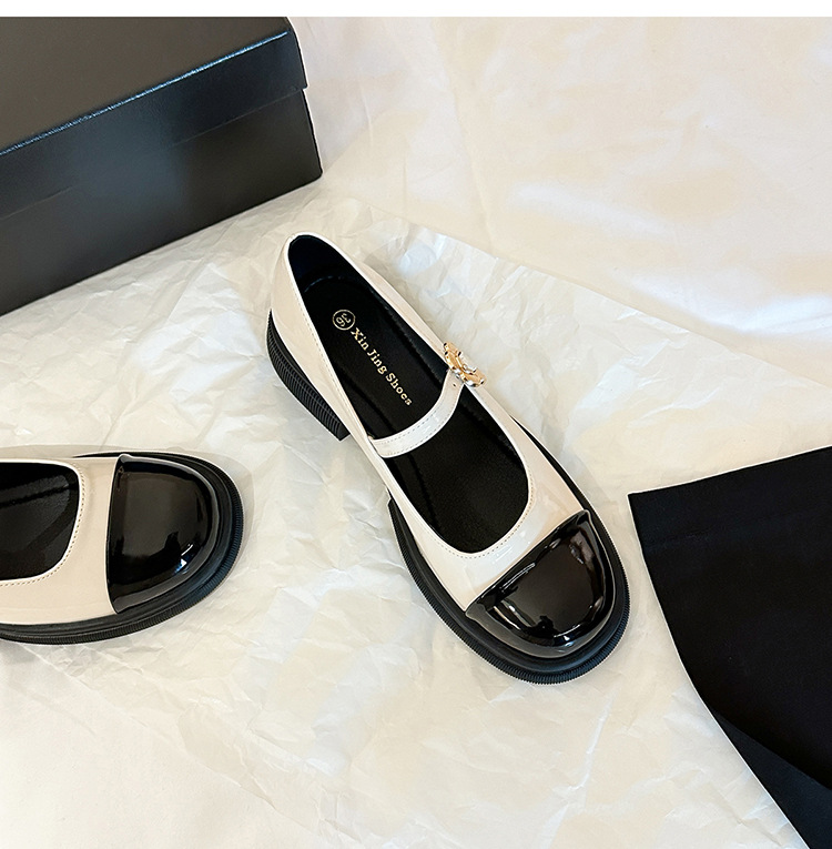 Q1-37 영국 스타일 프랑스 스타일 레트로 두꺼운 바닥 메리 제인 사랑 신발 여성을위한 새로운 색상 매칭 플랫 가죽 신발