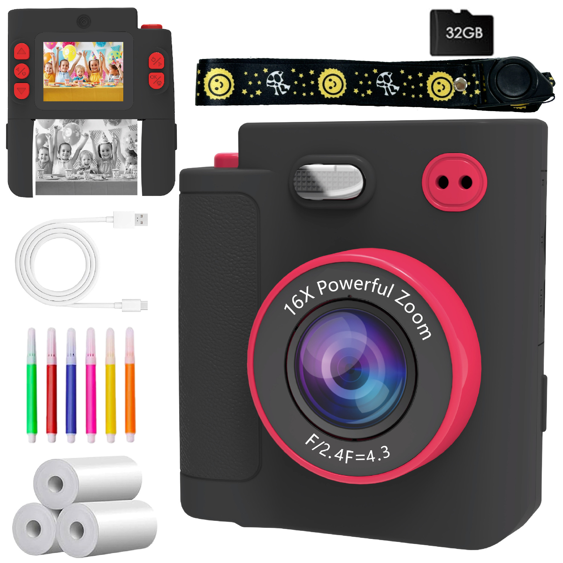 • 검정색 즉석 카메라 + 32G 메모리 카드 + 정교한 포장
