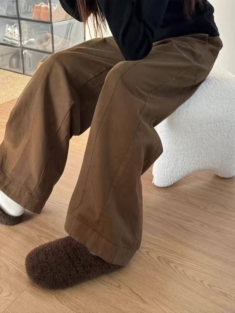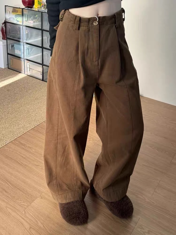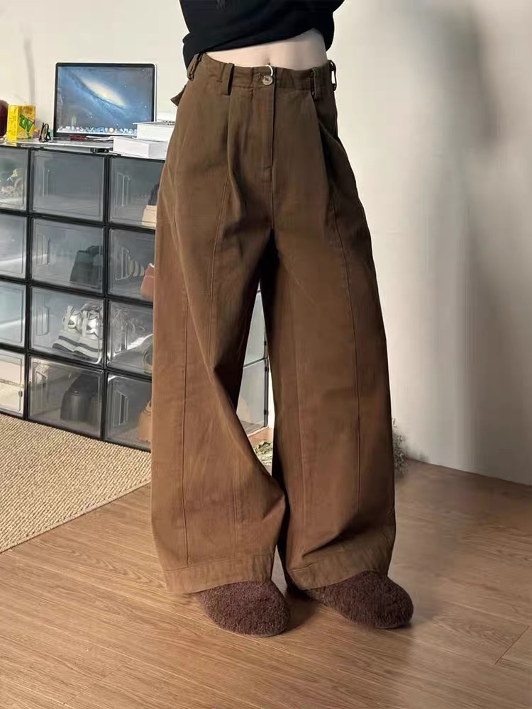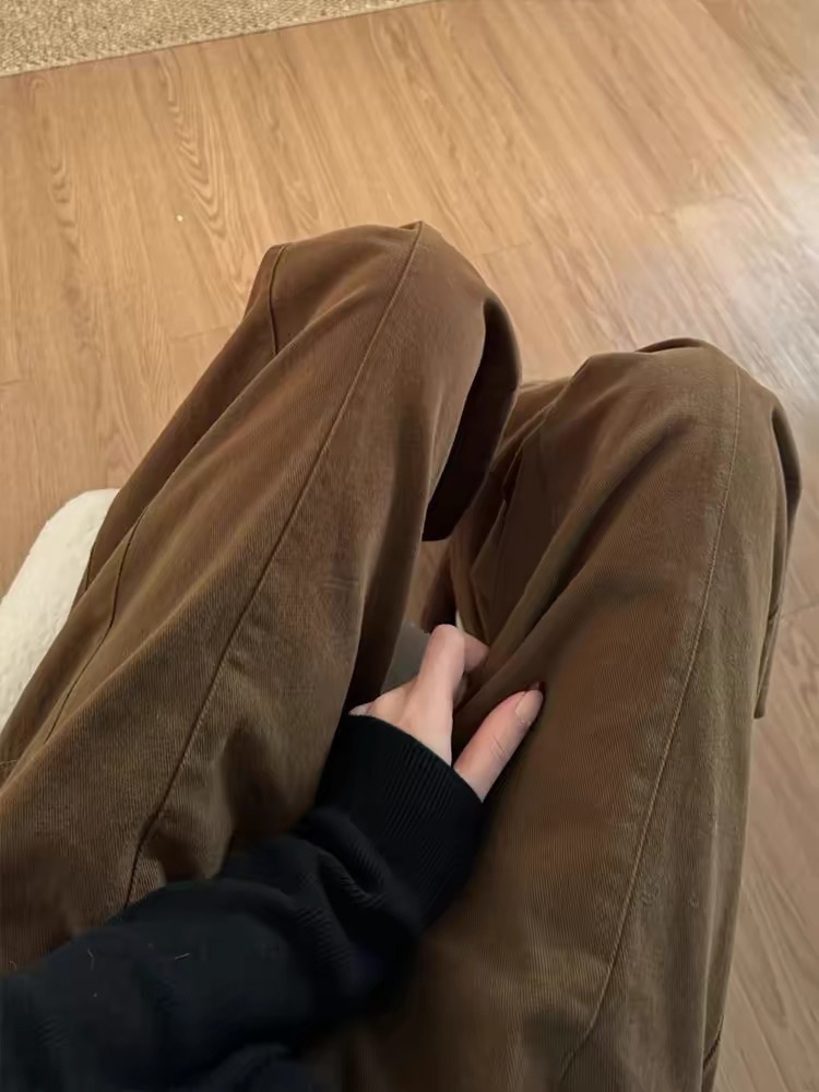 Maillard 다크 브라운 높은 허리 넓은 다리 청바지 여성의 2025 봄 새로운 느슨한 직선 게으른 스타일 바지스토어 가기