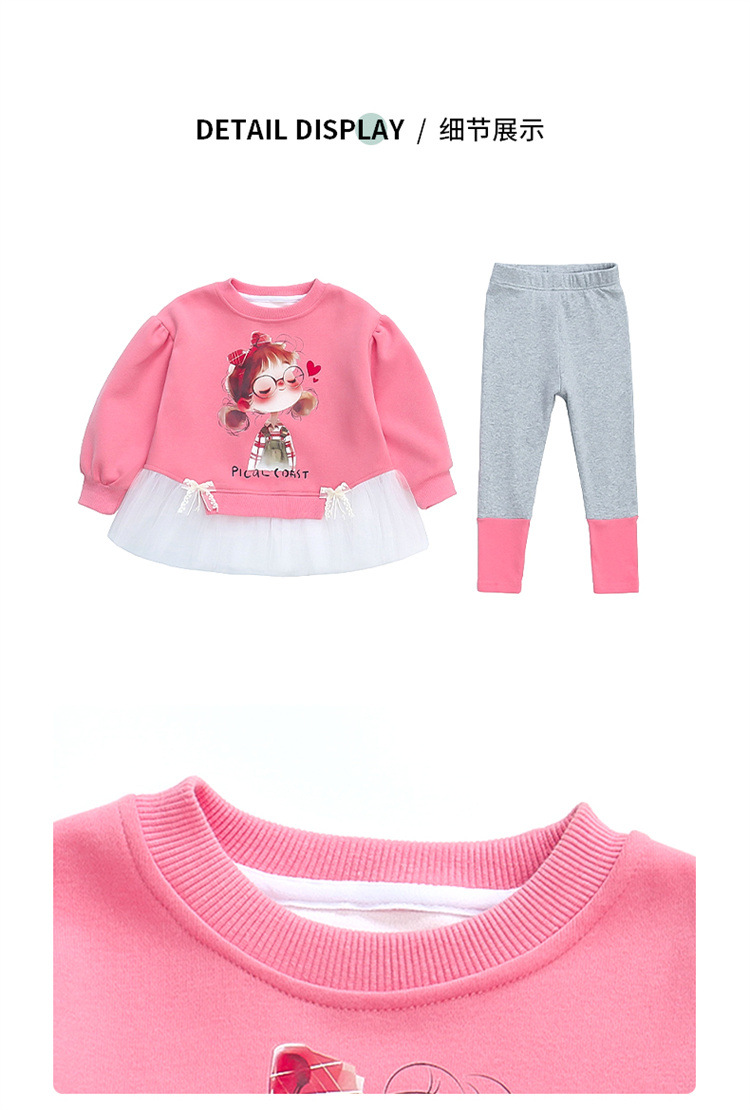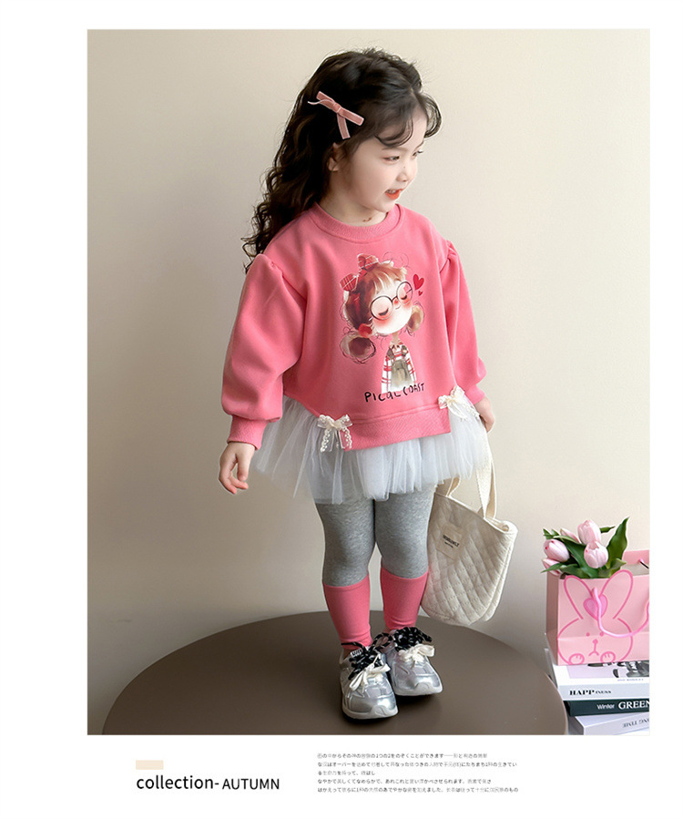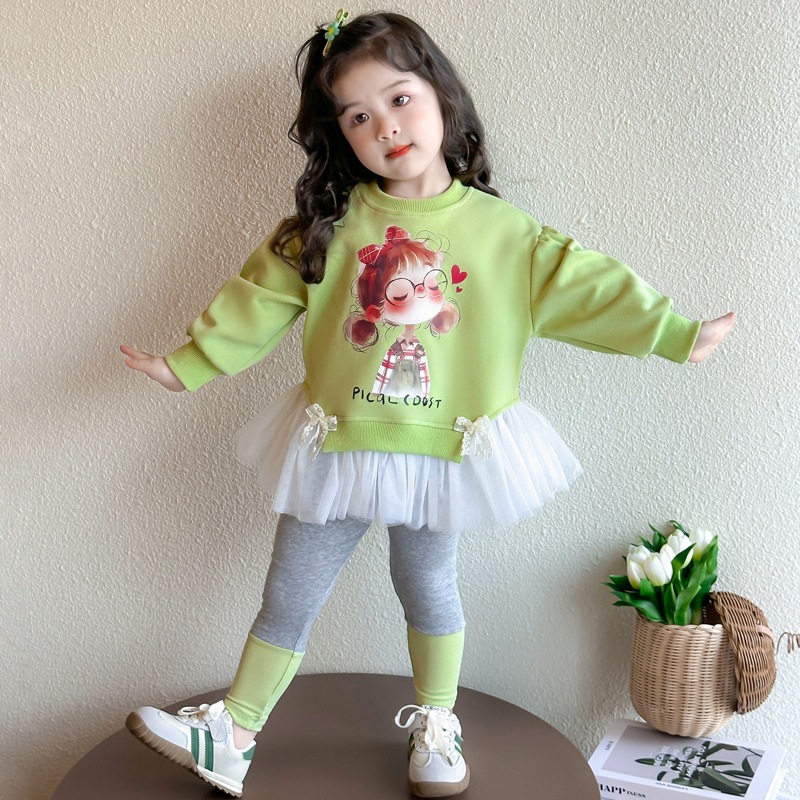 소녀 세트 봄과 가을 2025 새로운 어린이 서양 스타일 긴 소매 봄 유행 만화 봄 아기 소녀를위한 두 조각 세트