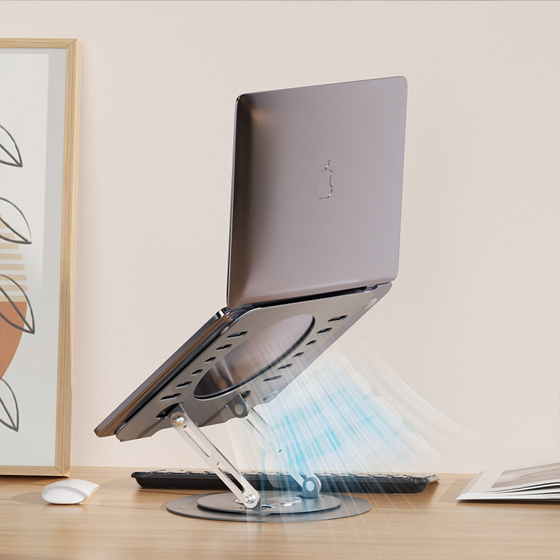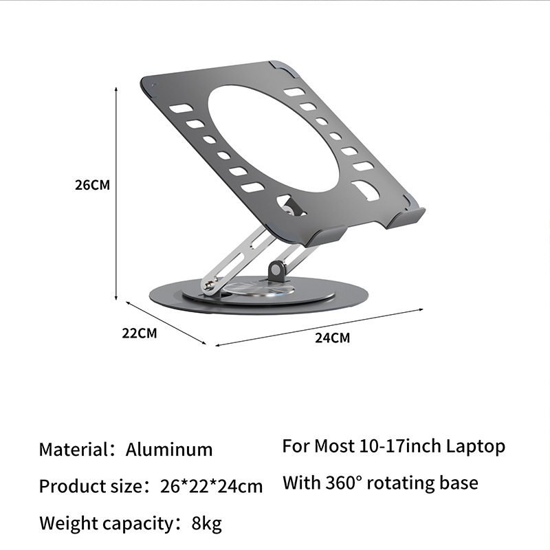 노트북 스탠드 360 도 회전 조정 가능한 리프팅 브래킷 휴대용 스토리지 오피스 태블릿 지원