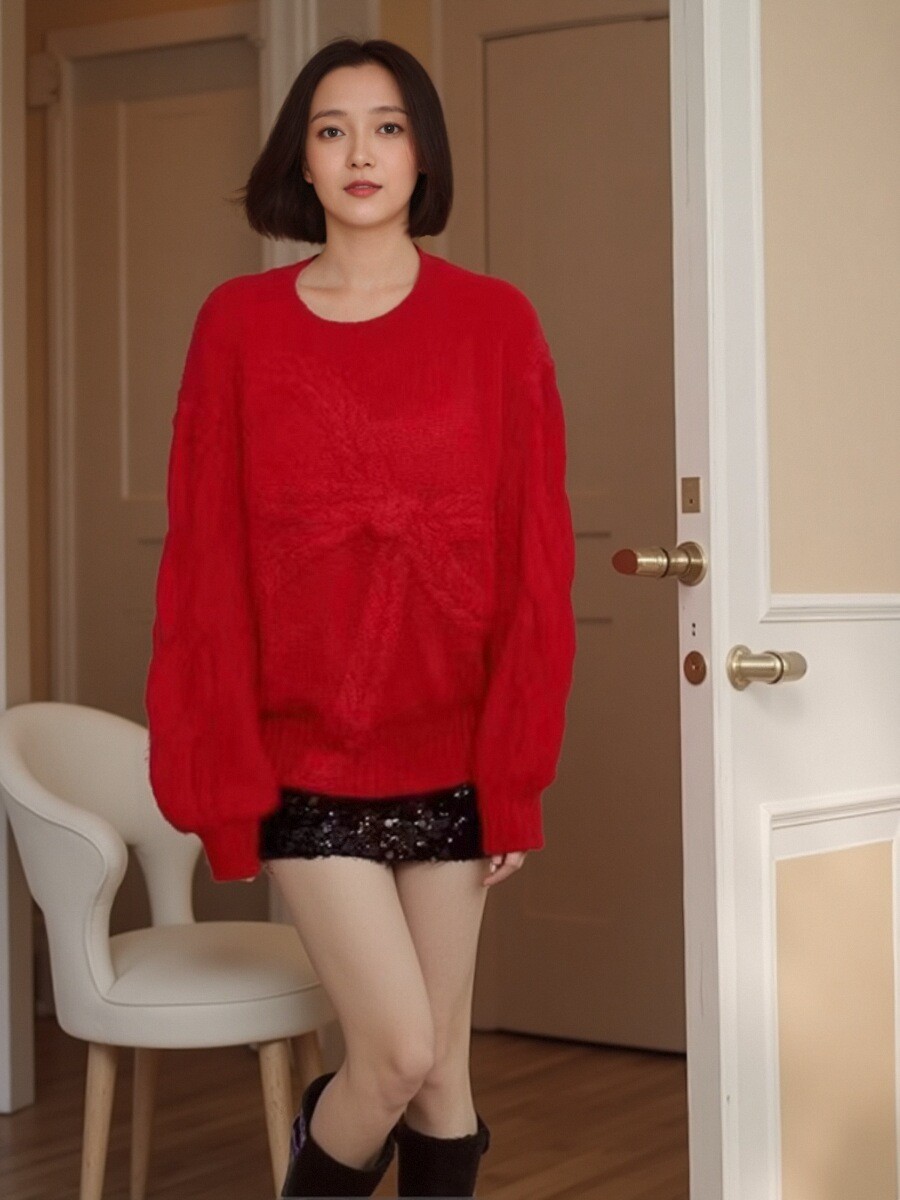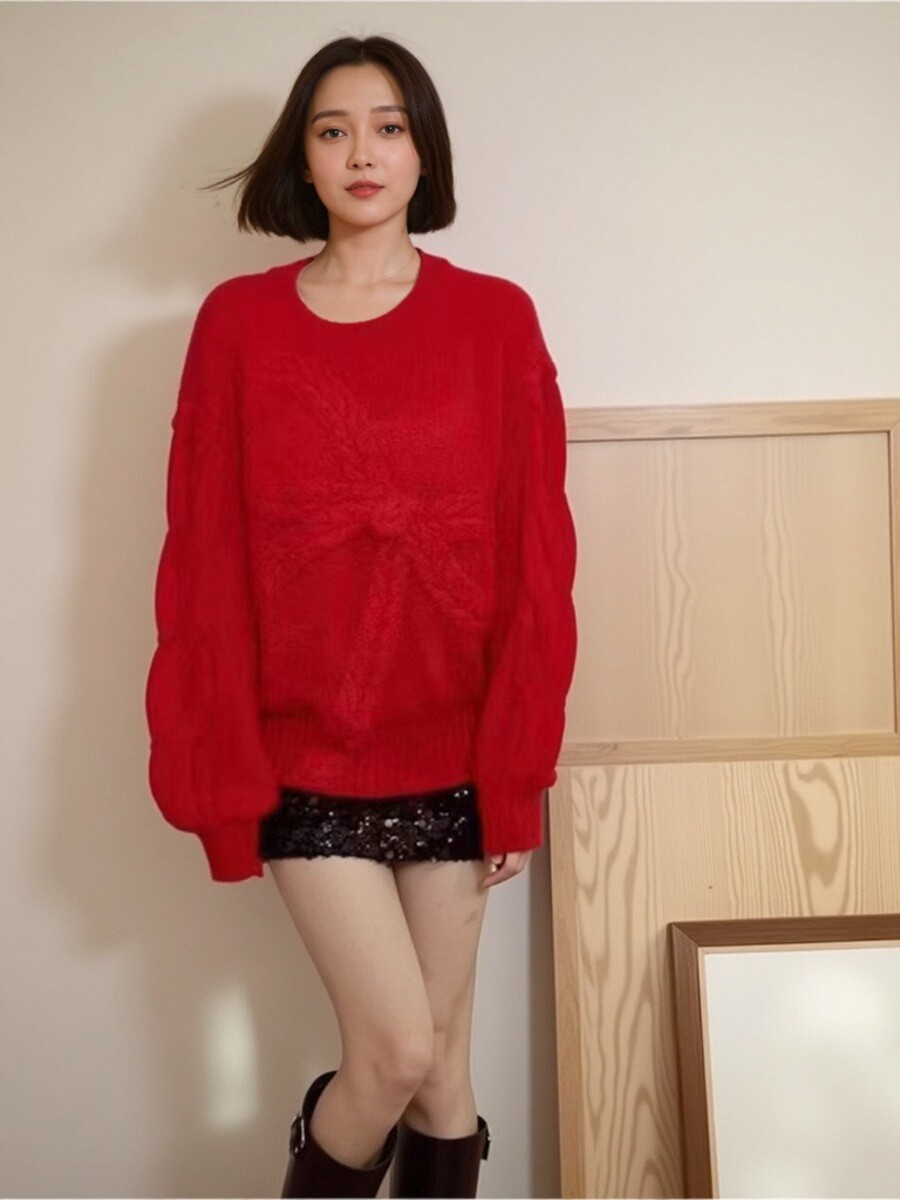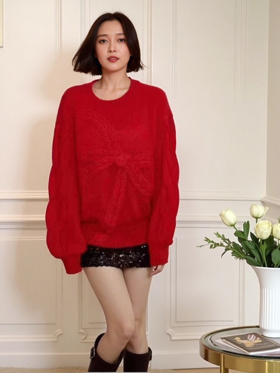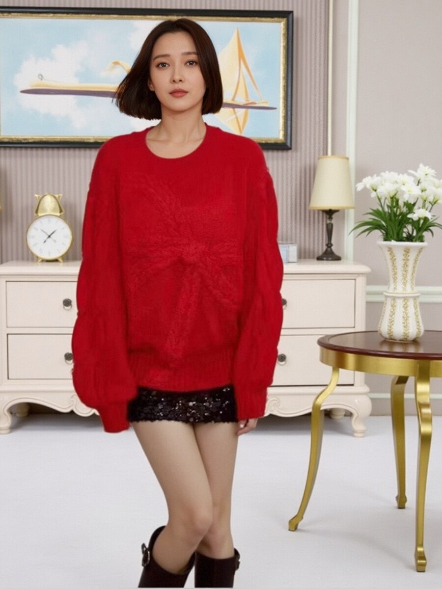 진란 같은 스타일 스웨터 프랑스 스타일 게으른 스타일 랜턴 소매 자카드 새해 레드 스웨터 니트 스웨터 여성용