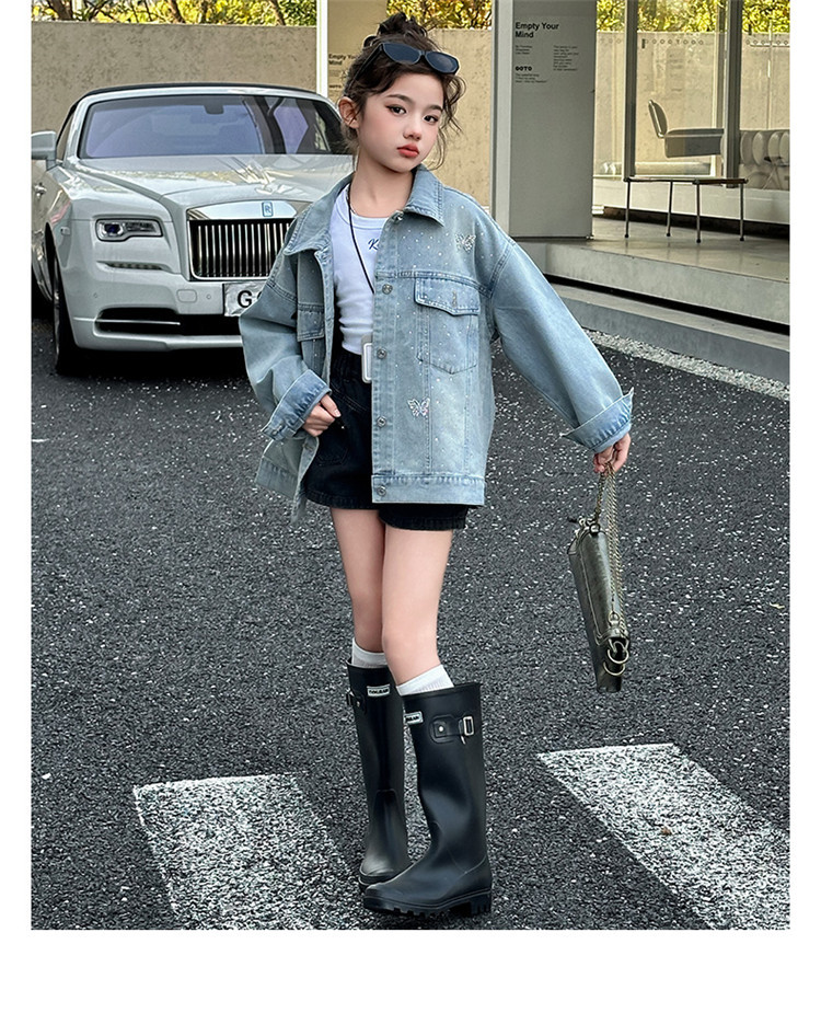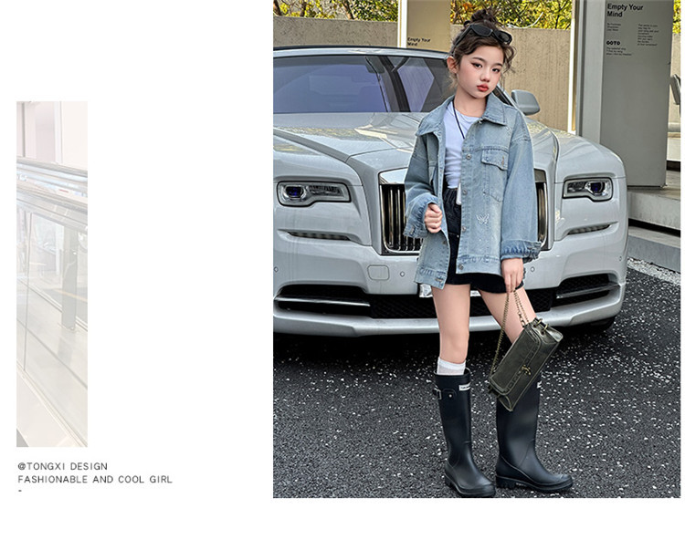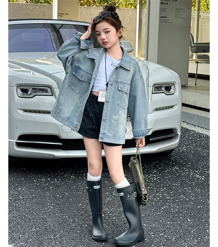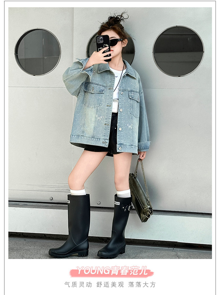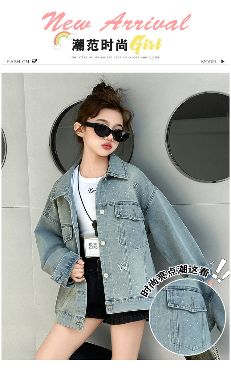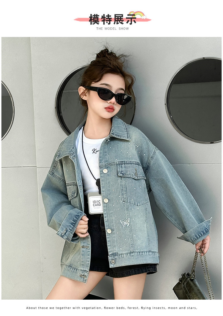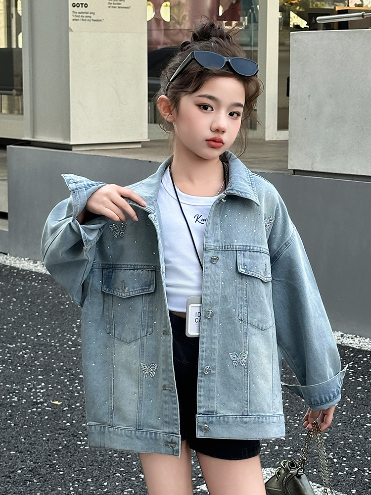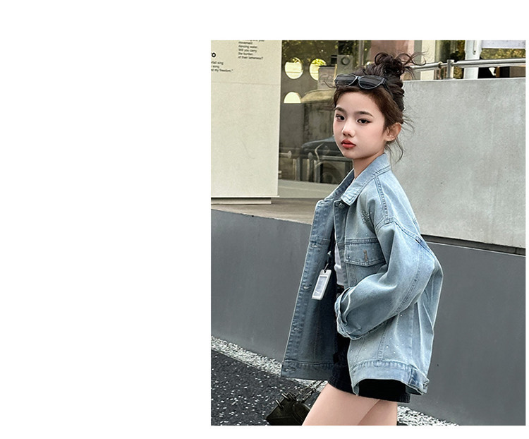 소녀 데님 코트 봄과 가을 새로운 한국 스타일 어린이 캐주얼 서양식 인터넷 인기 소녀 최고 유행 Huzhou Zhili
