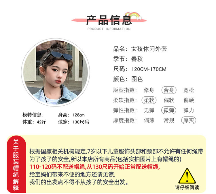 소녀 데님 코트 봄과 가을 새로운 한국 스타일 어린이 캐주얼 서양식 인터넷 인기 소녀 최고 유행 Huzhou Zhili스토어 가기