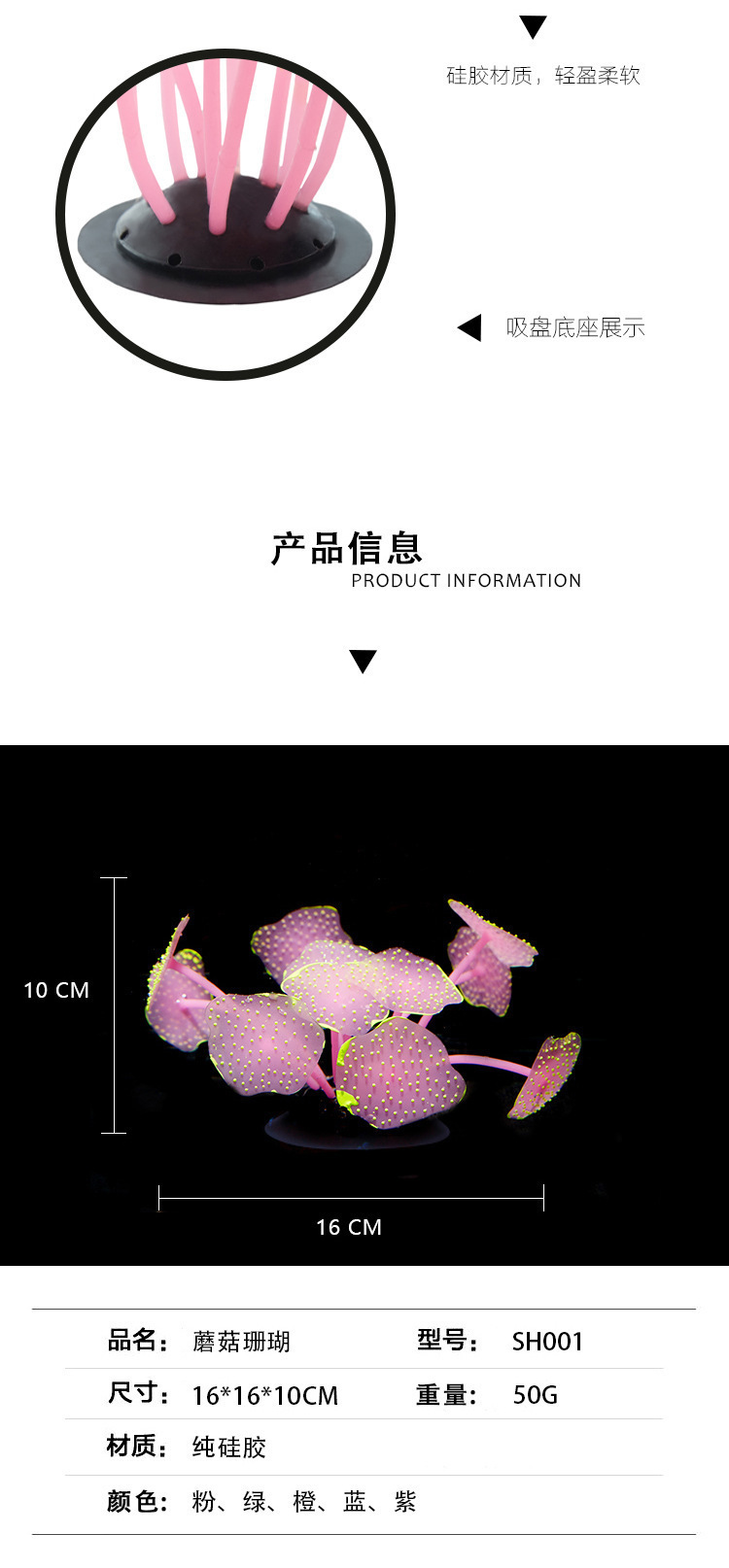 水族箱造景硅胶仿真装饰 6色仿真珊瑚鱼缸装饰物
