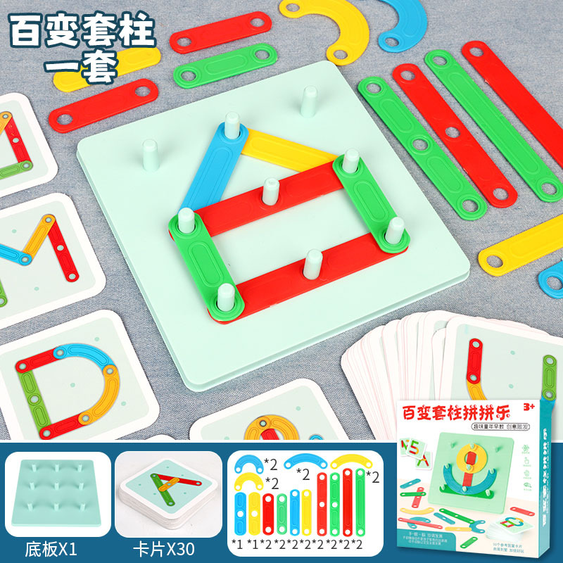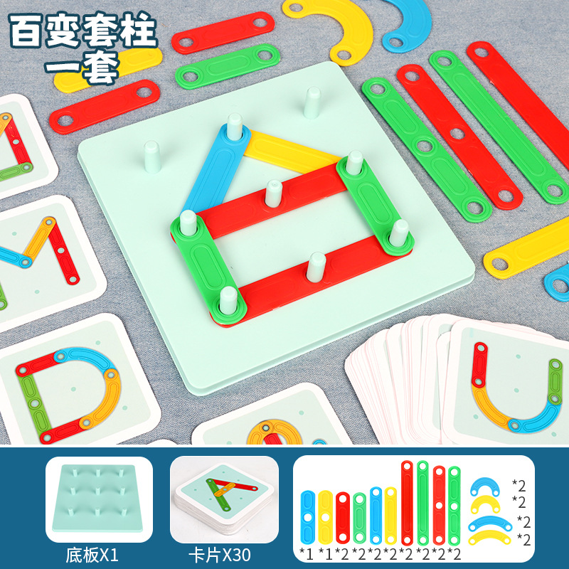 몬테소리 변형 세트 열 모양 조립 장난감 여성 유치원 아기 조기 교육 퍼즐 기하학적 매칭 창조적 인 조합스토어 가기