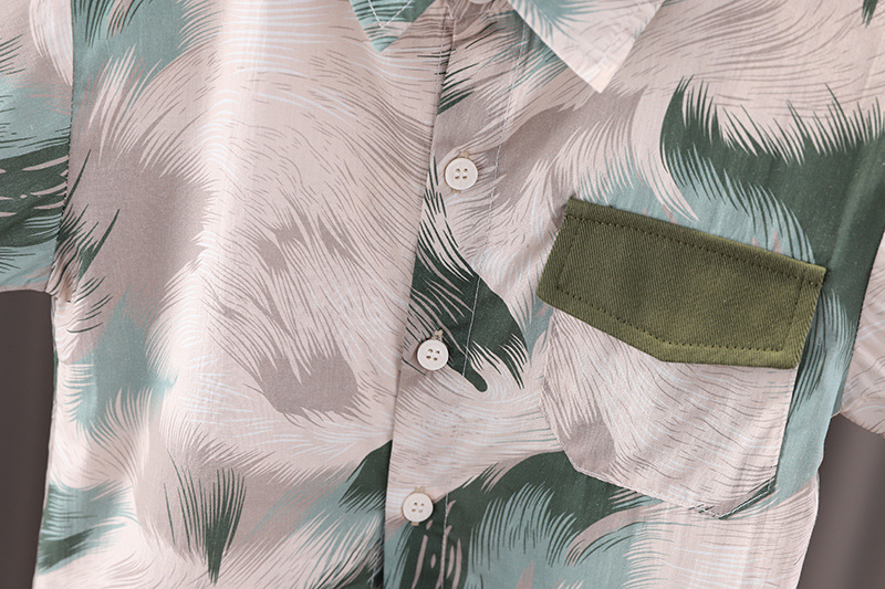 어린이 여름 셔츠 세트 2025 새로운 도착 서양식 아기 남자의 여름 얇은 잎 셔츠 반팔 투피스 세트