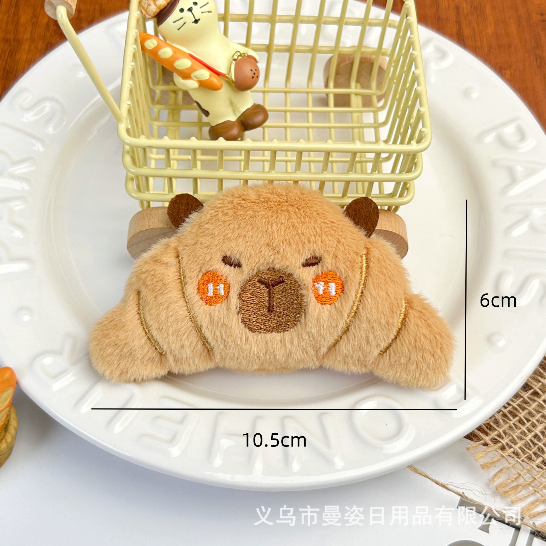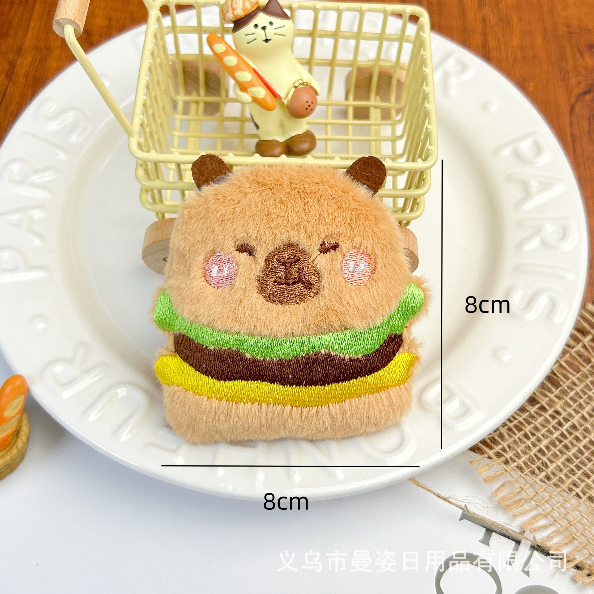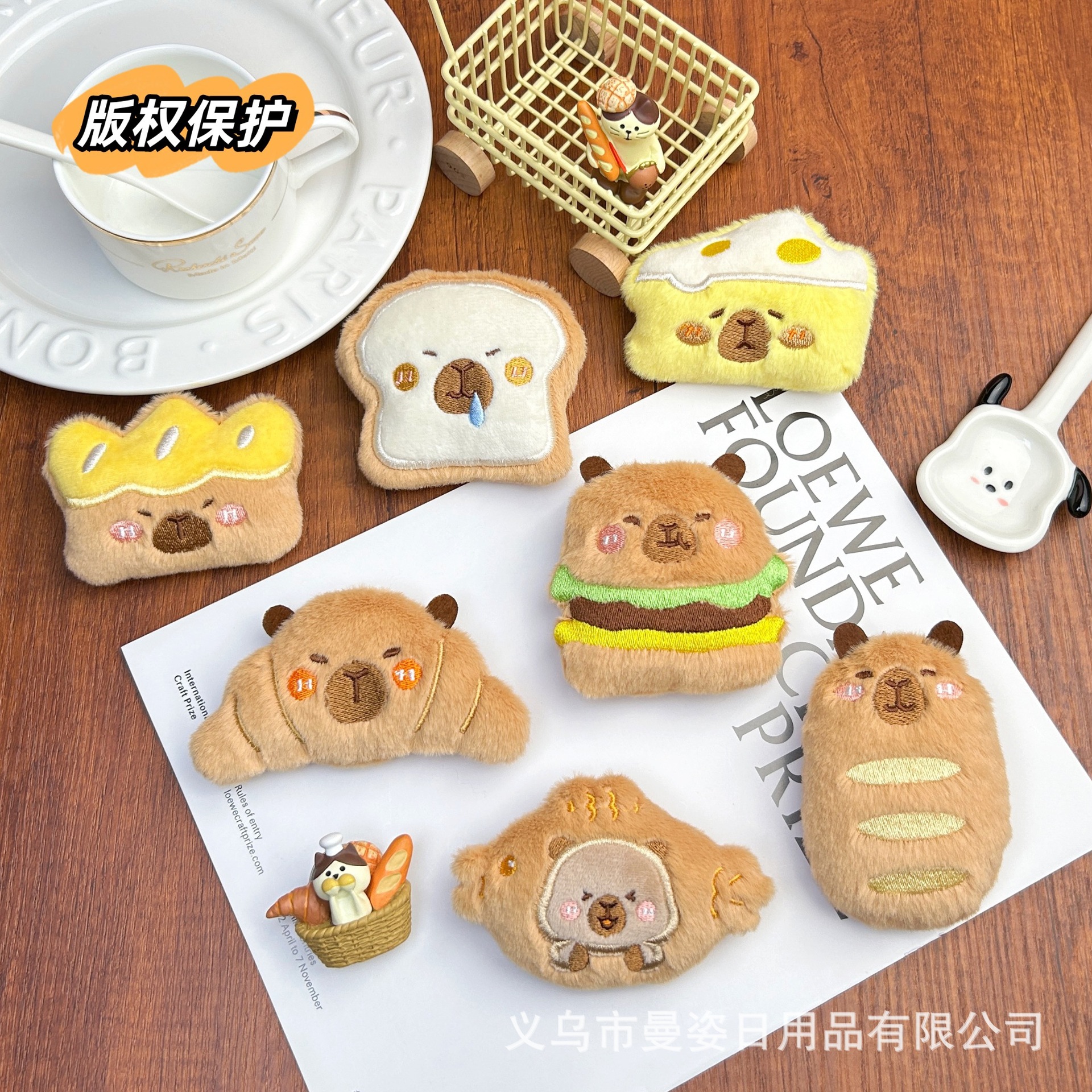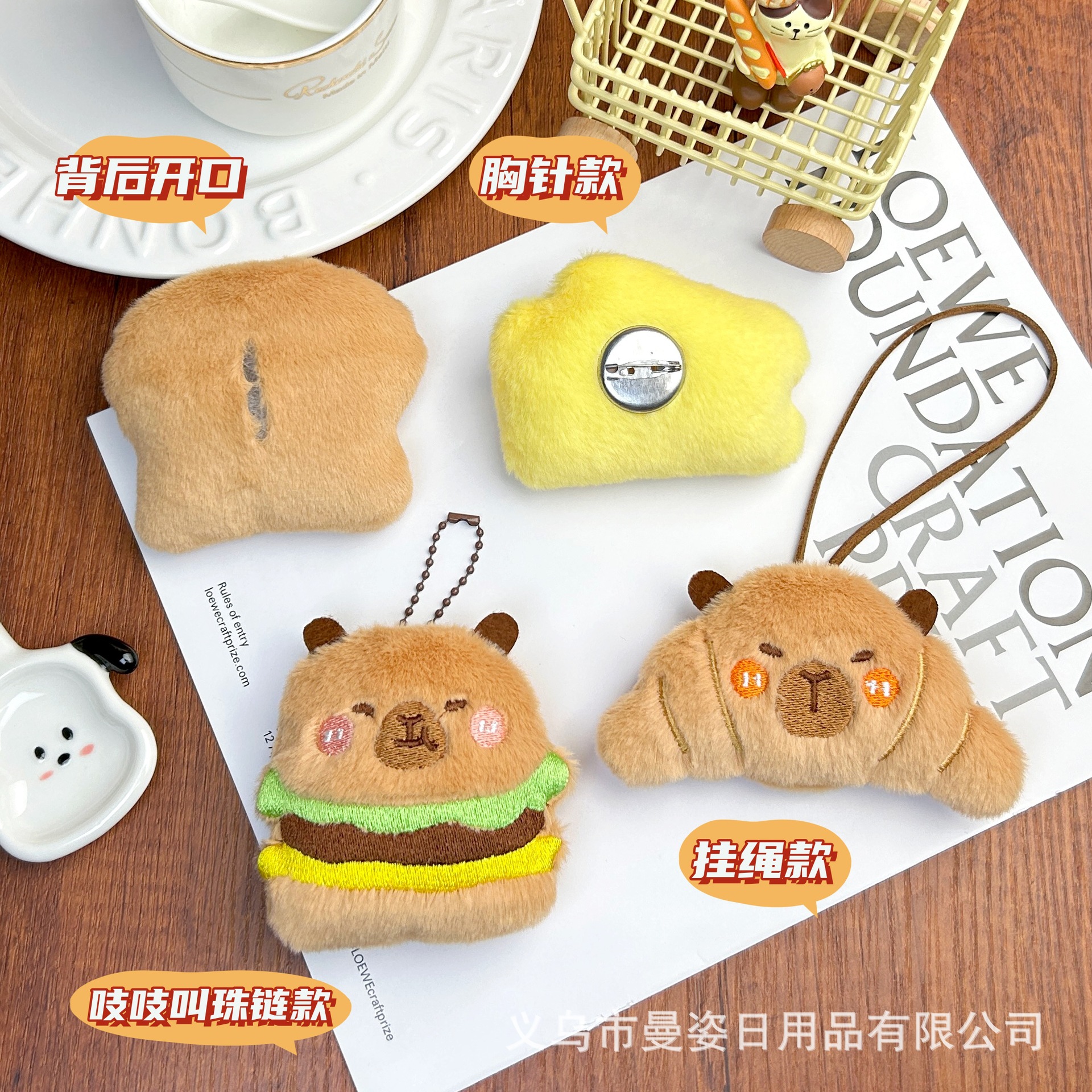만지 오리지널 카피발라 인형 크로와상 삐걱거리는 소리가 나는 봉제 장식품 햄버거 브로치 액세서리 도매