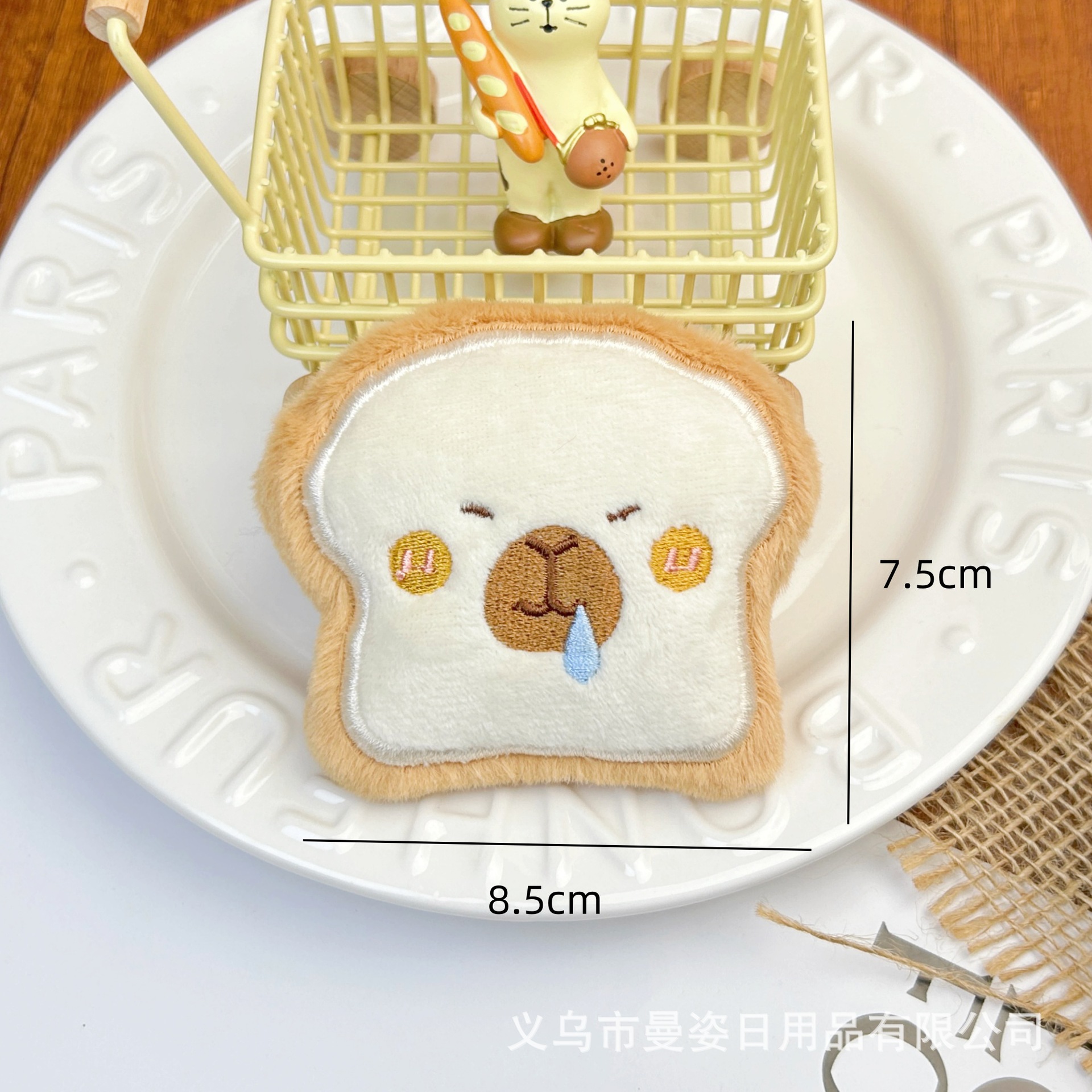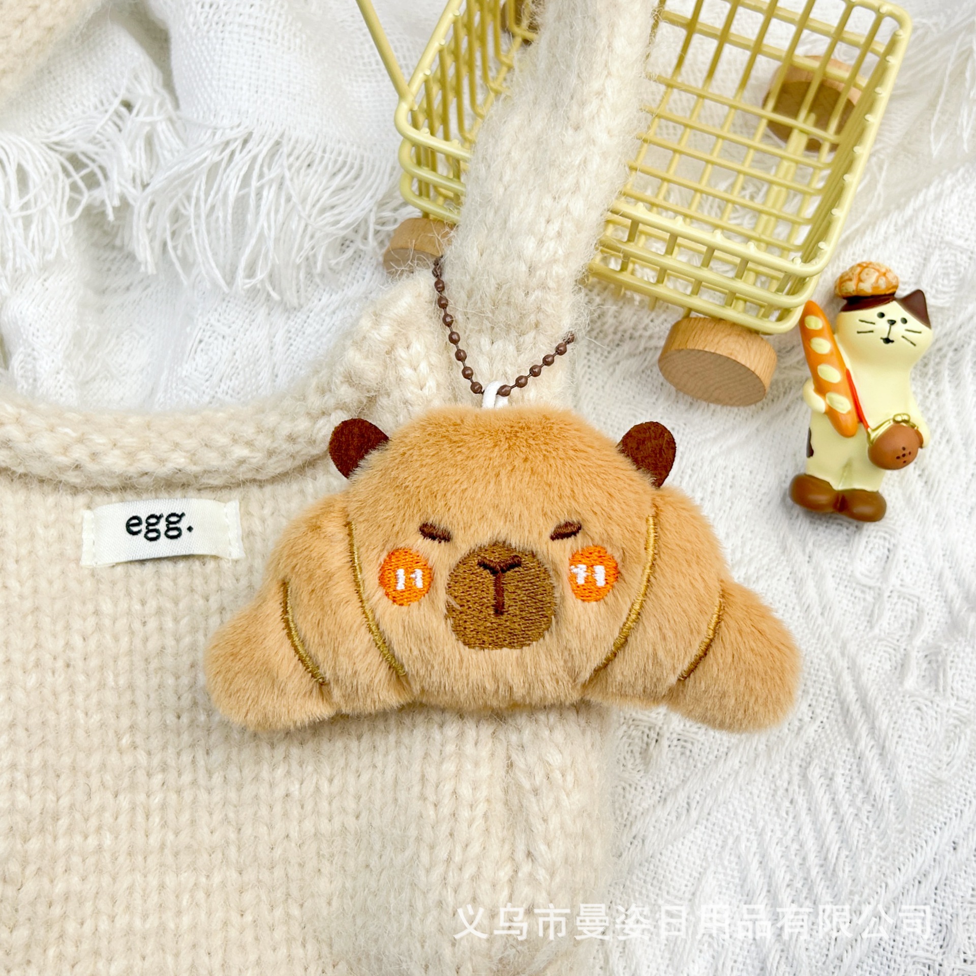 만지 오리지널 카피발라 인형 크로와상 삐걱거리는 소리가 나는 봉제 장식품 햄버거 브로치 액세서리 도매스토어 가기