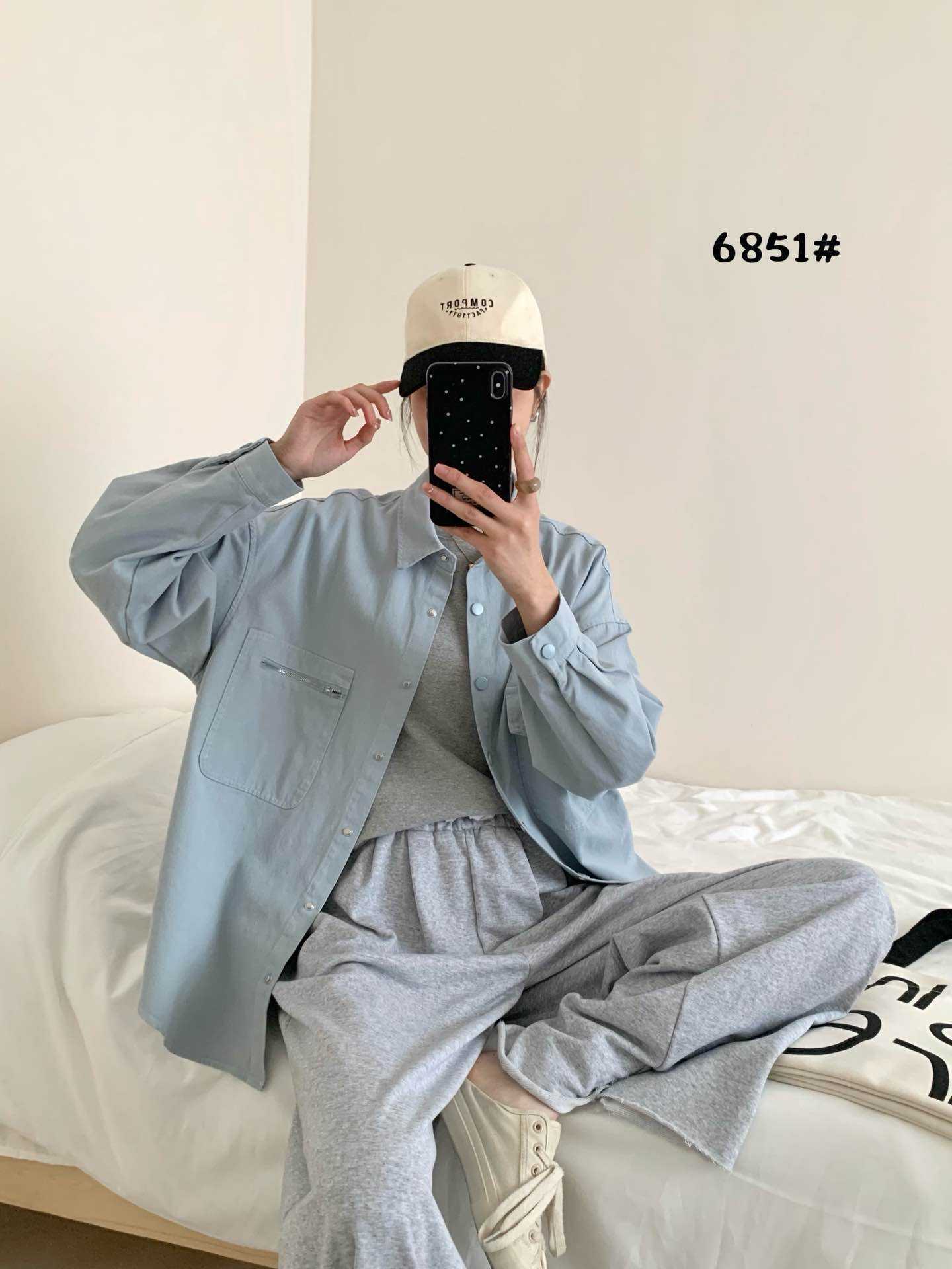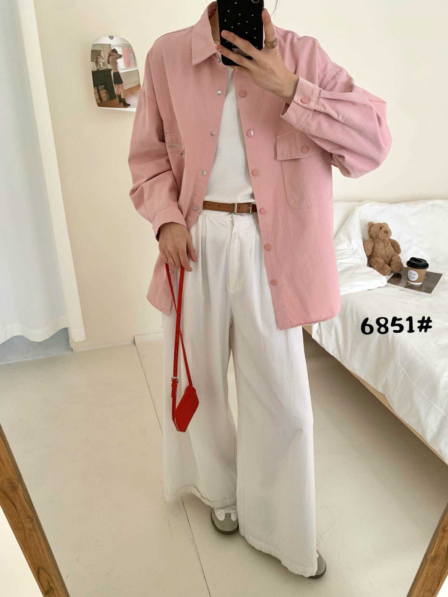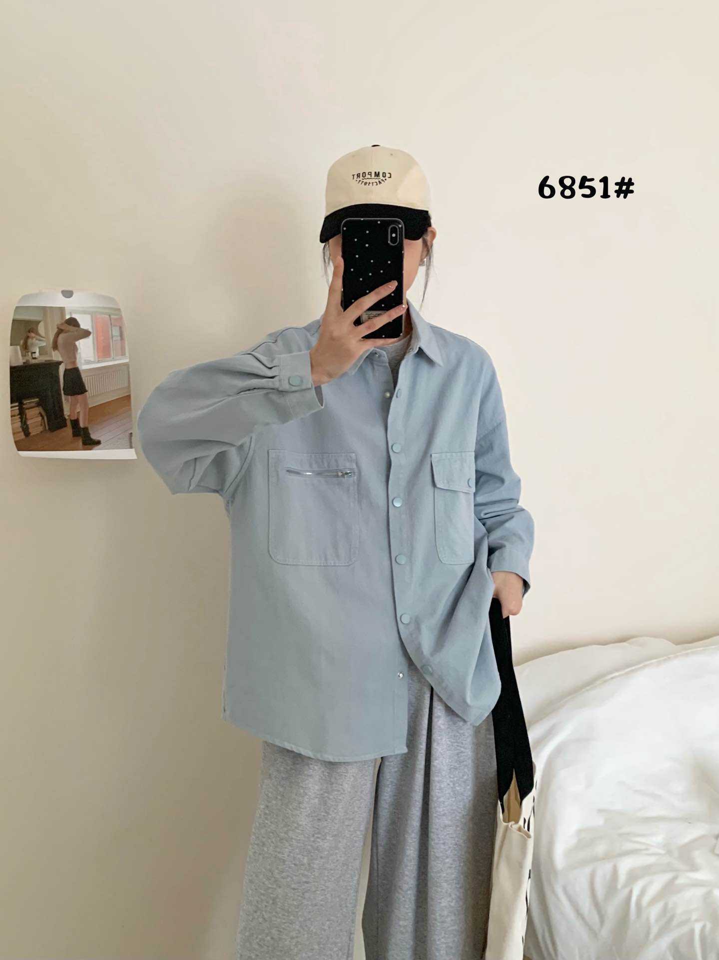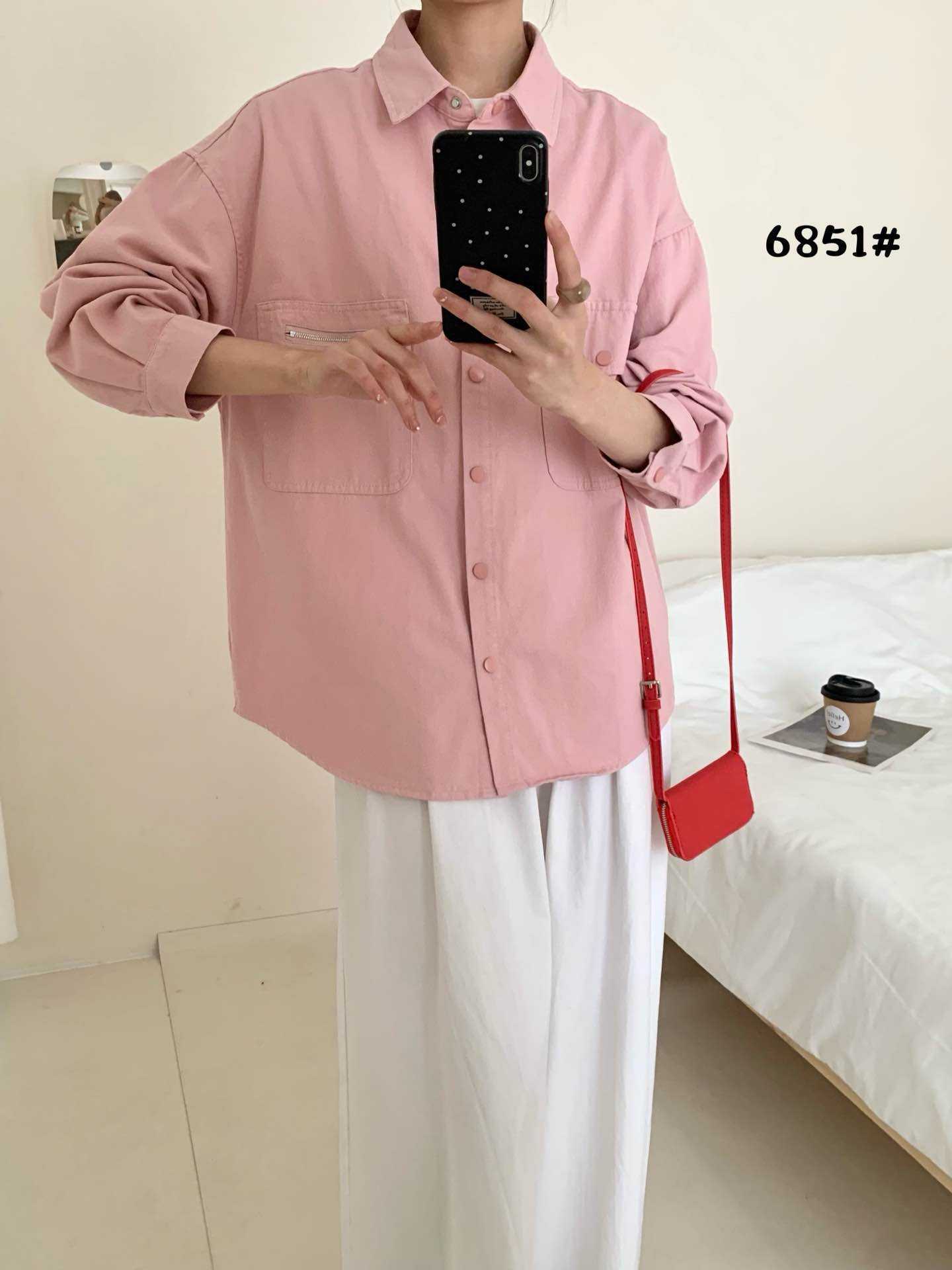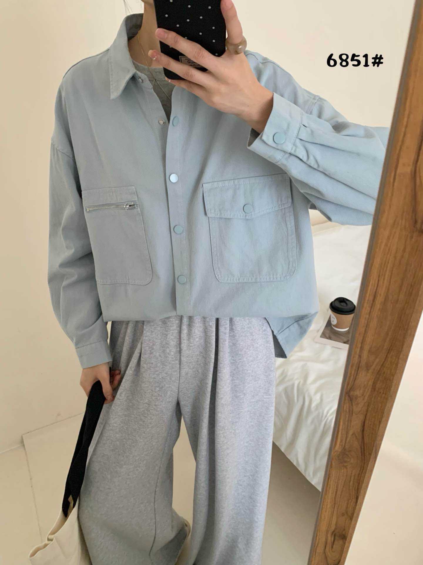 작업복 캐주얼 스타일 지퍼 더블 포켓 옷깃 데님 셔츠 재킷 여성의 봄 느슨한 대형 외부 재킷스토어 가기