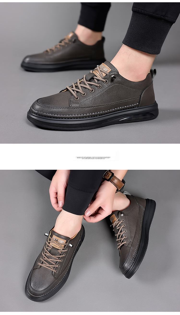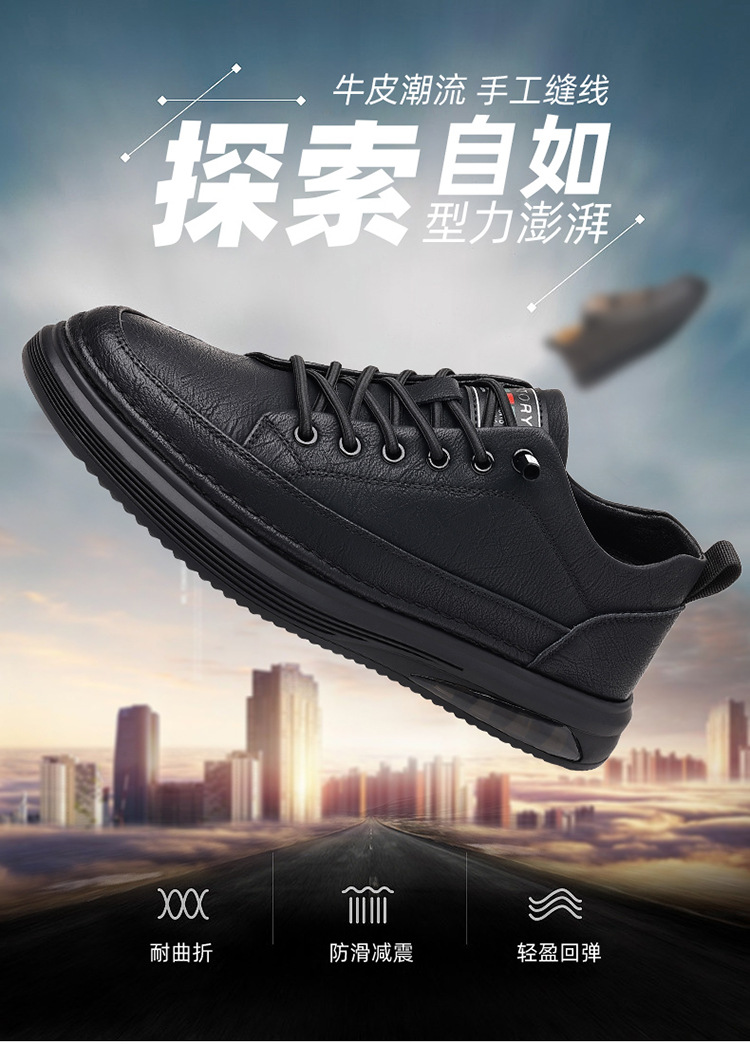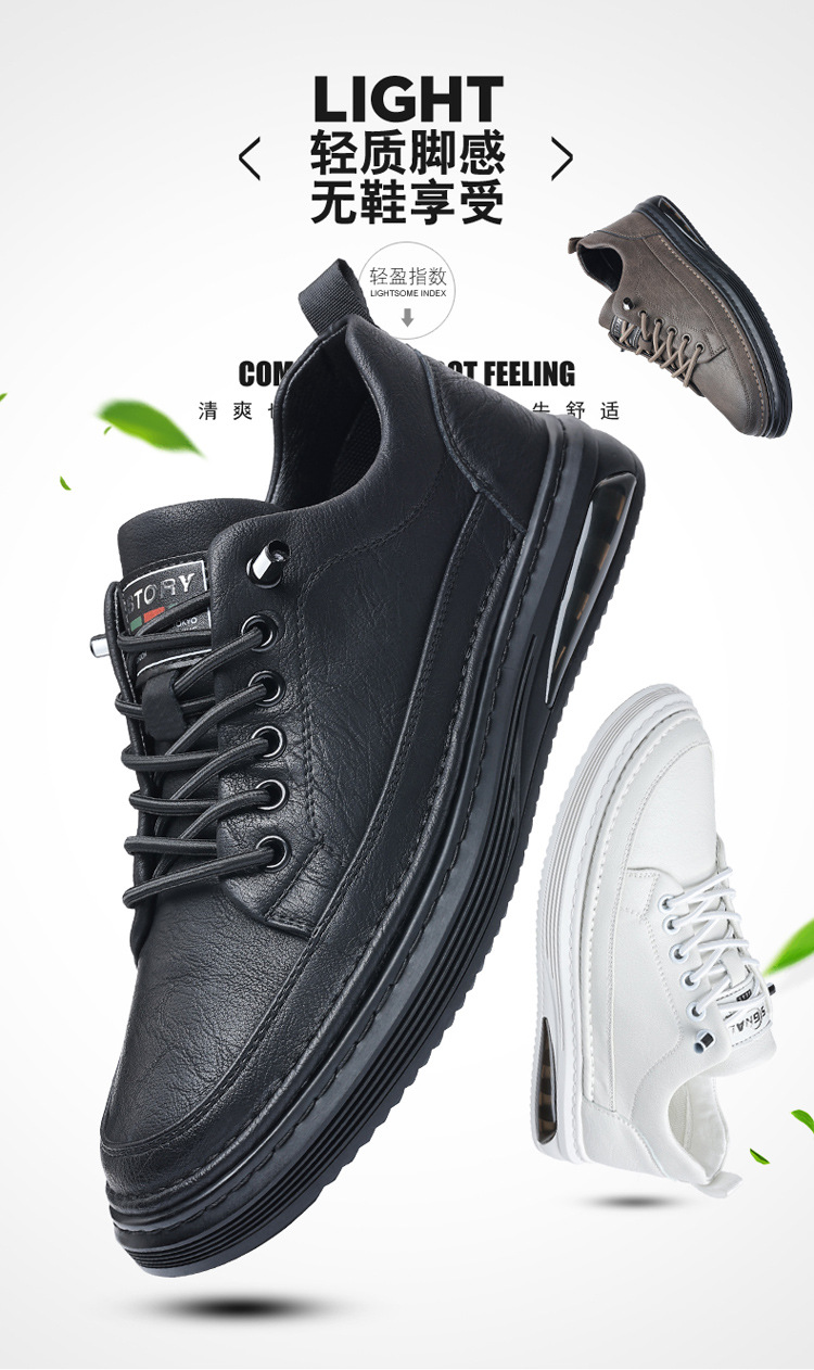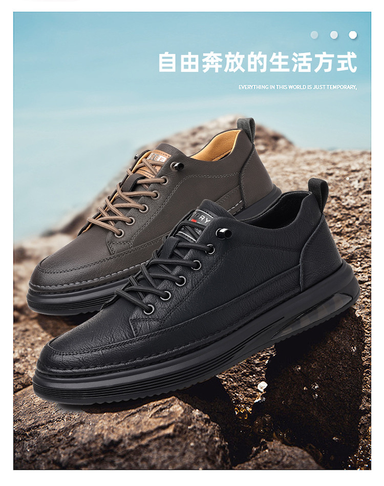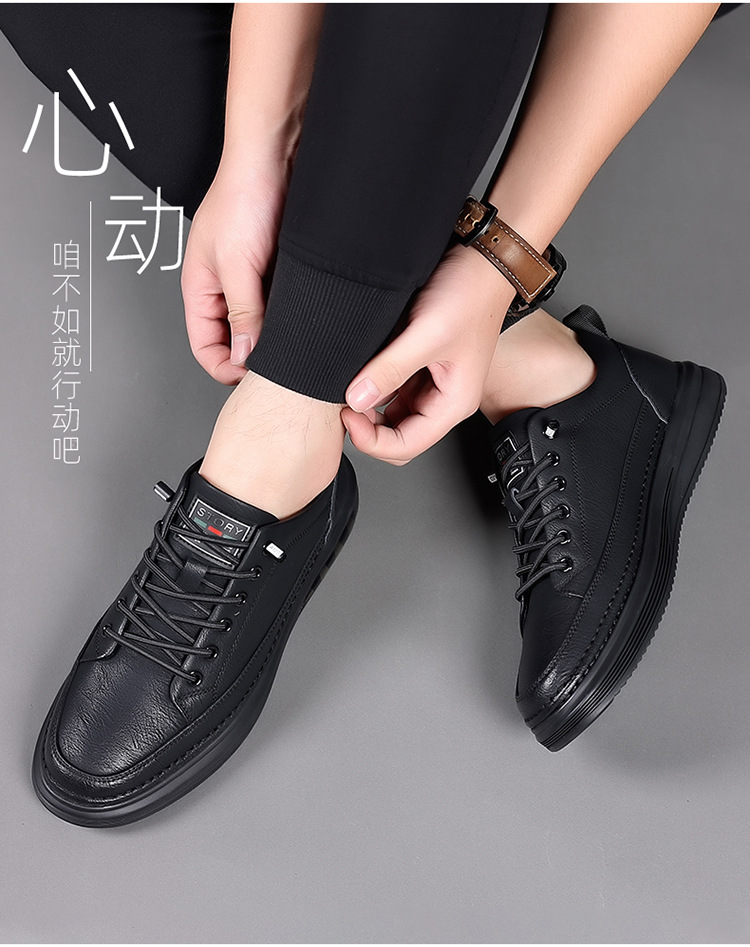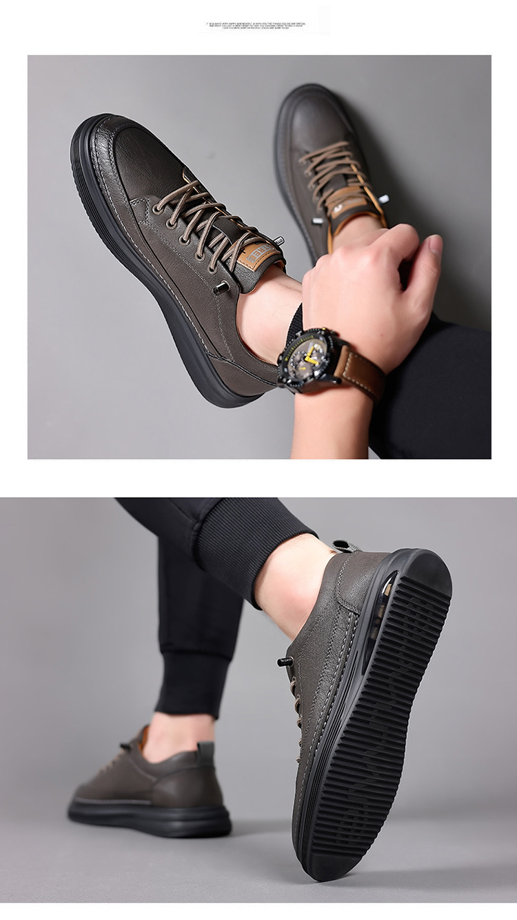 국경 간 플러스 사이즈 남성 신발 2025 봄과 가을 새로운 남성 매일 캐주얼 가죽 신발 남성용 레이스 프리 트렌디 스니커즈 3033스토어 가기