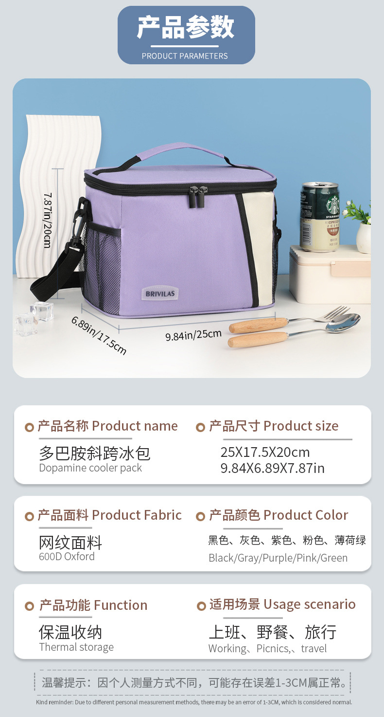 대용량 슬링 점심 가방 도파민 색상 매칭 피크닉 가방 대외 무역 국경 간 아이스 백 점심 가방 단열 가방