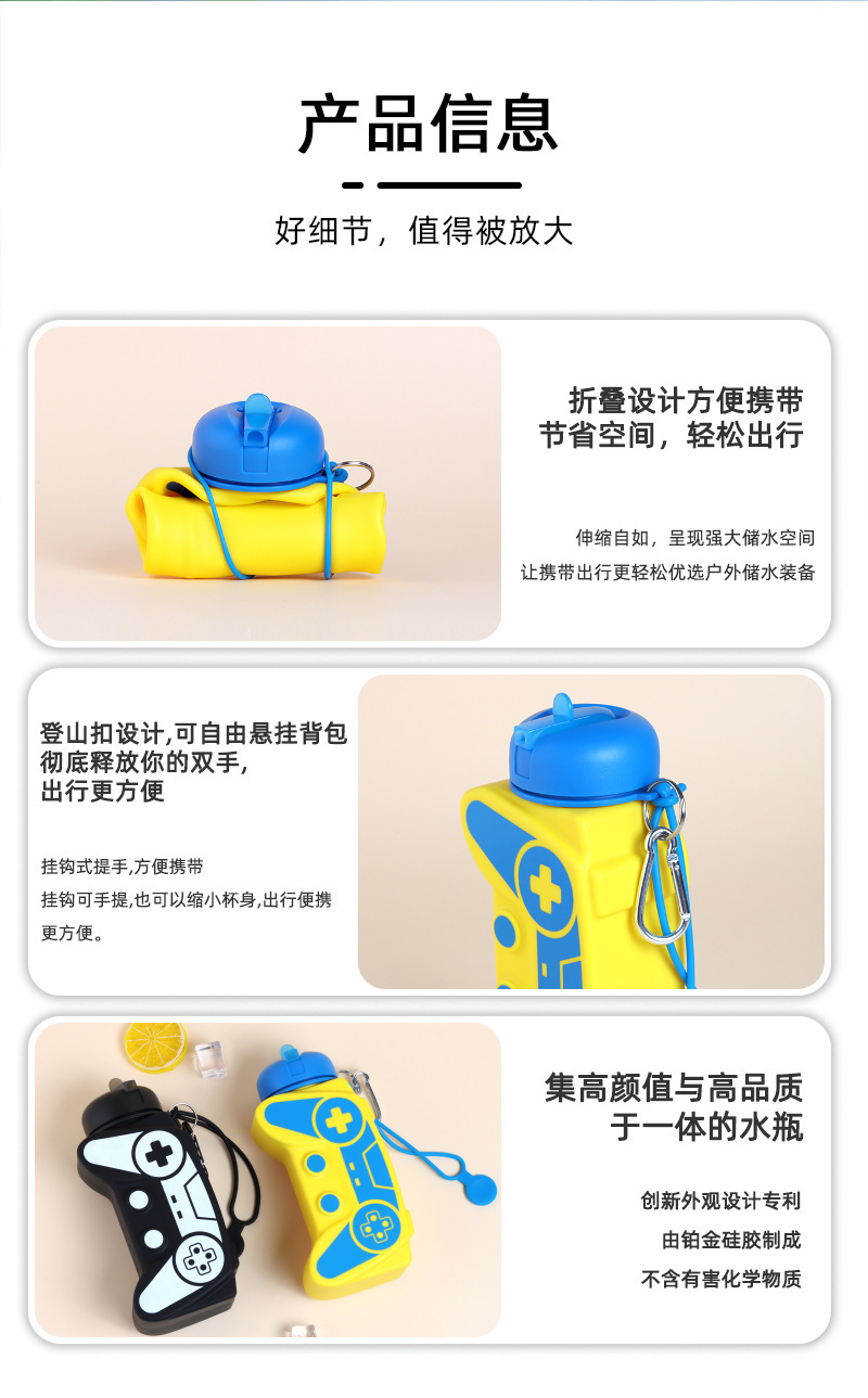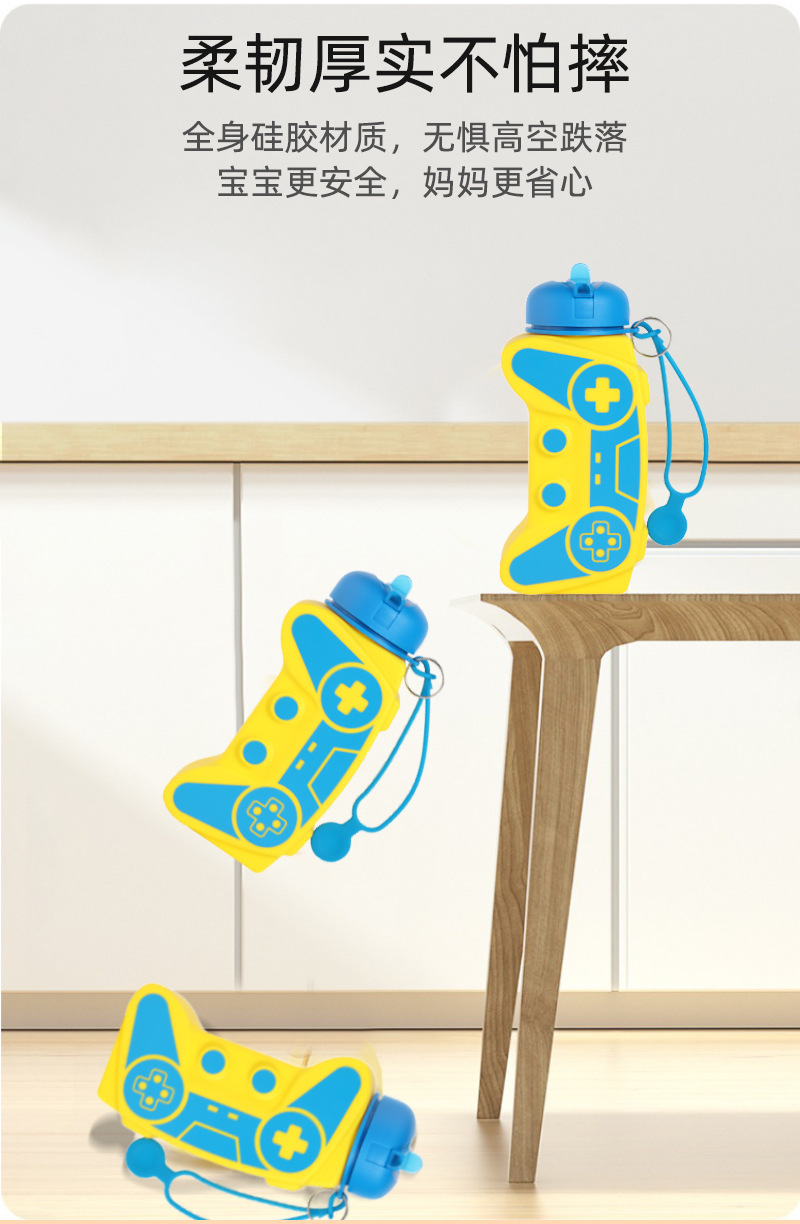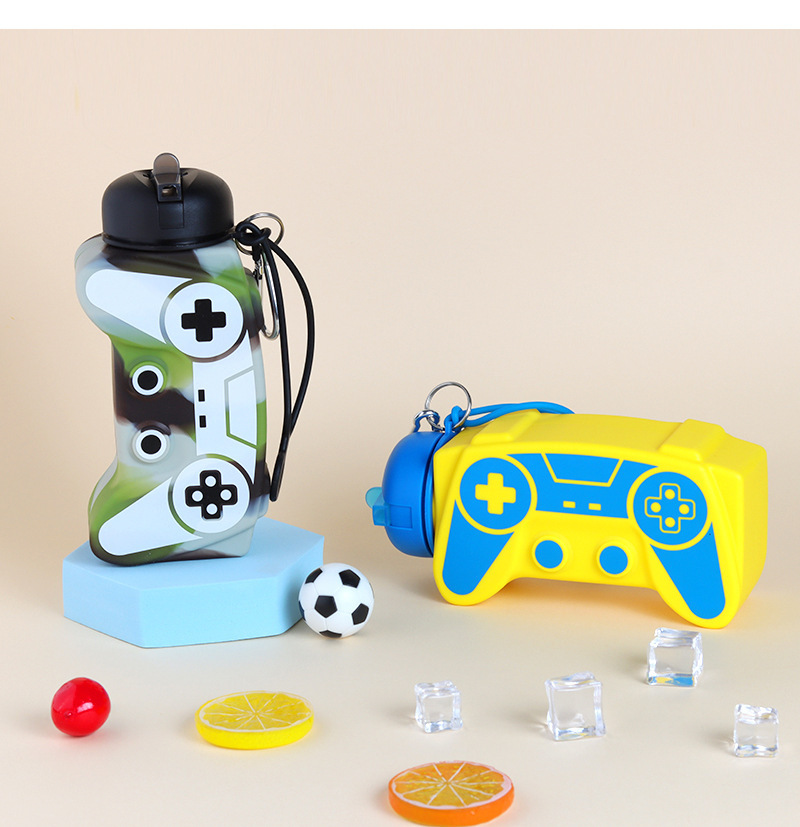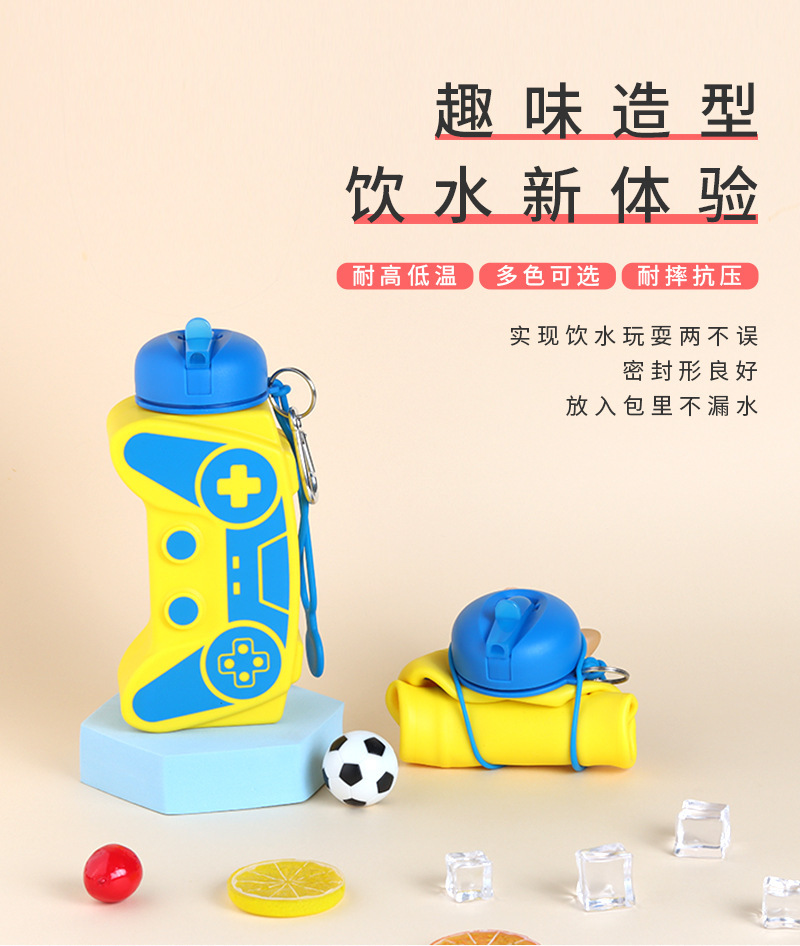 아마존 뜨거운 판매 창조적 인 게임 핸들 물 컵 휴대용 어린이 물 주전자 가정용 실리콘 접는 컵스토어 가기