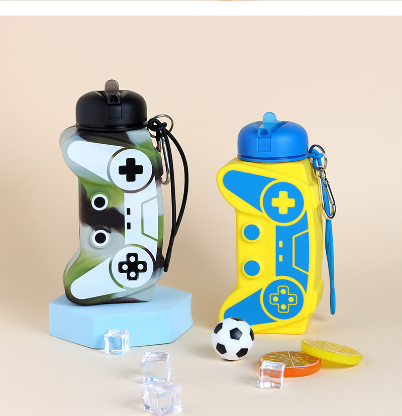 아마존 뜨거운 판매 창조적 인 게임 핸들 물 컵 휴대용 어린이 물 주전자 가정용 실리콘 접는 컵