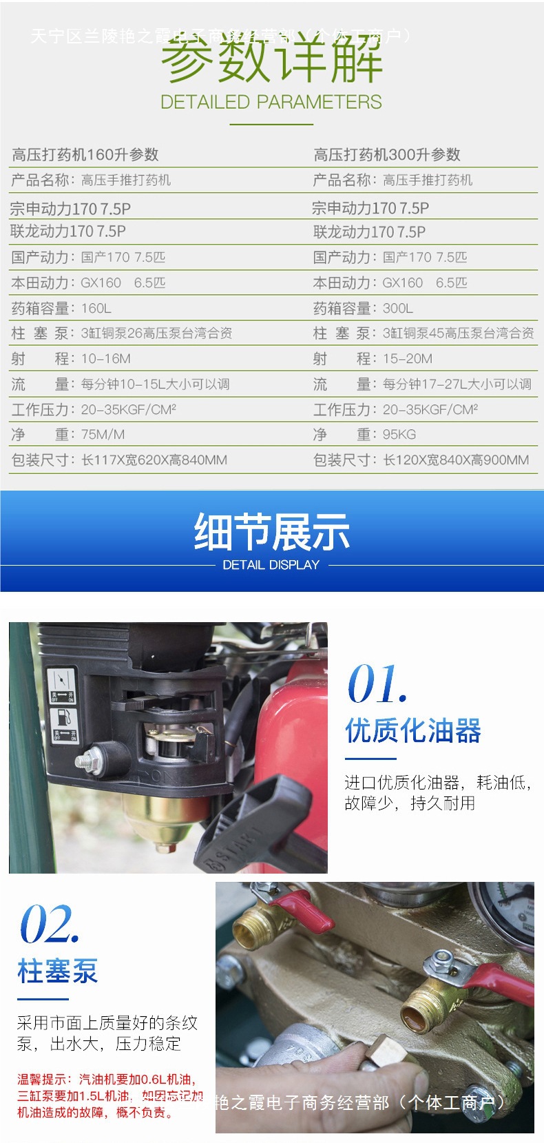 • 300L 구성 Zongshen Power + 30m + 20m 튜브 + 총