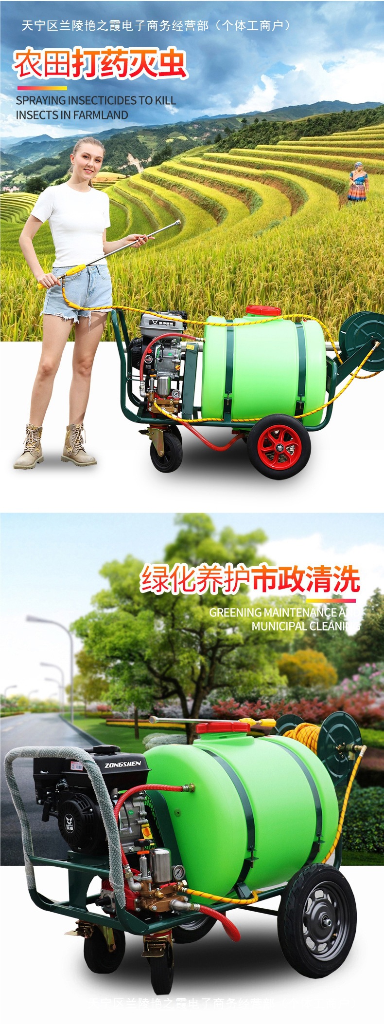 Zongshen 푸시 형 손 분무기 160 리터 디젤 고압 농업 분무기 가솔린 엔진 동력 분무기스토어 가기
