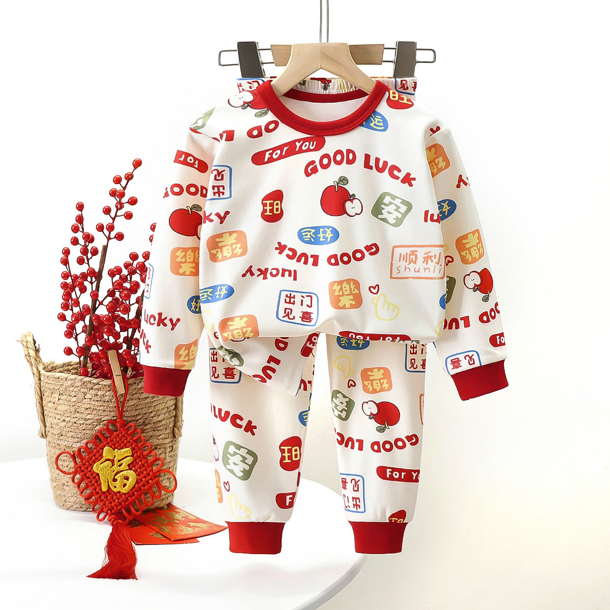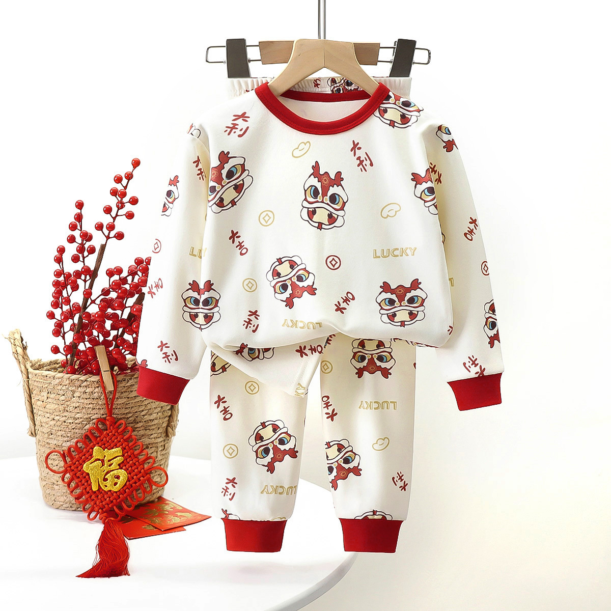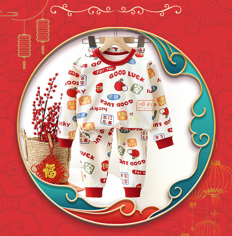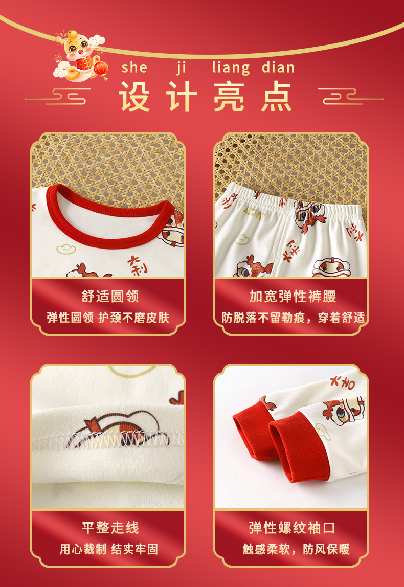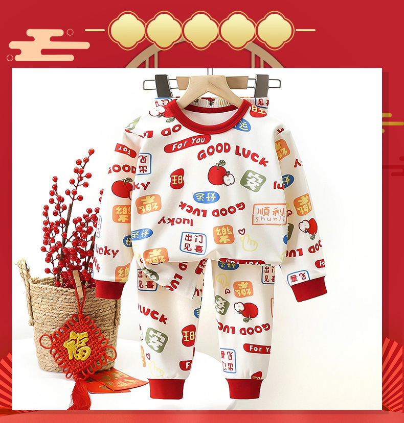 신년 상품 홍윤 홈 옷 어린이 속옷 세트 소년 소녀를위한 새로운 따뜻한 긴팔 잠옷