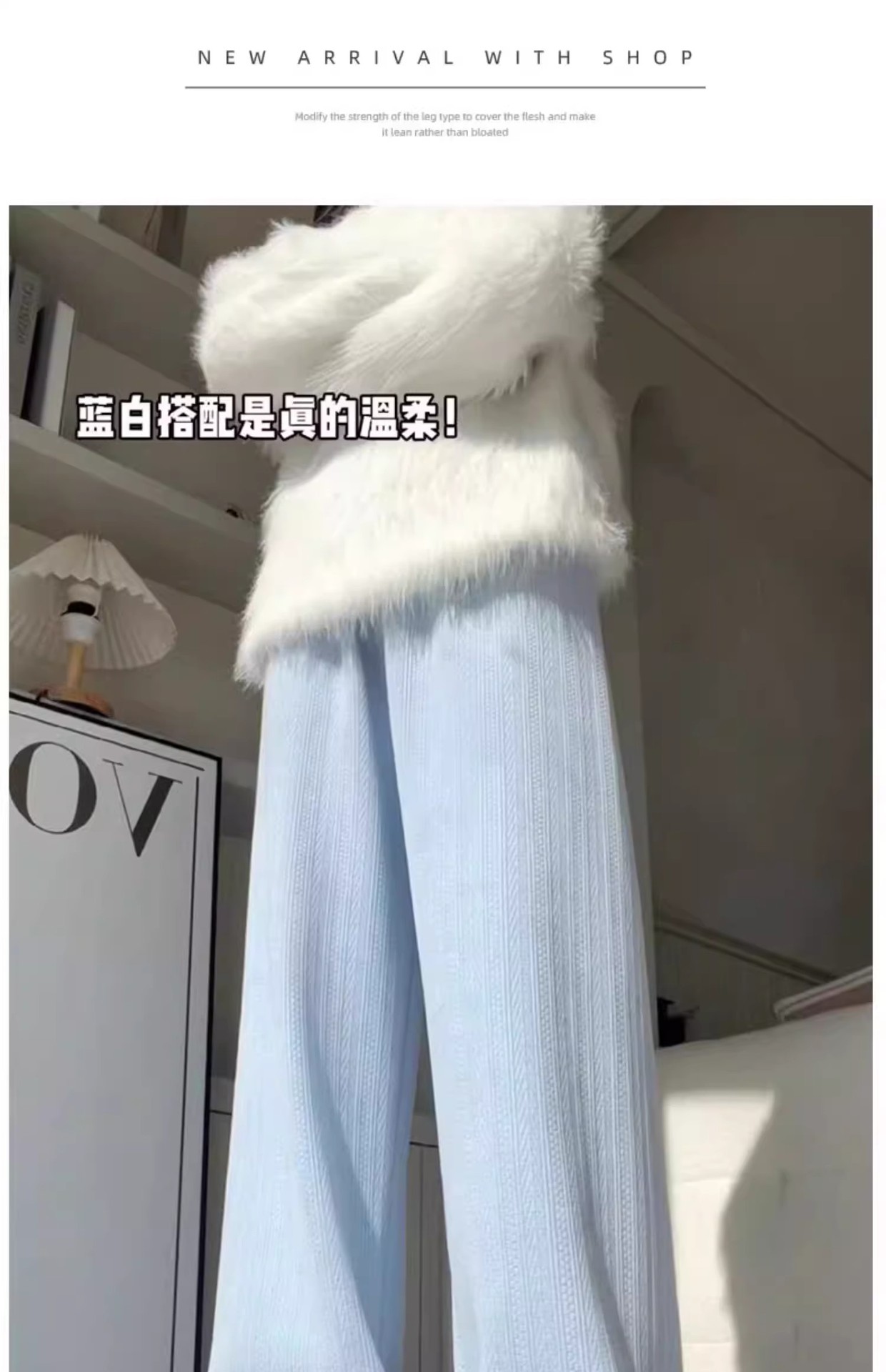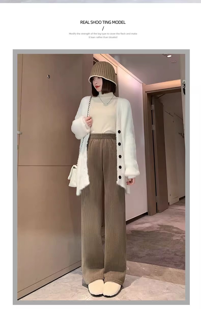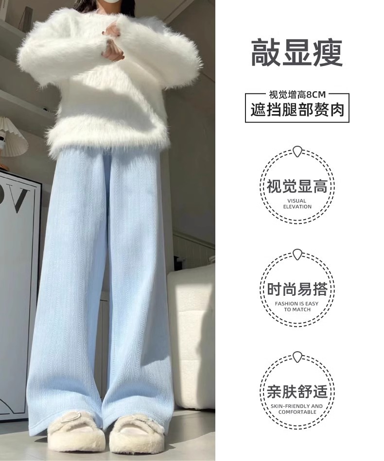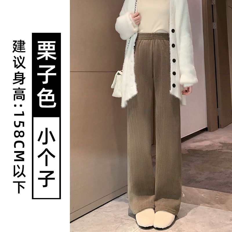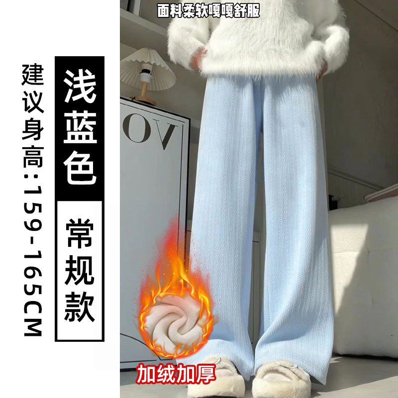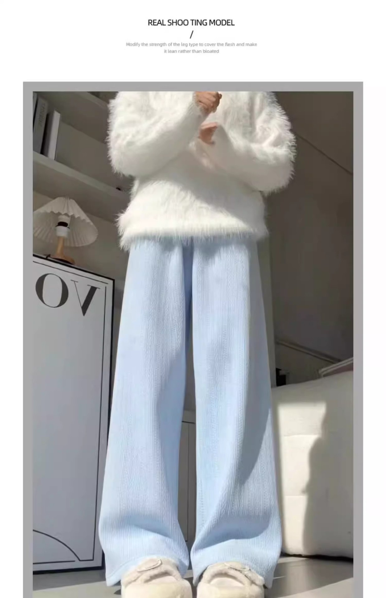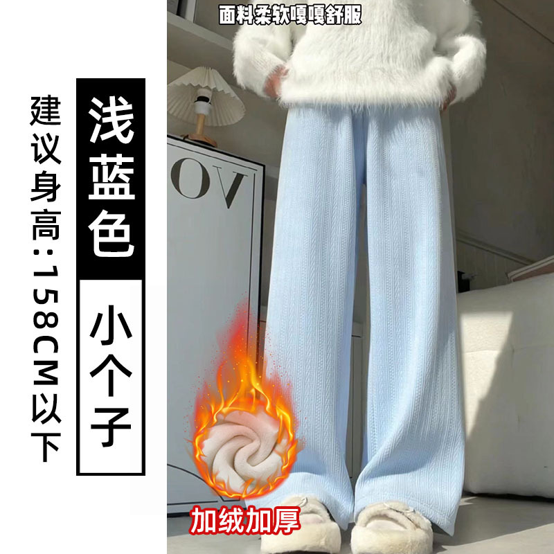 블루 체닐 와이드 레그 바지 여성용 가을 및 겨울 코튼 바지 외부 착용 높은 허리 느슨한 스트레이트 좁은 캐주얼 플리스-랩핑 바지스토어 가기