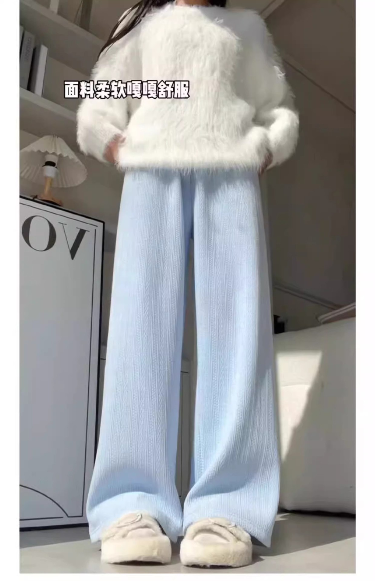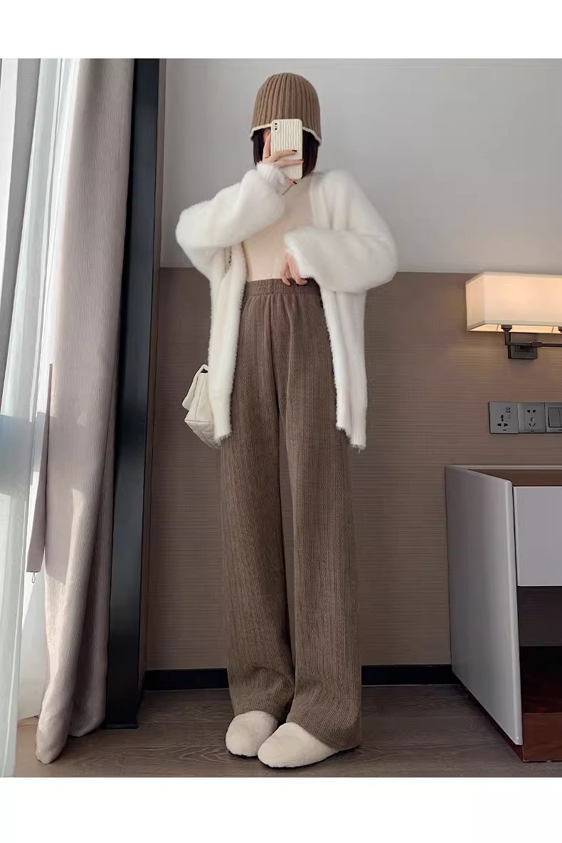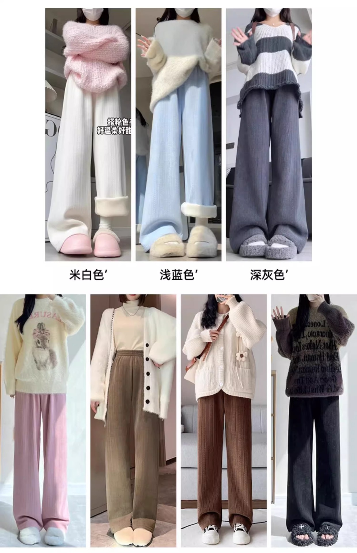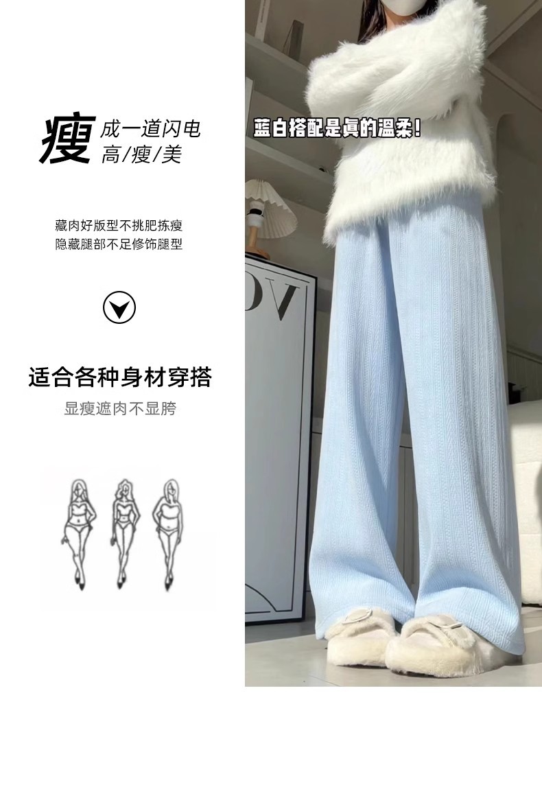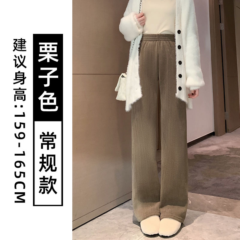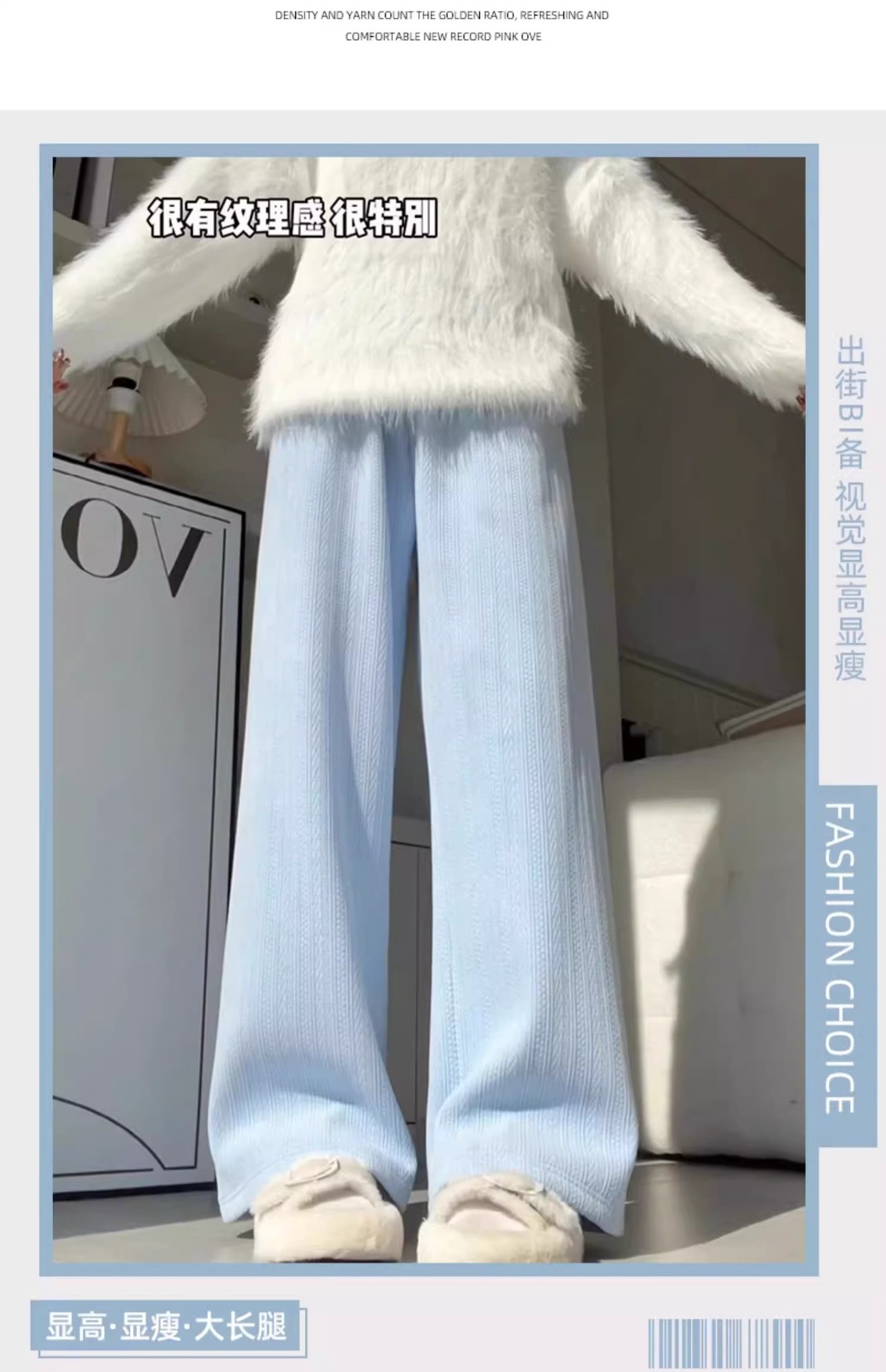 블루 체닐 와이드 레그 바지 여성용 가을 및 겨울 코튼 바지 외부 착용 높은 허리 느슨한 스트레이트 좁은 캐주얼 플리스-랩핑 바지스토어 가기
