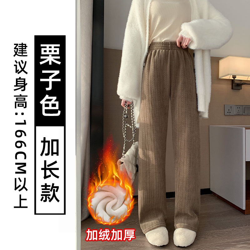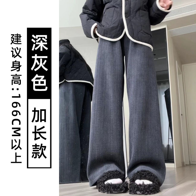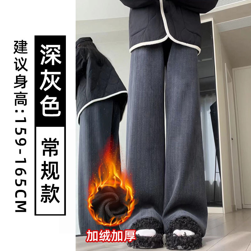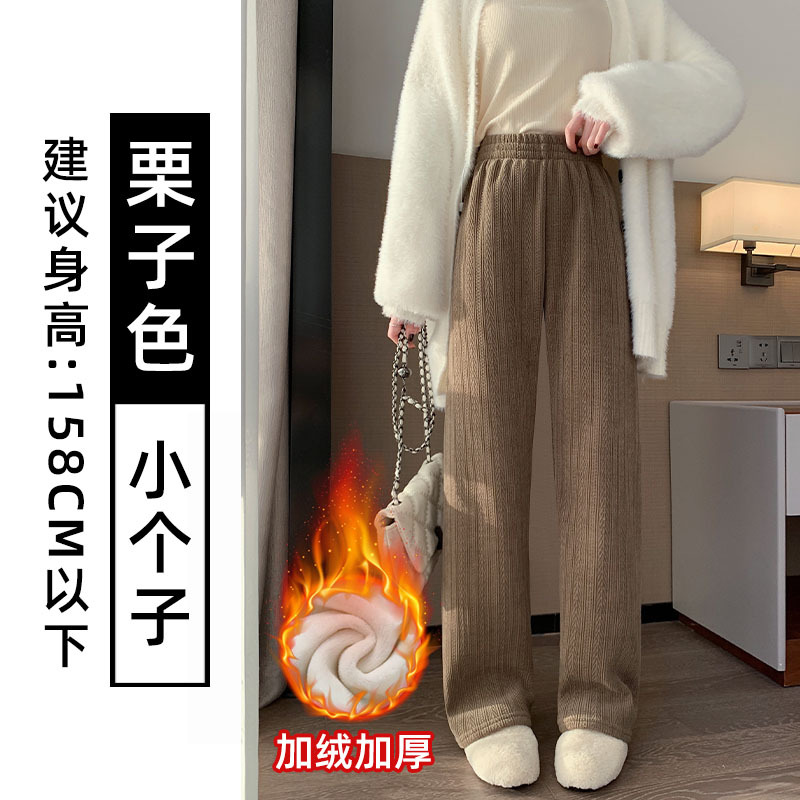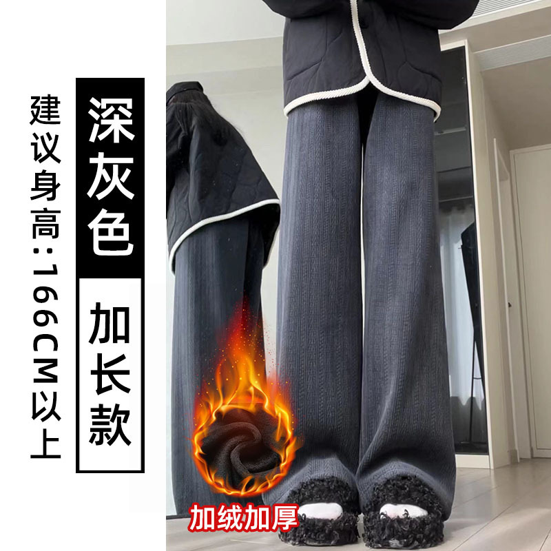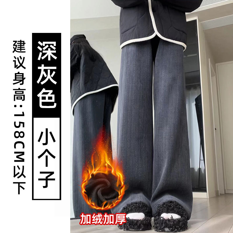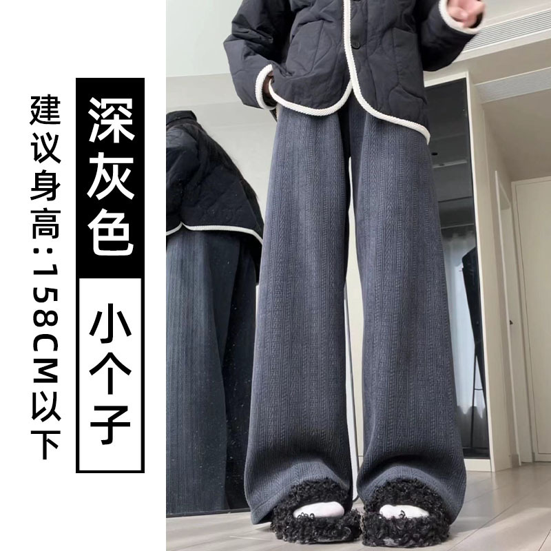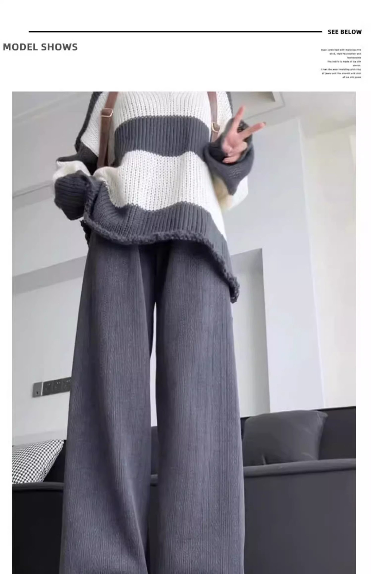 블루 체닐 와이드 레그 바지 여성용 가을 및 겨울 코튼 바지 외부 착용 높은 허리 느슨한 스트레이트 좁은 캐주얼 플리스-랩핑 바지스토어 가기