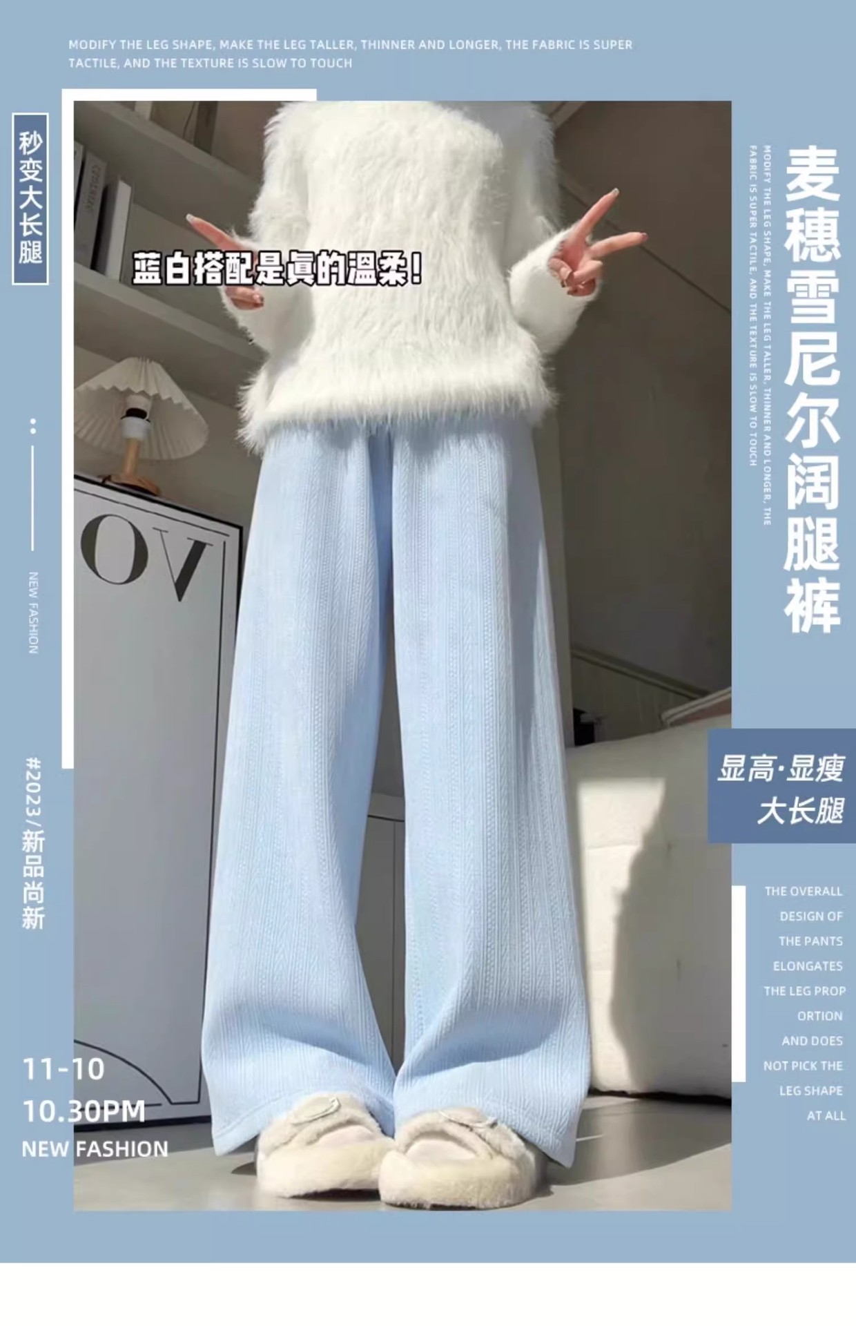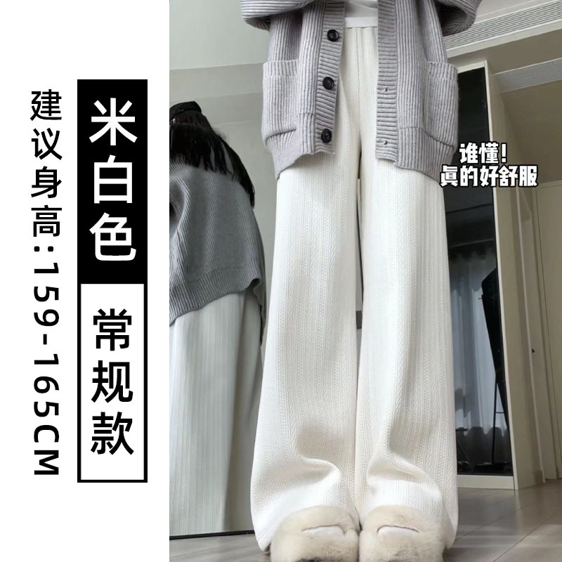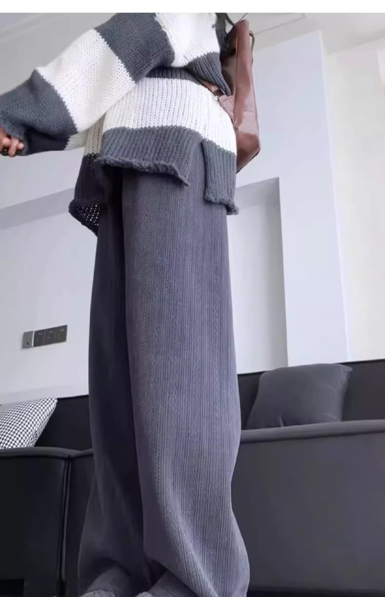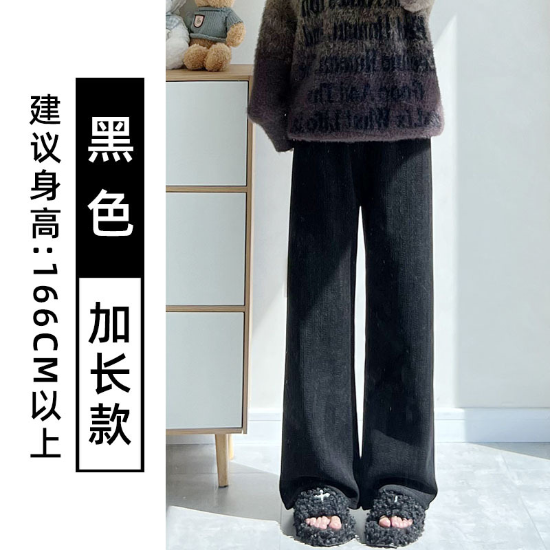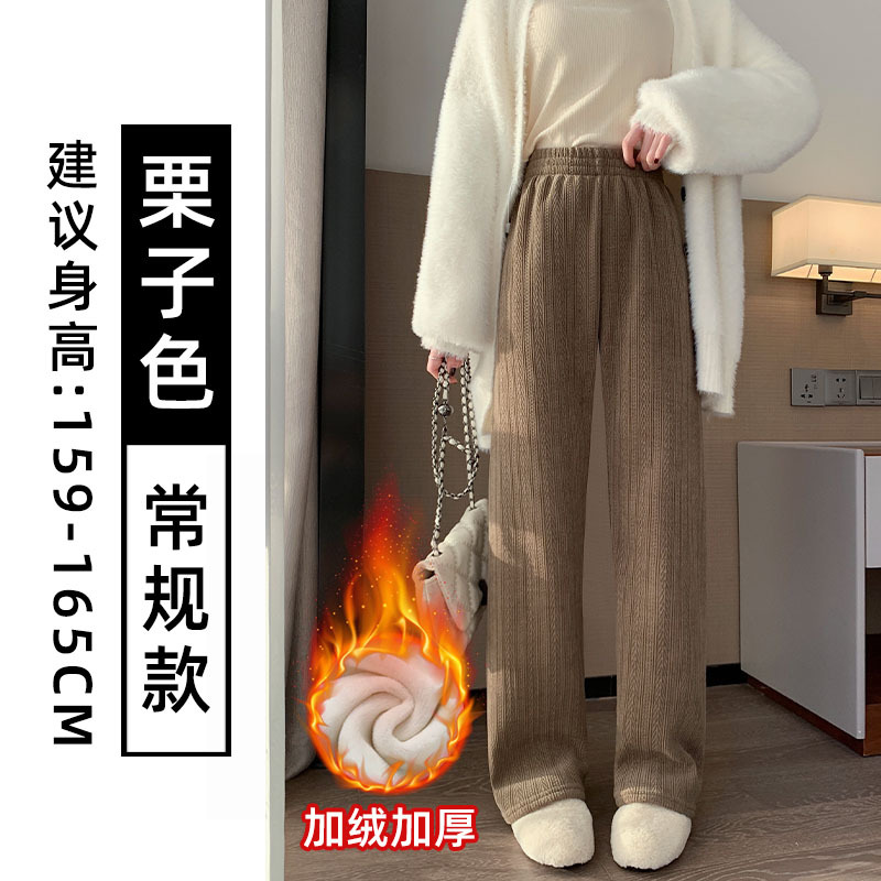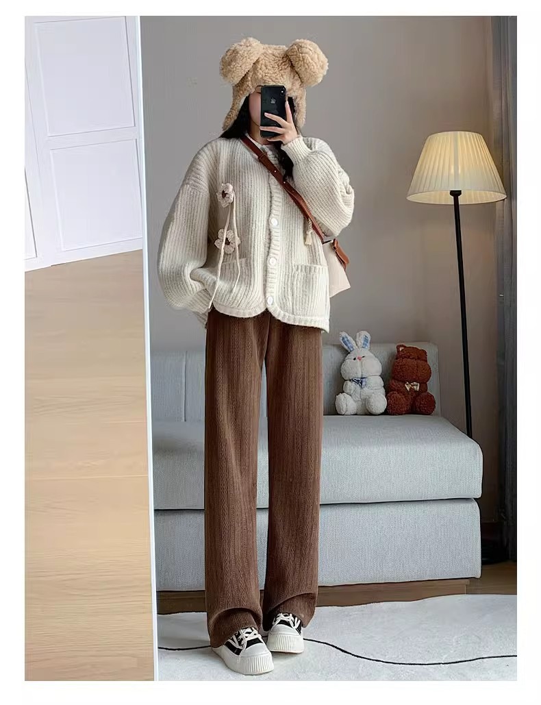 블루 체닐 와이드 레그 바지 여성용 가을 및 겨울 코튼 바지 외부 착용 높은 허리 느슨한 스트레이트 좁은 캐주얼 플리스-랩핑 바지스토어 가기