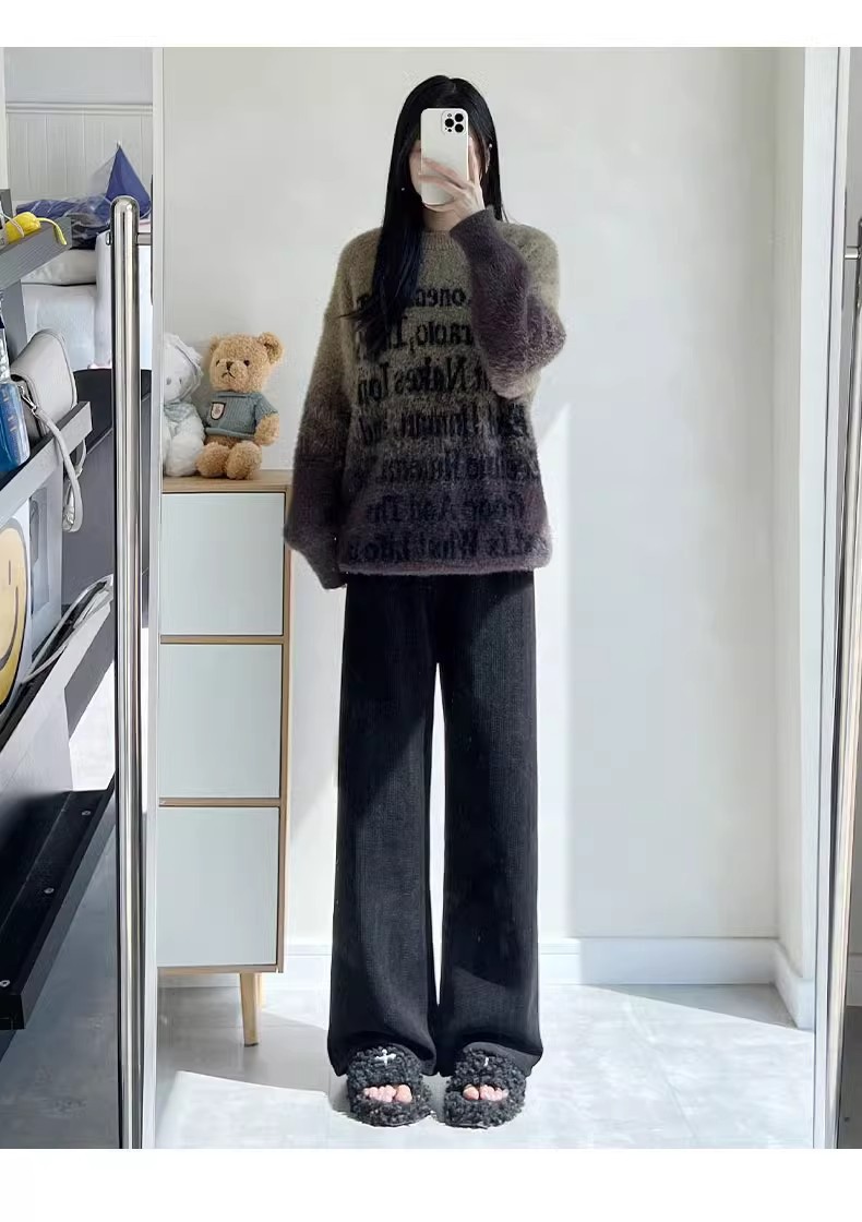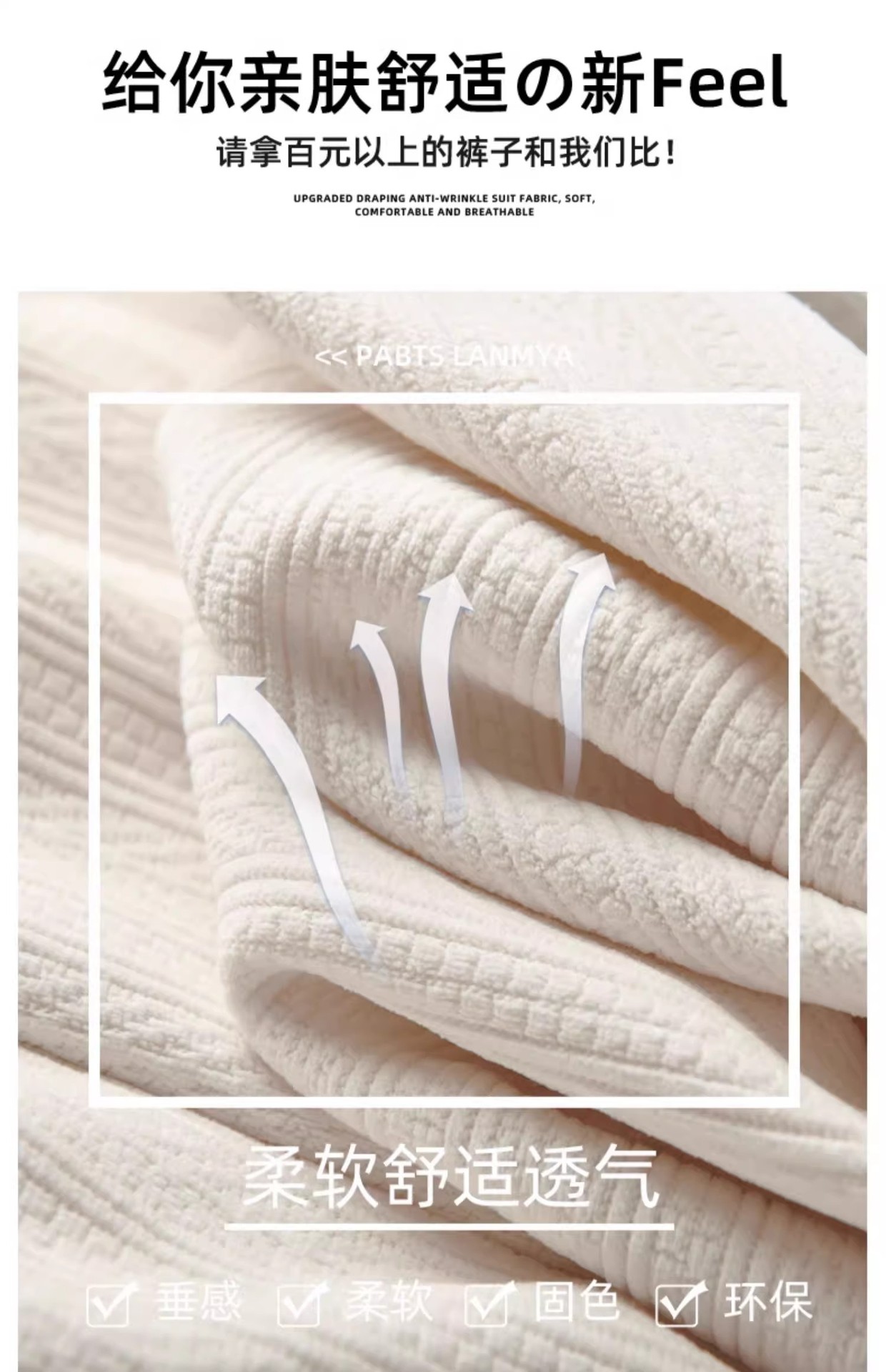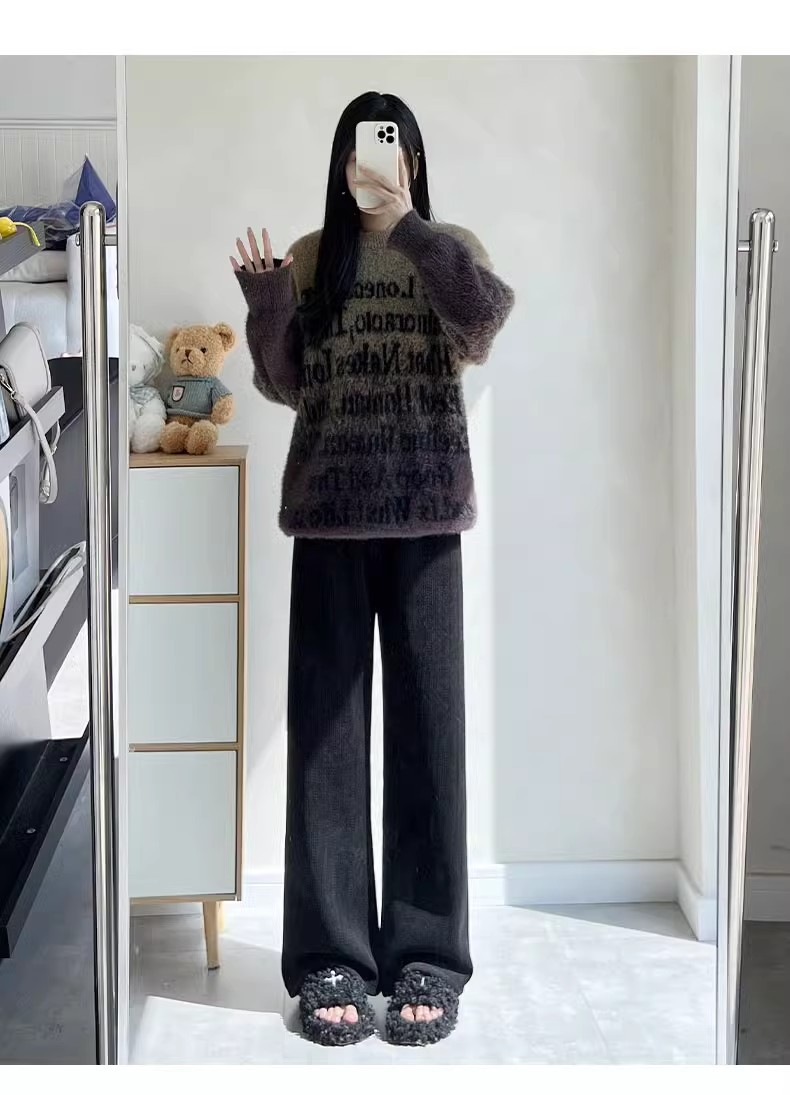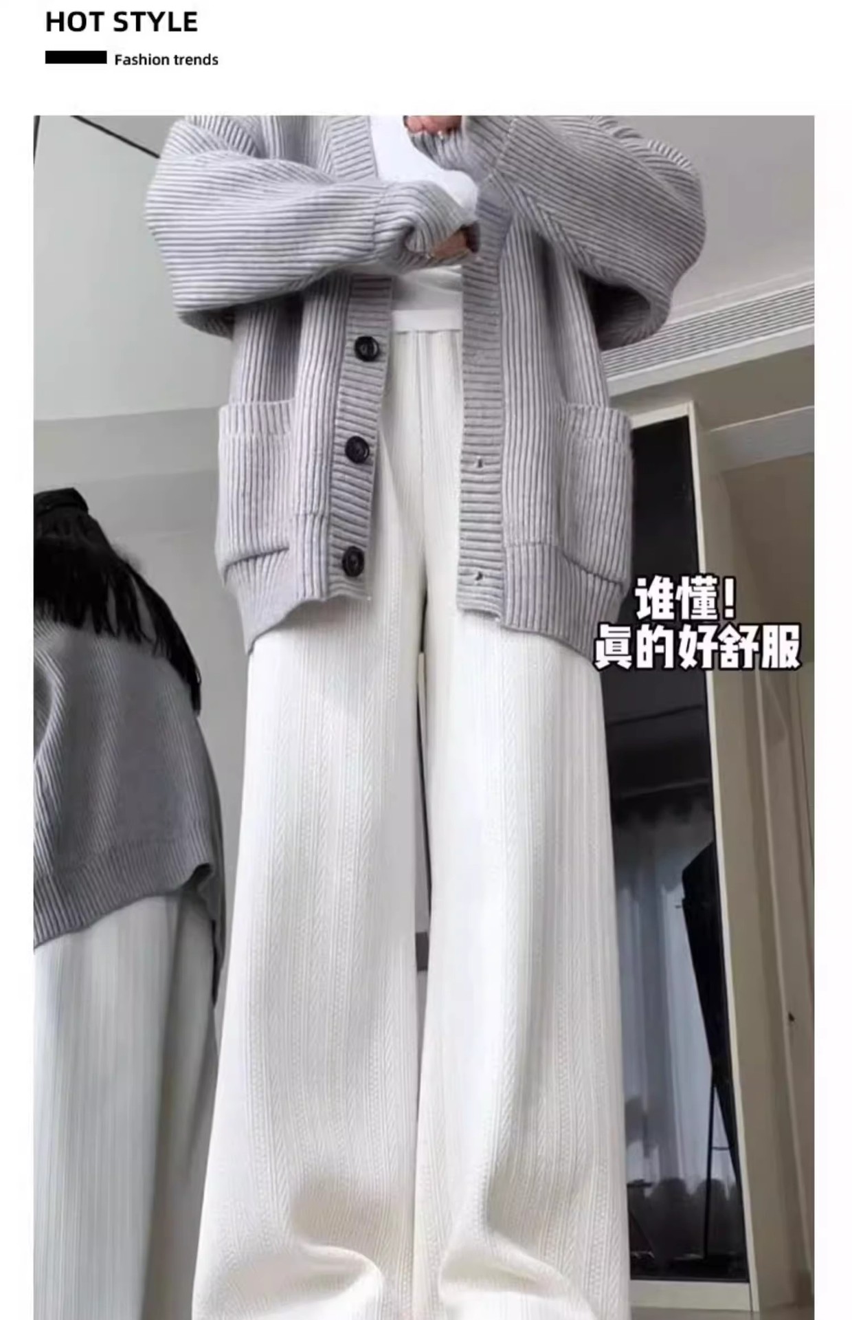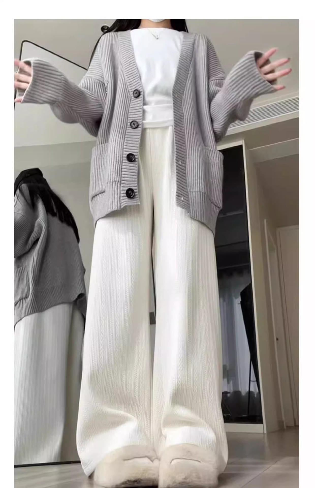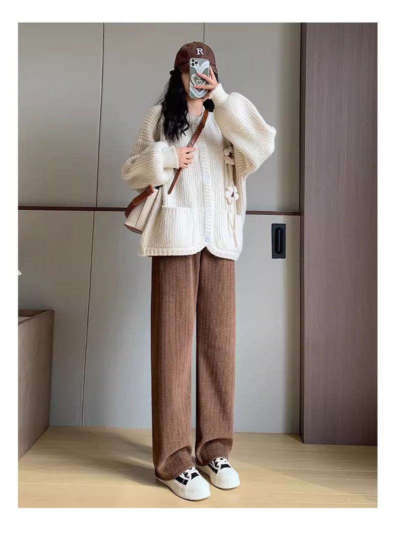 블루 체닐 와이드 레그 바지 여성용 가을 및 겨울 코튼 바지 외부 착용 높은 허리 느슨한 스트레이트 좁은 캐주얼 플리스-랩핑 바지스토어 가기
