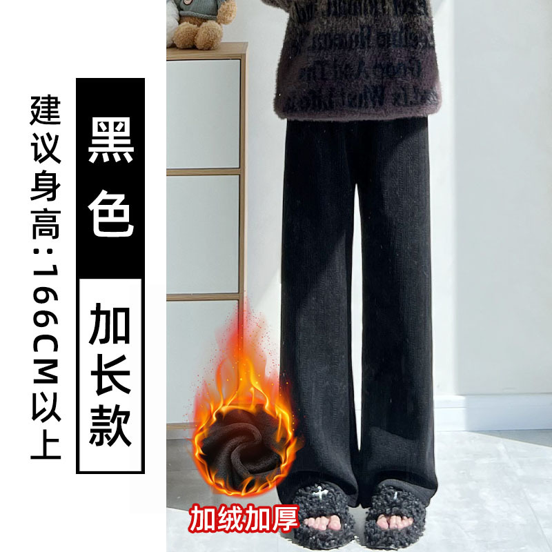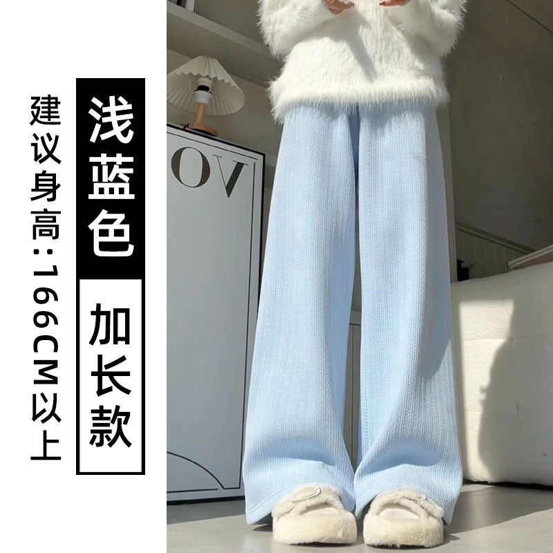 블루 체닐 와이드 레그 바지 여성용 가을 및 겨울 코튼 바지 외부 착용 높은 허리 느슨한 스트레이트 좁은 캐주얼 플리스-랩핑 바지