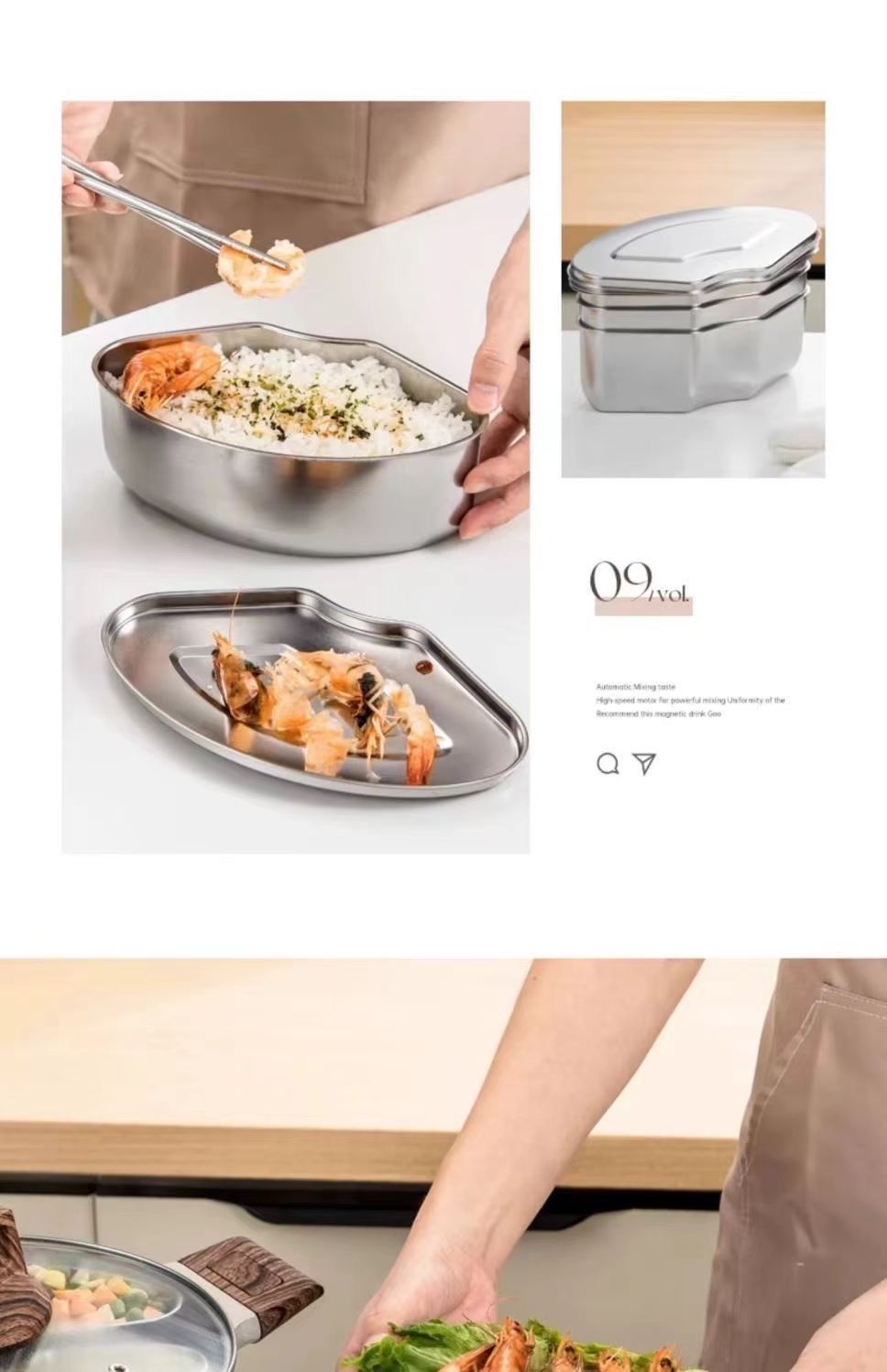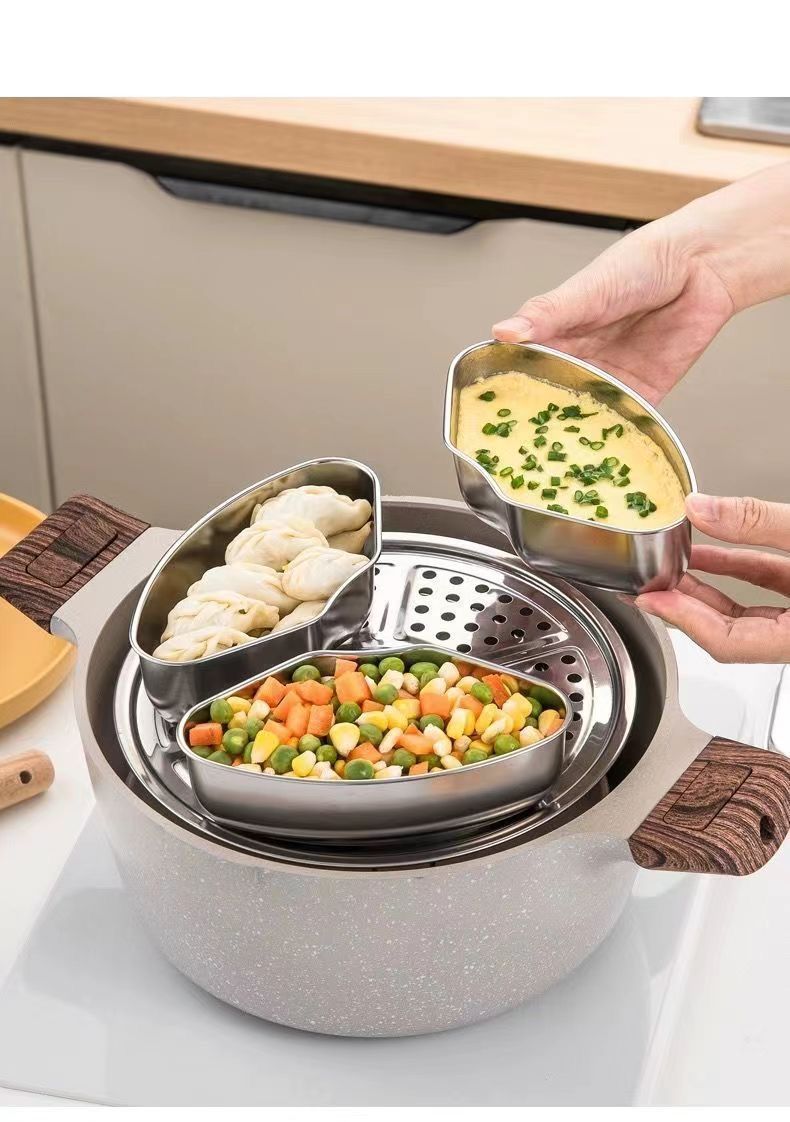 스테인레스 스틸 팬 모양의 304 뚜껑 김이 나는 접시 김이 나는 상자 가정용 증기선 케이지 김이 나는 그릇 밥솥 쌀 김이 나는 유물