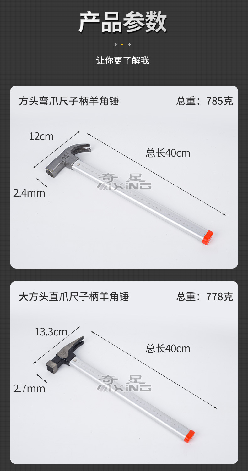• 작은 사각형 머리 직선 발톱 눈금자 손잡이 클로 망치