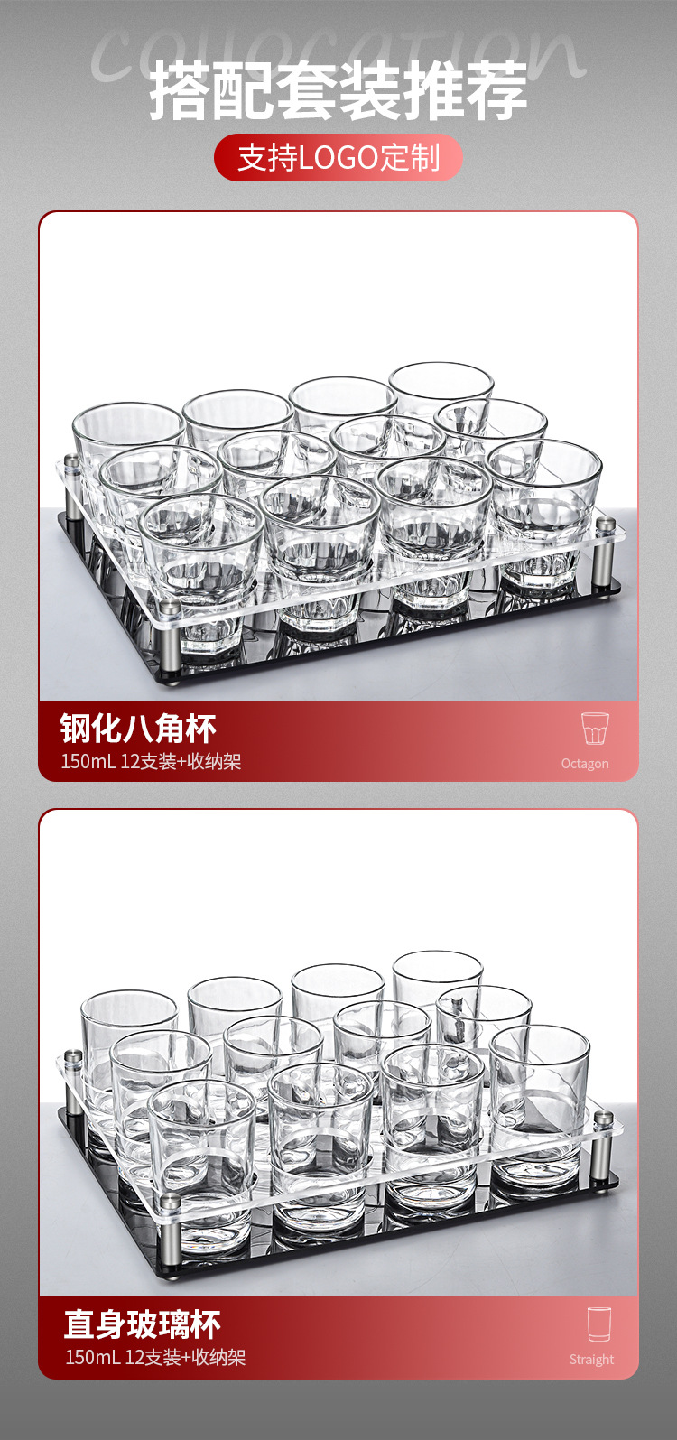 유리 맥주 찻잔 세트 가정용 작은 찻잔 강화 팔각형 머그잔 일회성 컵 홀더 KTV 고급 상업