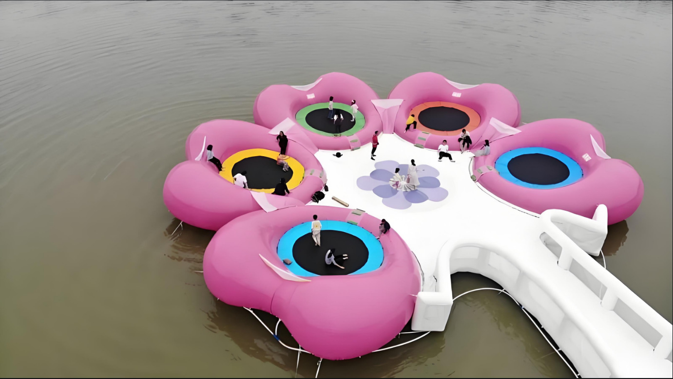 그물 붉은 꽃 트램펄린 다리 명승지 야외 놀이 장비 물 공원 농장 사랑 풍선 성 튀는 침대스토어 가기