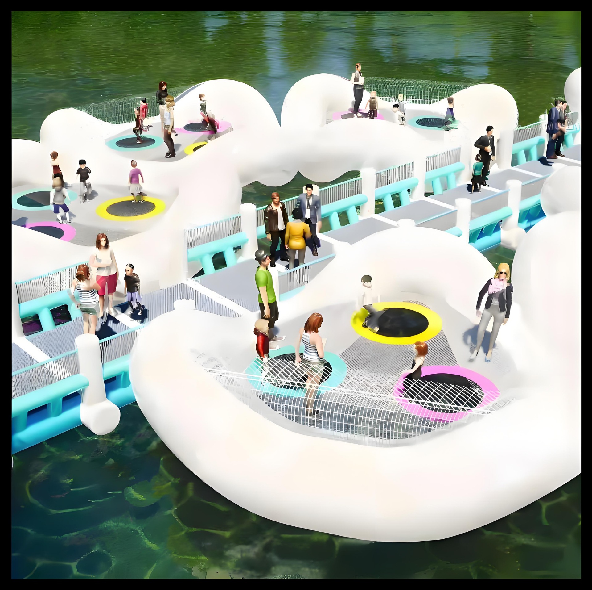 그물 붉은 꽃 트램펄린 다리 명승지 야외 놀이 장비 물 공원 농장 사랑 풍선 성 튀는 침대