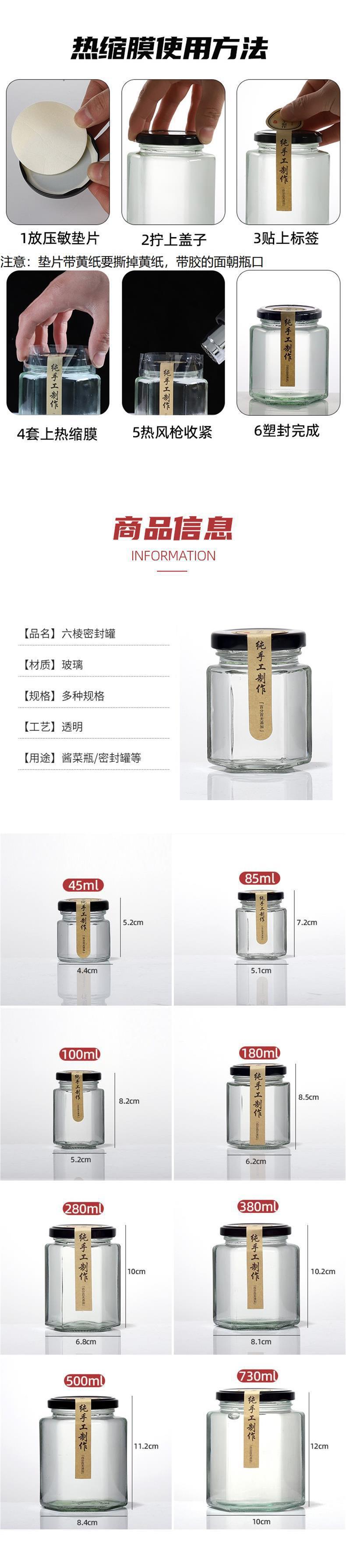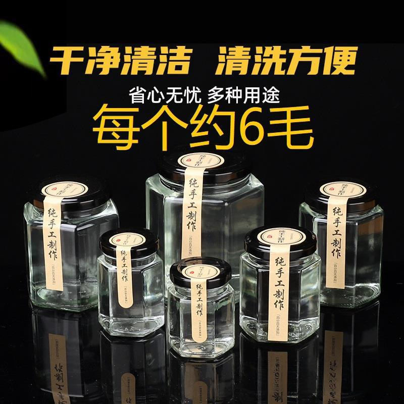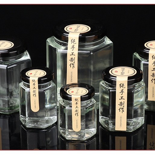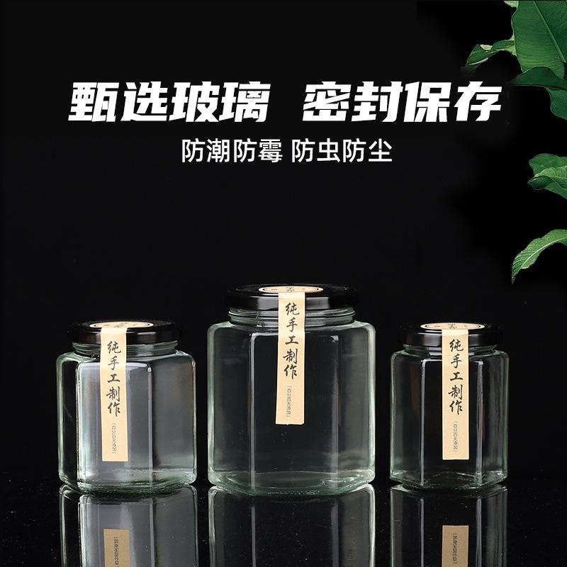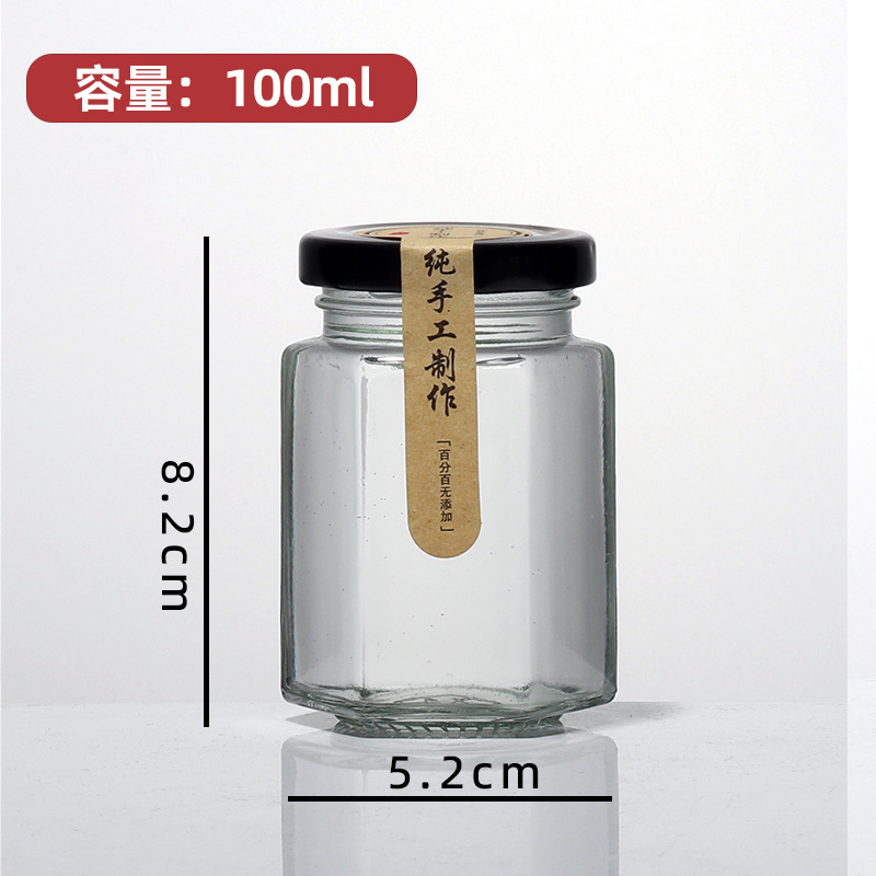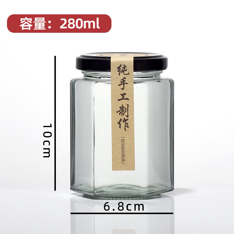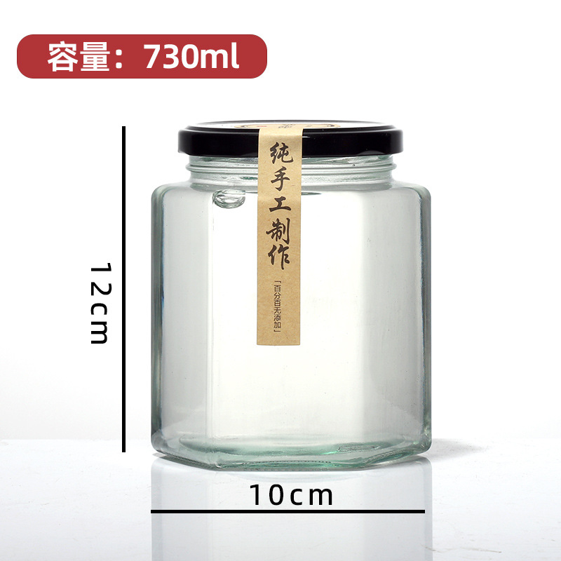 6 면 유리 병 식품 등급 봉인 된 항아리 레몬 페이스트 킬로 허니 병 칠리 소스 잼 쇠고기 소스