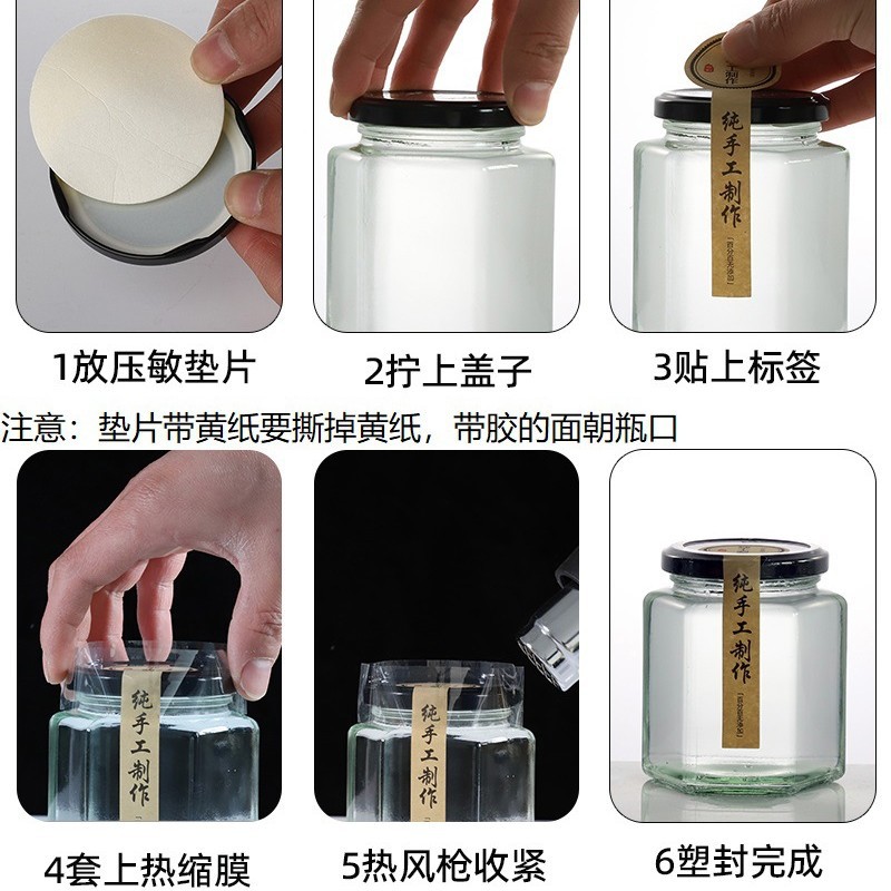 6 면 유리 병 식품 등급 봉인 된 항아리 레몬 페이스트 킬로 허니 병 칠리 소스 잼 쇠고기 소스스토어 가기