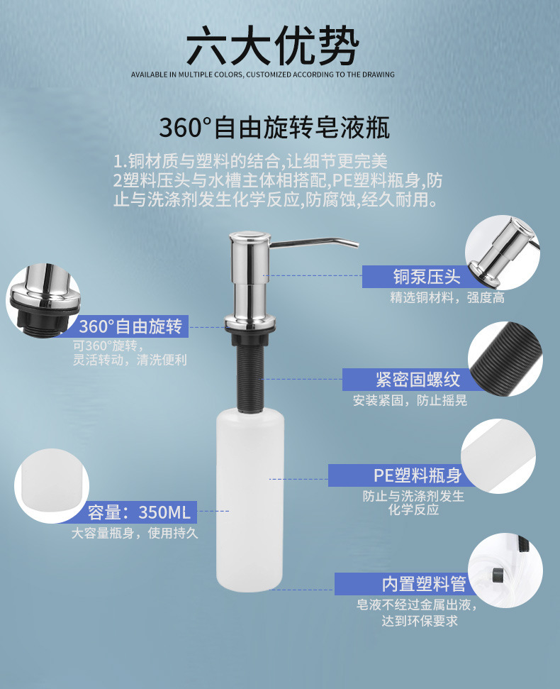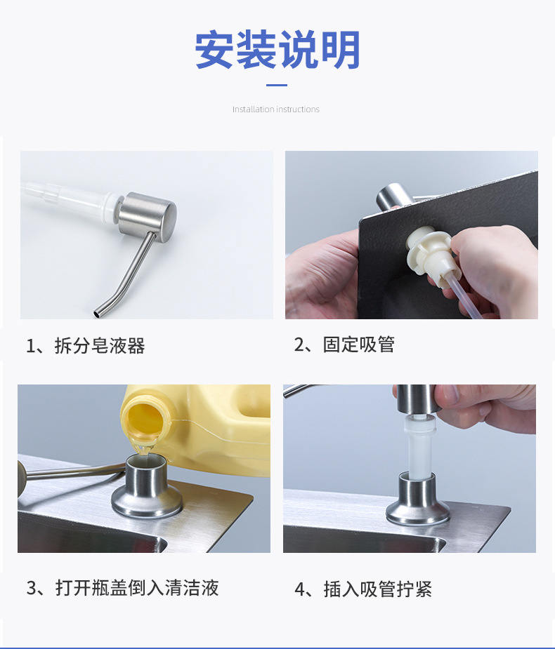 家用商用加厚304不锈钢按压皂液器 洗碗池水槽洗洁精延长器给皂器