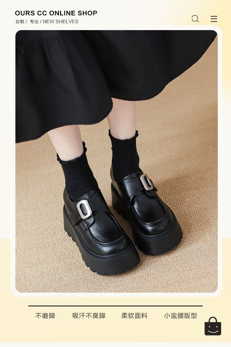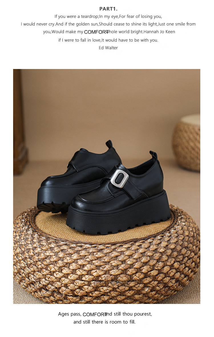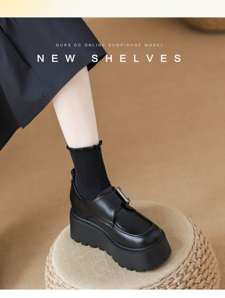 2025 새로운 높이 11cm 둥근 발가락 버클 스폰지 케이크 두꺼운 밑창 Lefu 신발 여성의 작은 가죽 신발 Lefu 신발 작은 가죽 신발스토어 가기