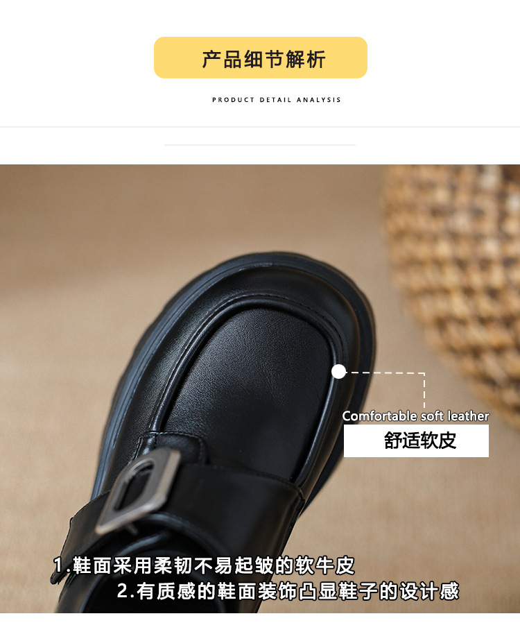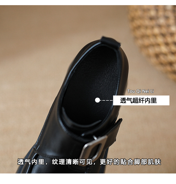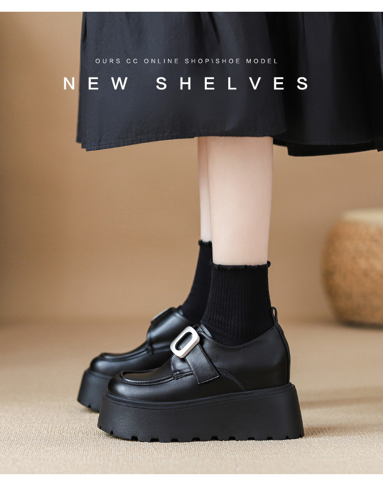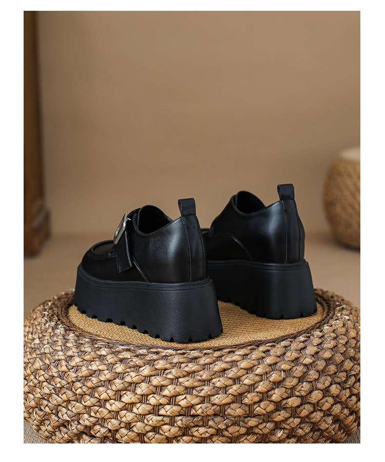 2025 새로운 높이 11cm 둥근 발가락 버클 스폰지 케이크 두꺼운 밑창 Lefu 신발 여성의 작은 가죽 신발 Lefu 신발 작은 가죽 신발