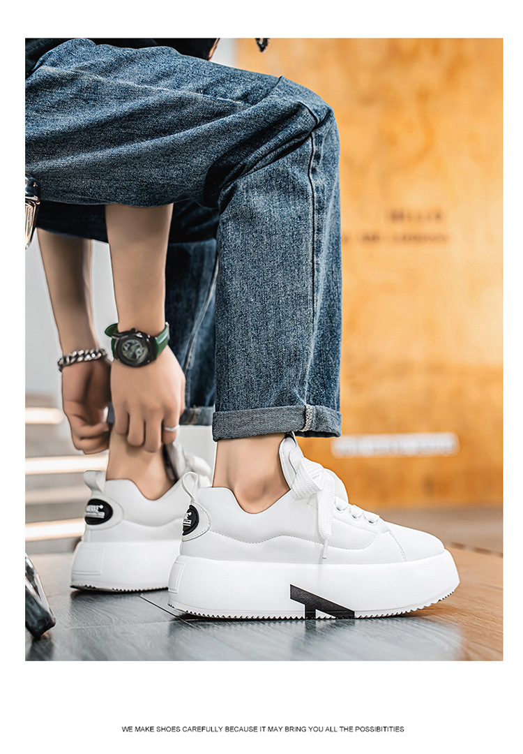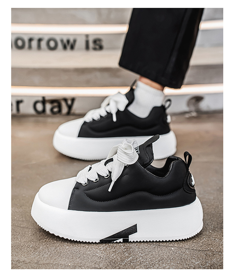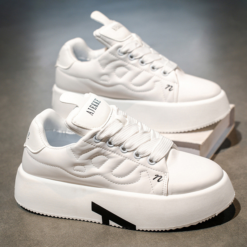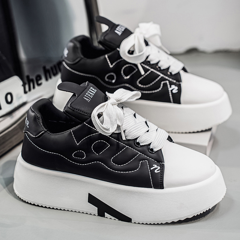2025 년 초 봄 캐주얼 신발 라운드 토 레이스 업 홈 아웃 두꺼운 밑창 아빠 신발 맞춤형 단색 흰색 신발 보드 신발 남성용스토어 가기