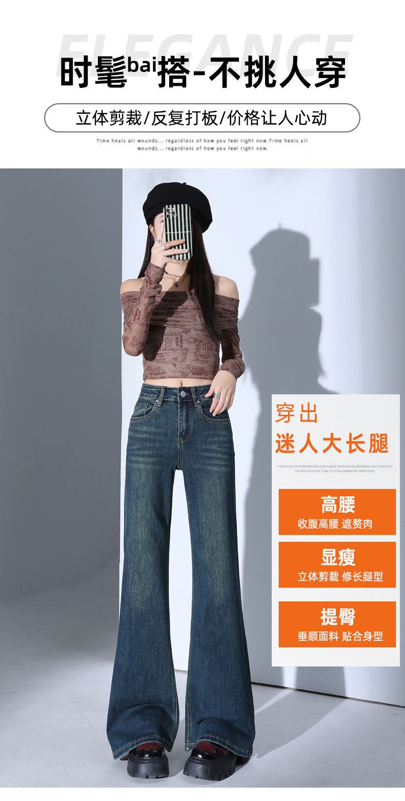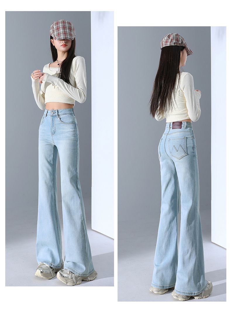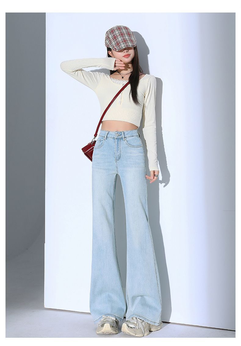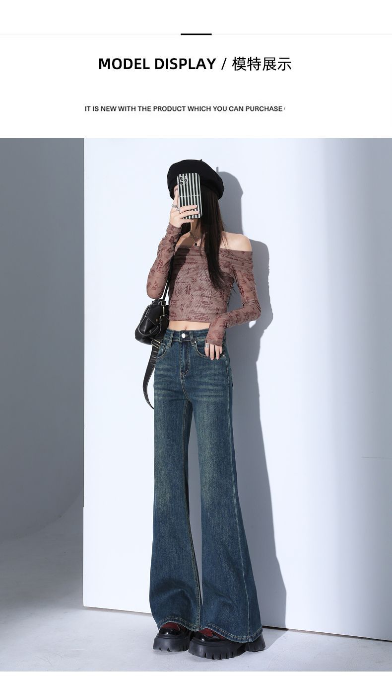높은 허리 스트레치 마이크로 플레어 청바지 여성의 2025 새로운 슬림 핏 다리 슬리밍 말굽 데님 바지스토어 가기
