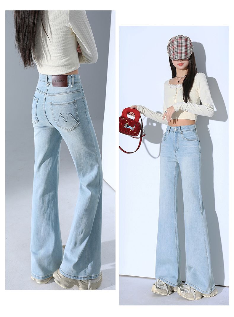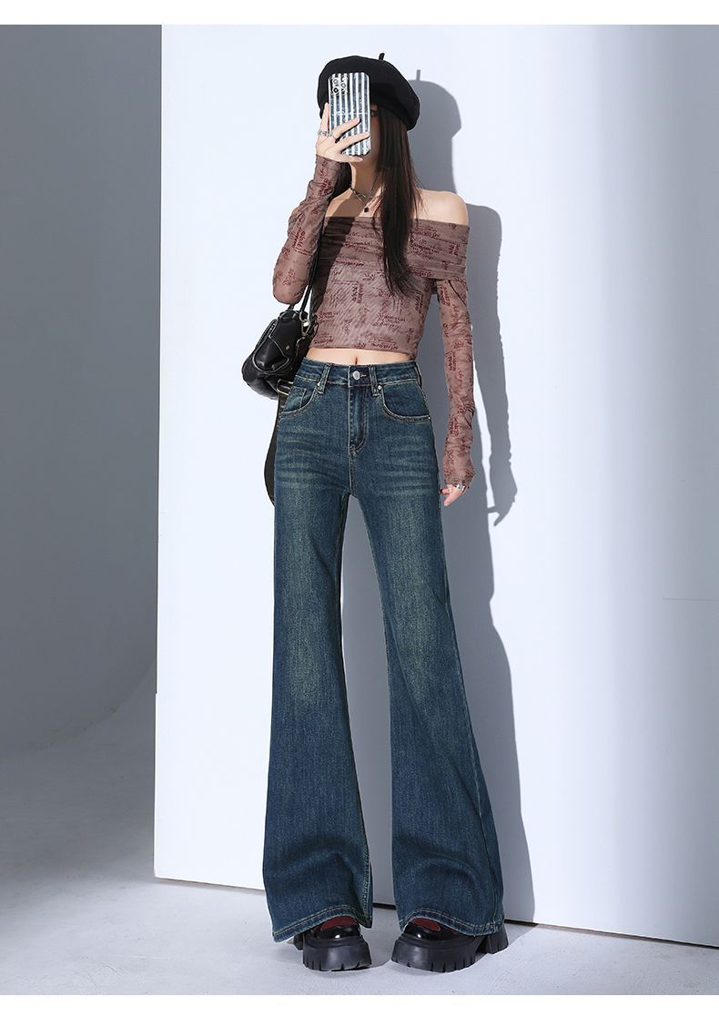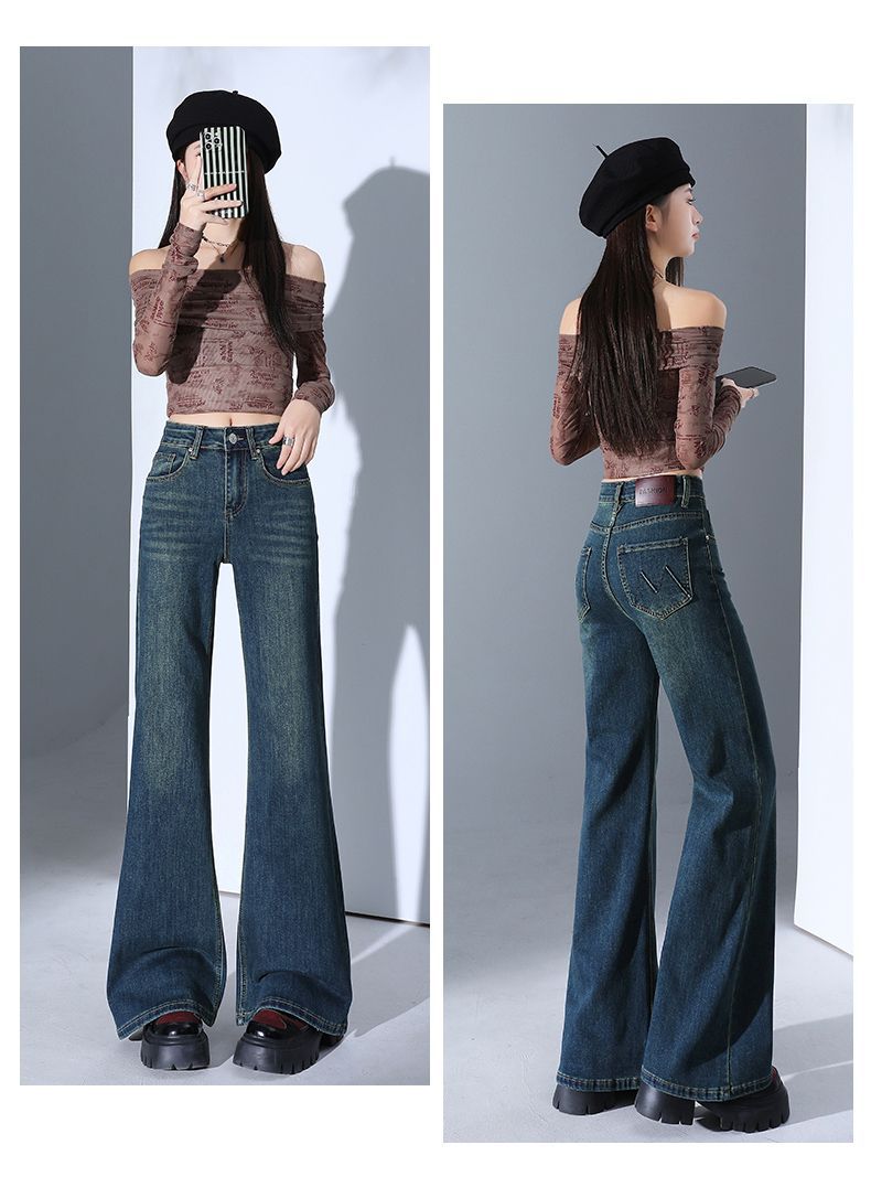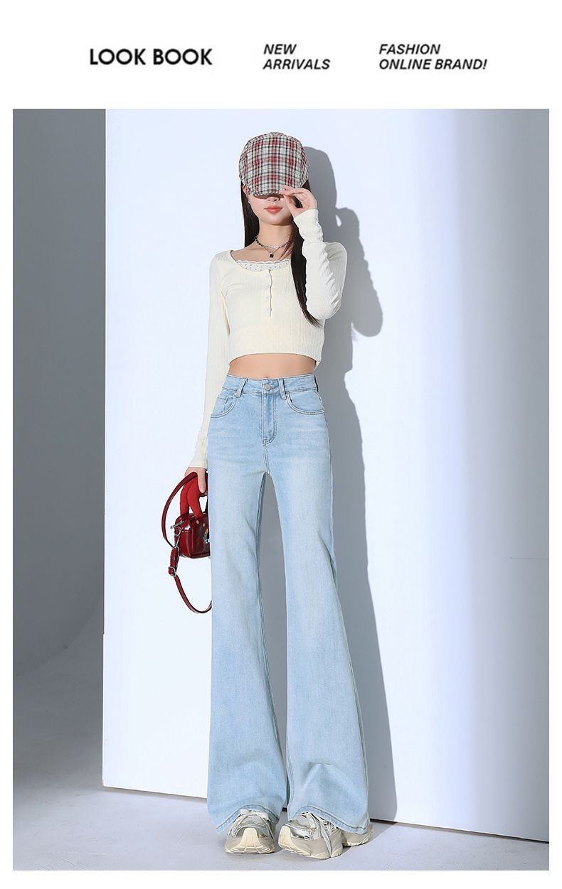 높은 허리 스트레치 마이크로 플레어 청바지 여성의 2025 새로운 슬림 핏 다리 슬리밍 말굽 데님 바지스토어 가기