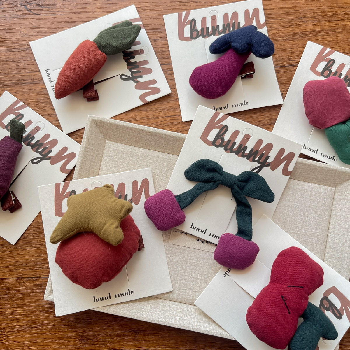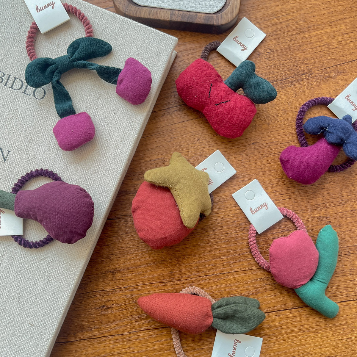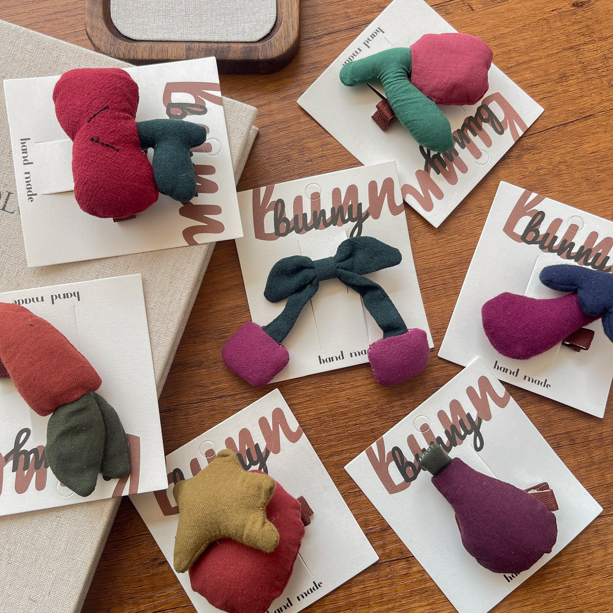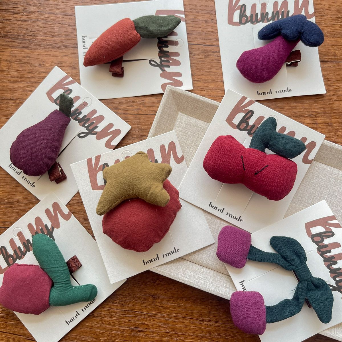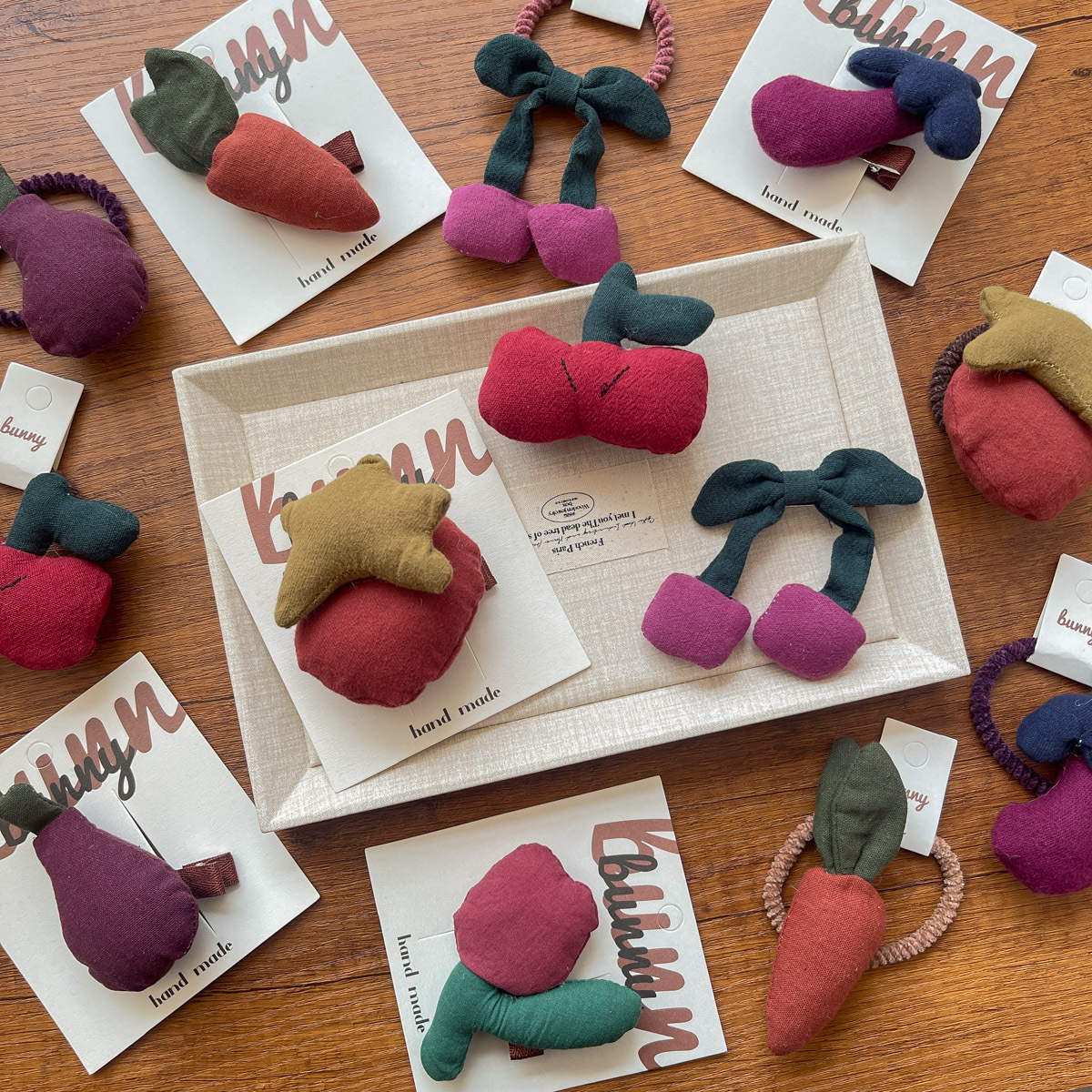 가을과 겨울 스타일 패브릭 코튼 만화 과일과 야채 어린이 헤어핀 한국 스타일 간단한 헤어 로프 헤어 액세서리