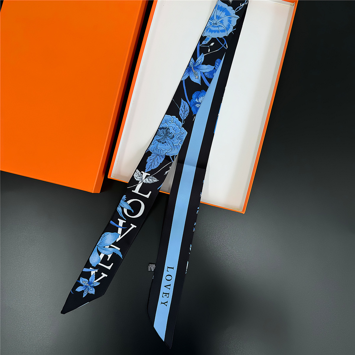 봄 프랑스 120cm 긴 리본 일반 꽃 인쇄 여성 장식 넥타이 가방 리본 작은 스카프 헤어 밴드